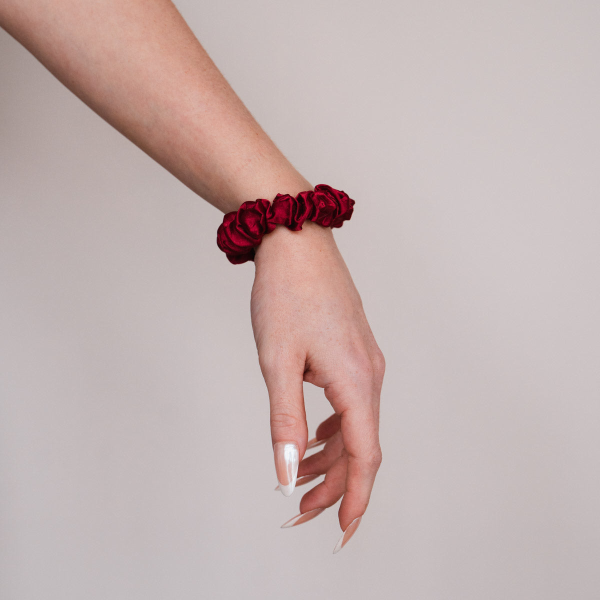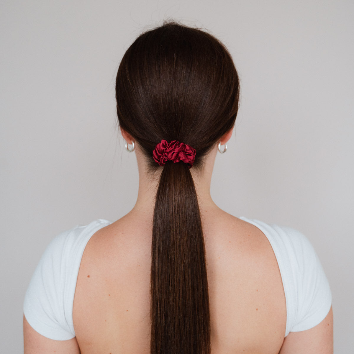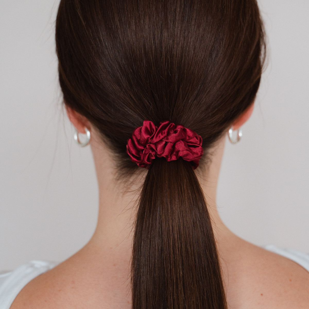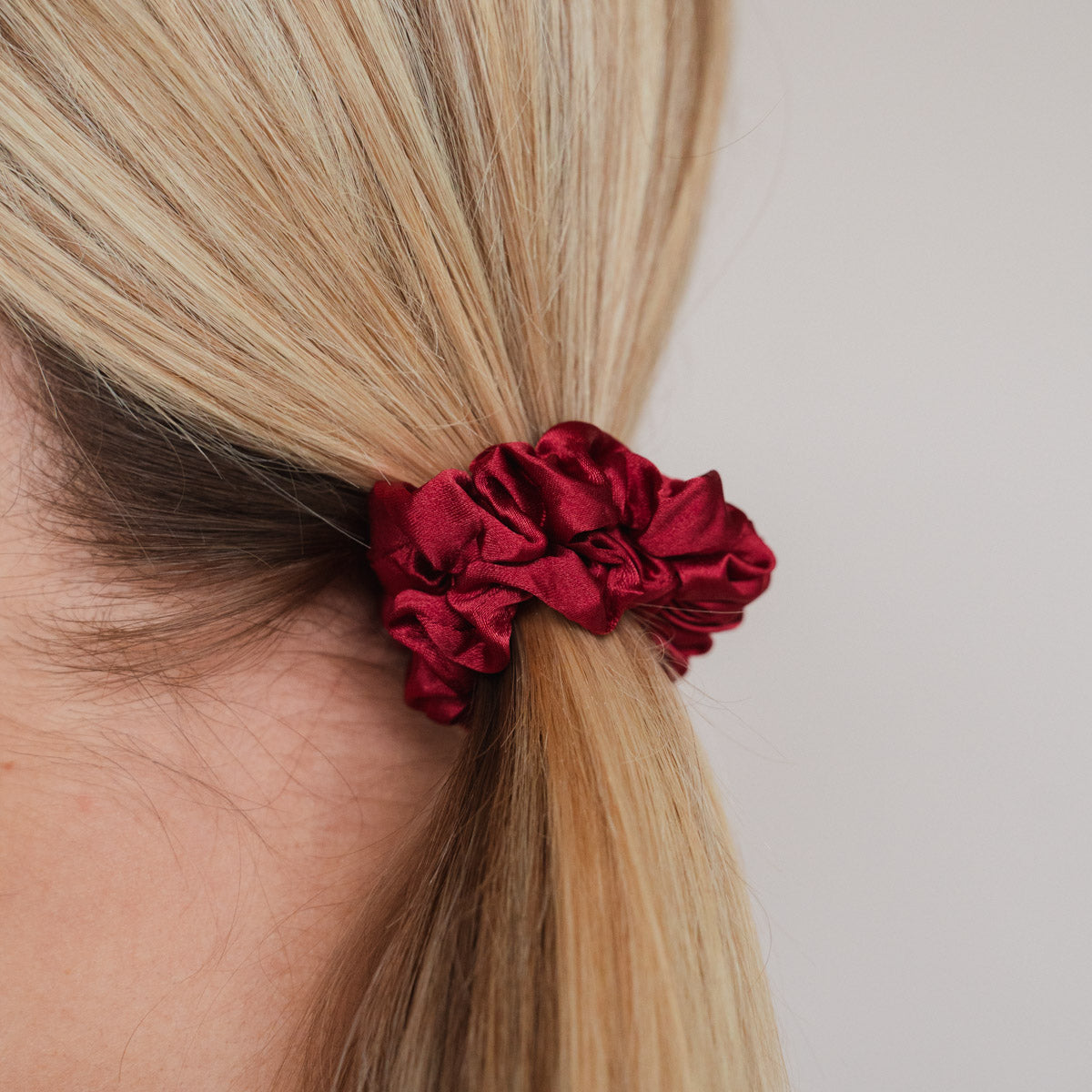 Entdecke unseren Ariane Scrunchie und bringe deine Frisuren auf das nächste Level! Mit seinem besonderem roten Design und seiner kompakten Größe ist er perfekt für unterwegs und lässt sich problemlos in jeder Tasche oder am Handgelenk verstauen. Der Ariane Scrunchie eignet sich sowohl für feineres, als auch dickeres Haar. Lass dich von der besonderen Magie unserer Scrunchies aus Satin Seide verführen und du wirst nie wieder herkömmliche Haargummis verwenden wollen.