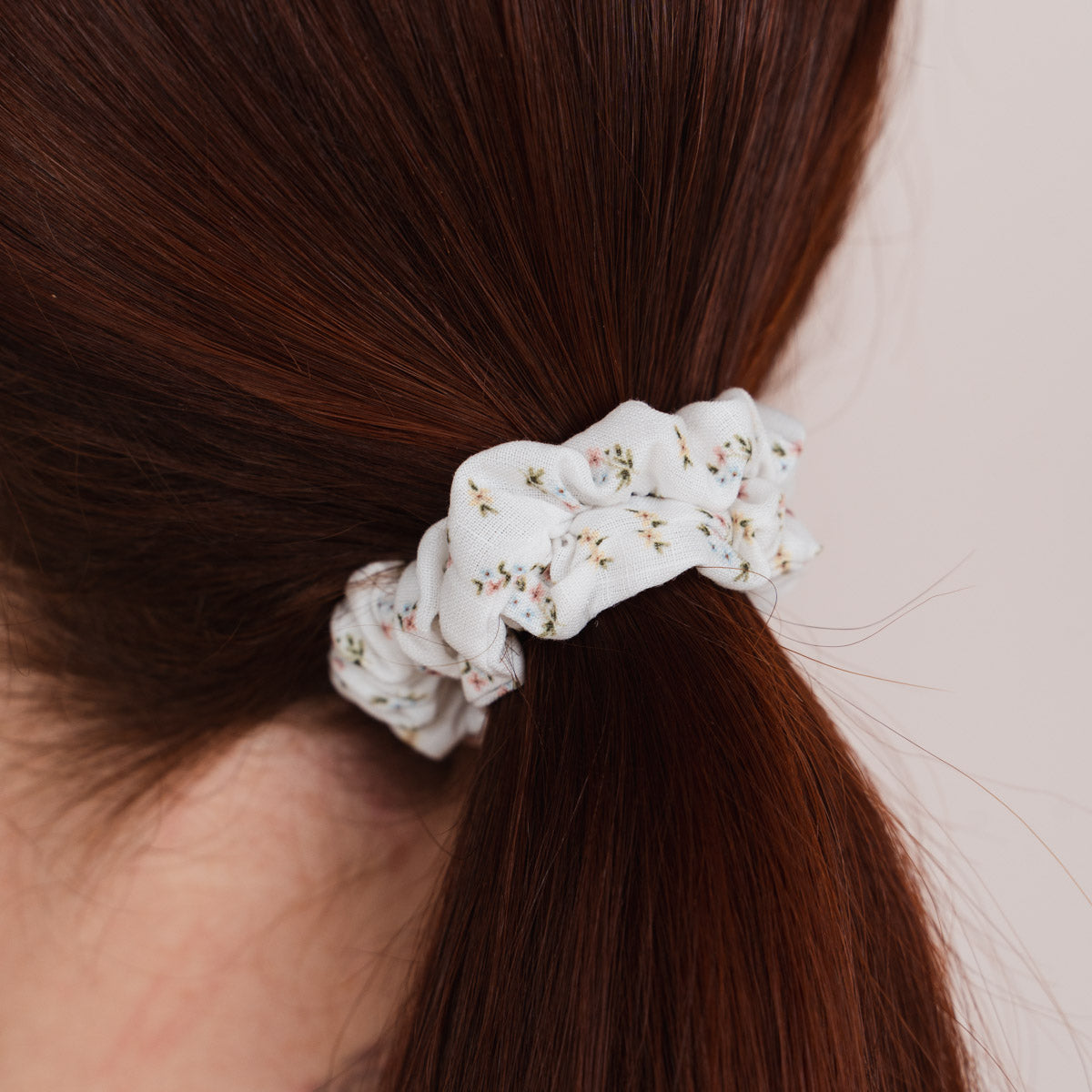 Entdecke unseren Emmi Scrunchie und bring deine Frisuren auf das nächste Level! Mit seinem besonderen Design aus zarten Blüten und seiner kompakten Größe ist Emmi der perfekte Begleiter für unterwegs – schnell verstaut in deiner Tasche oder stilvoll ums Handgelenk getragen.
