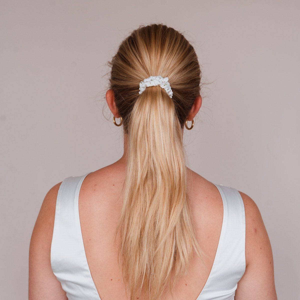 Starker Halt, unsere Scrunchies geben deiner Frisur den ganzen Tag (oder Nacht) einen sicheren und sanften Halt.