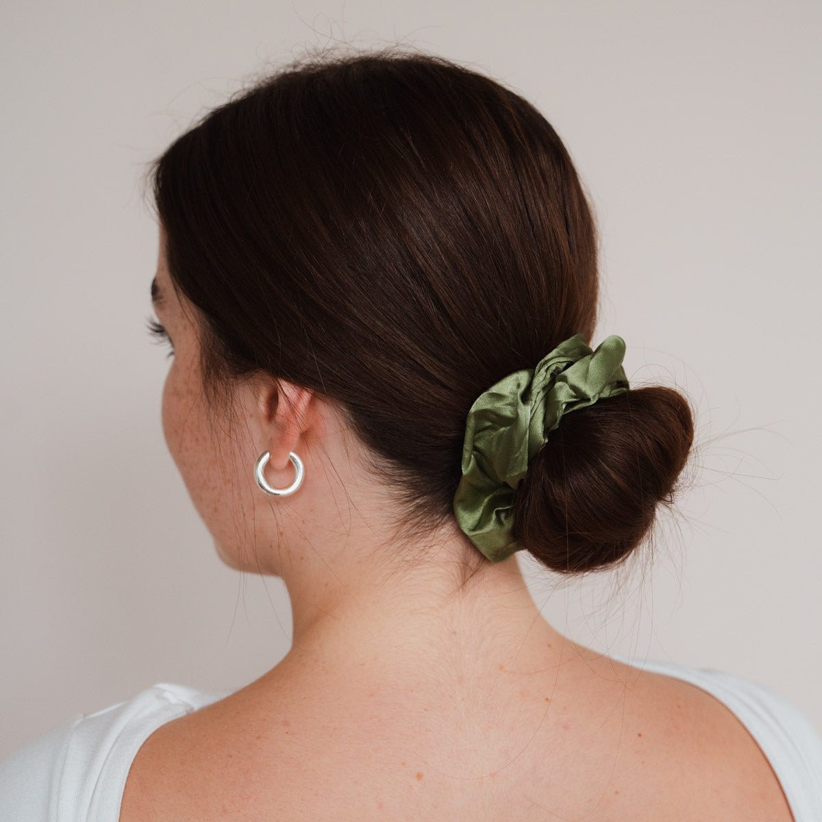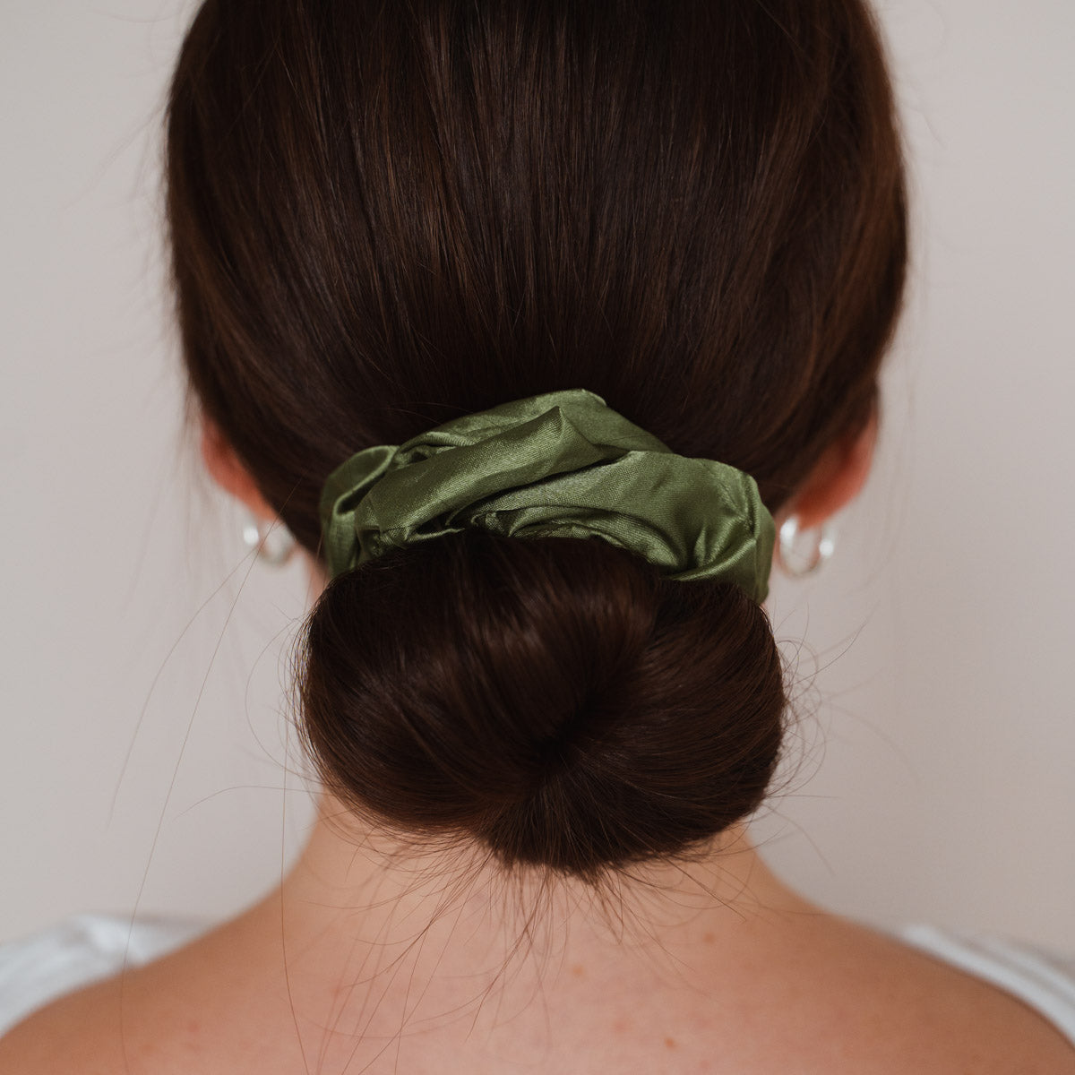 Starker Halt, unsere Scrunchies geben deiner Frisur den ganzen Tag (oder Nacht) einen sicheren und sanften Halt.