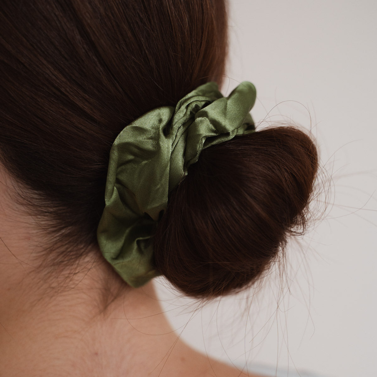 Unser Geraldine Scrunchie ist Liebe auf den ersten Blick! Mit seinem schlichten aber besonderem grünen Design und seiner kompakten Größe ist er perfekt für unterwegs und lässt sich problemlos in jeder Tasche oder am Handgelenk verstauen. Der Geraldine Scrunchie eignet sich sowohl für feineres, als auch dickeres Haar. Lass dich von der besonderen Magie unserer Scrunchies aus Satin Seide verführen und du wirst nie wieder herkömmliche Haargummis verwenden wollen.