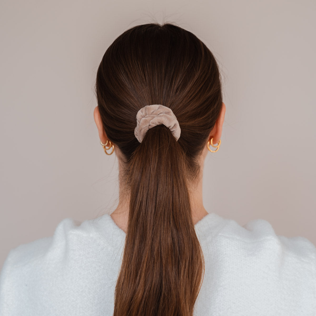 Starker Halt, unsere Scrunchies geben deiner Frisur den ganzen Tag (oder Nacht) einen sicheren und sanften Halt.