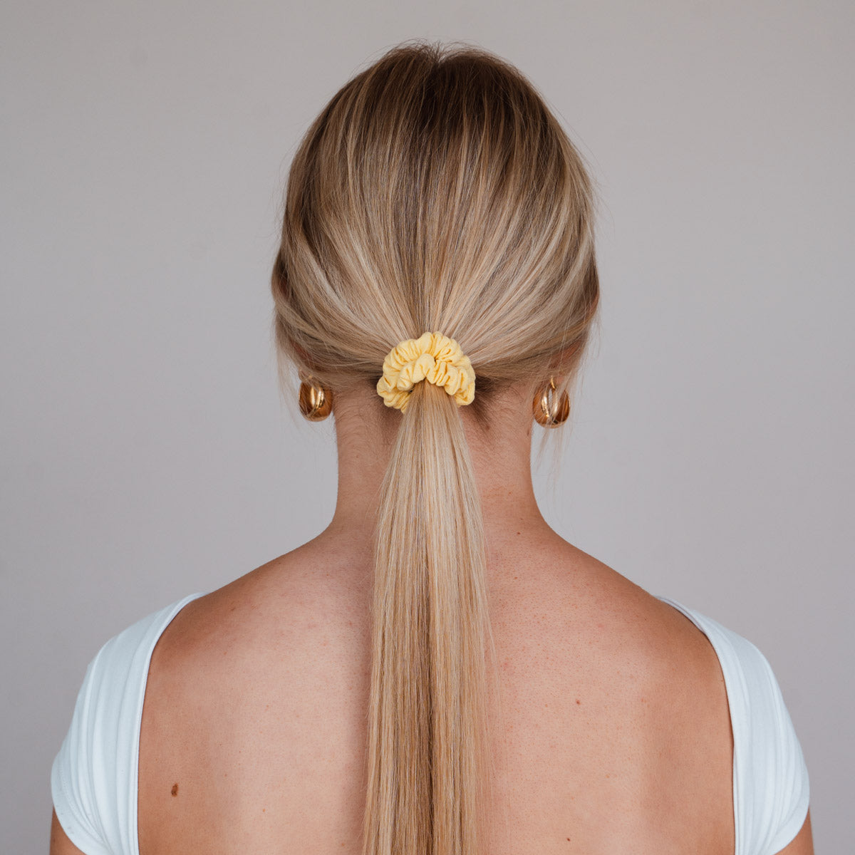 Starker Halt, unsere Scrunchies geben deiner Frisur den ganzen Tag (oder Nacht) einen sicheren und sanften Halt.