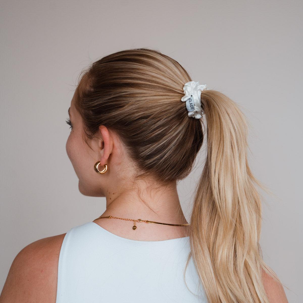 Entdecke unseren Lola Scrunchie und bringe deine Frisuren auf das nächste Level! Mit seinem besonderem weißen Design und seiner kompakten Größe ist er perfekt für unterwegs und lässt sich problemlos in jeder Tasche oder am Handgelenk verstauen. Der Lola Scrunchie eignet sich sowohl für feineres, als auch dickeres Haar. Lass dich von der besonderen Magie unserer Scrunchies aus Satin Seide verführen und du wirst nie wieder herkömmliche Haargummis verwenden wollen.