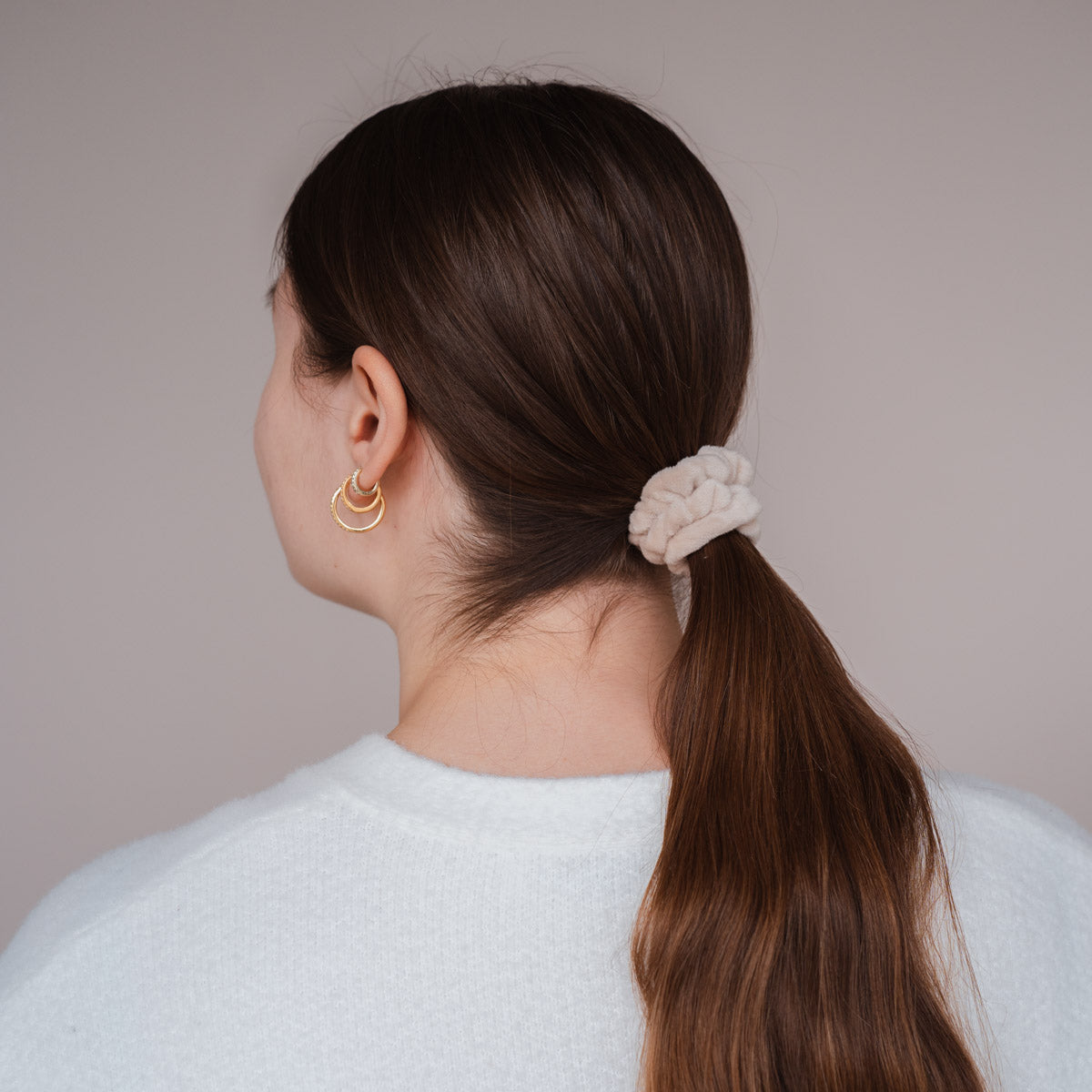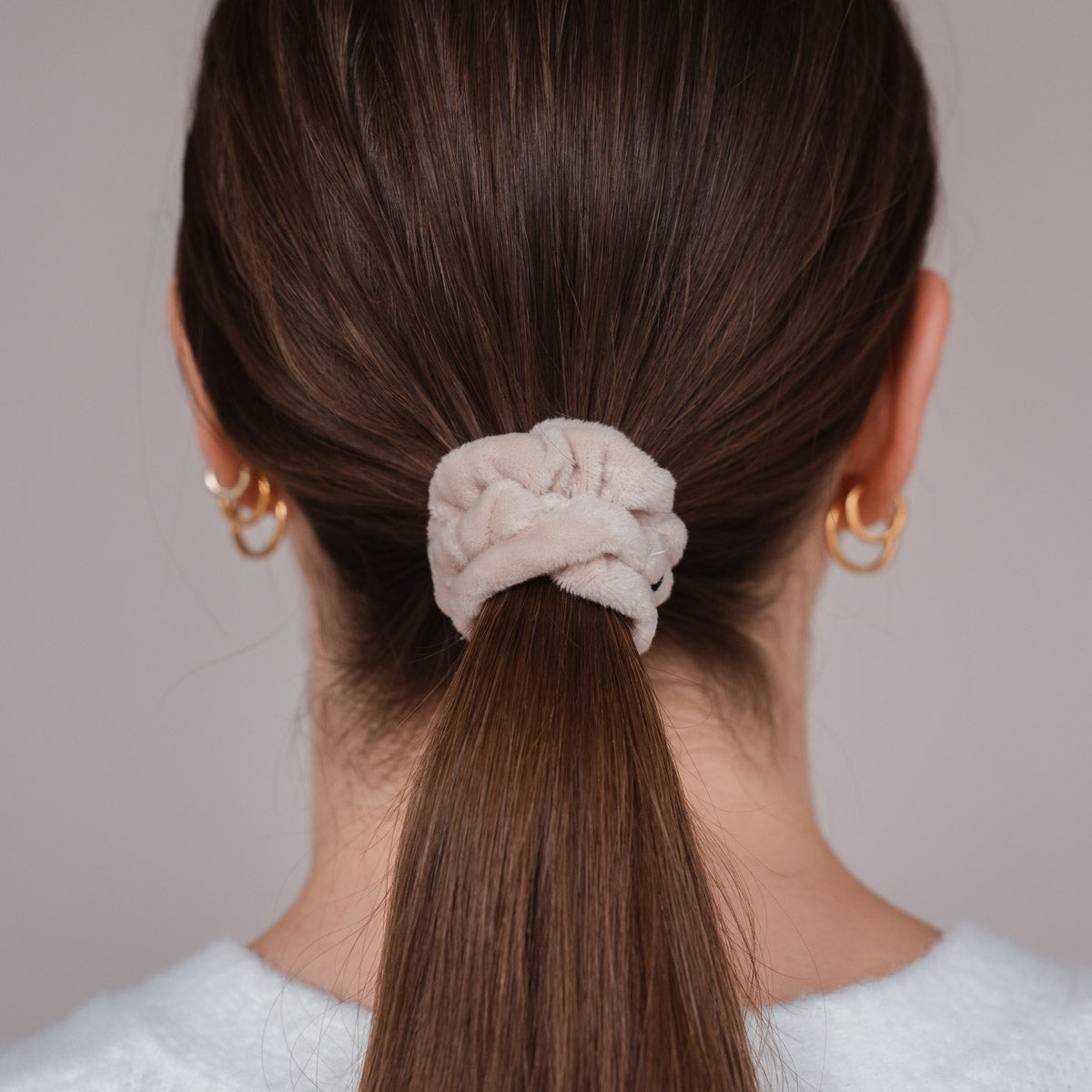 Starker Halt, unsere Scrunchies geben deiner Frisur den ganzen Tag (oder Nacht) einen sicheren und sanften Halt.