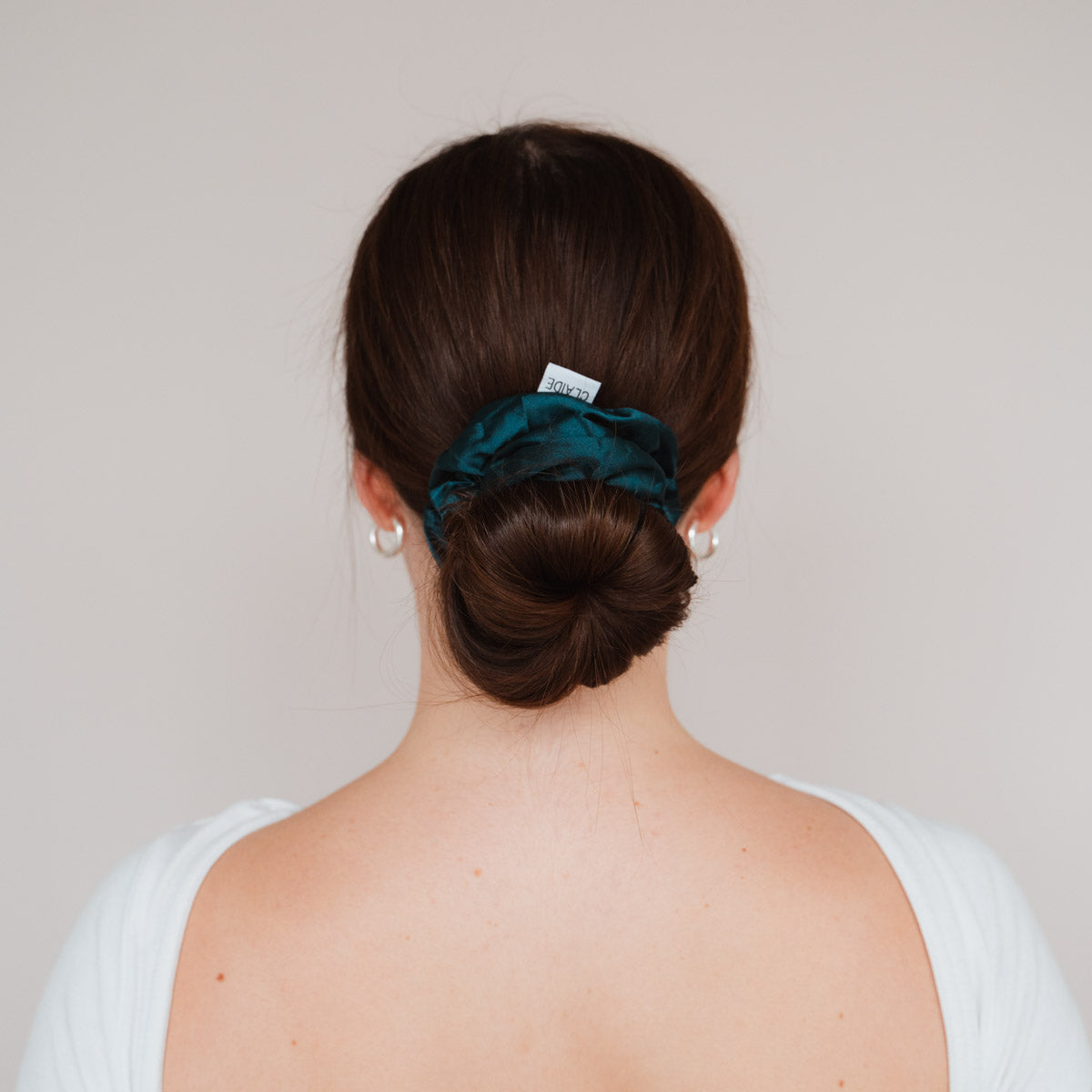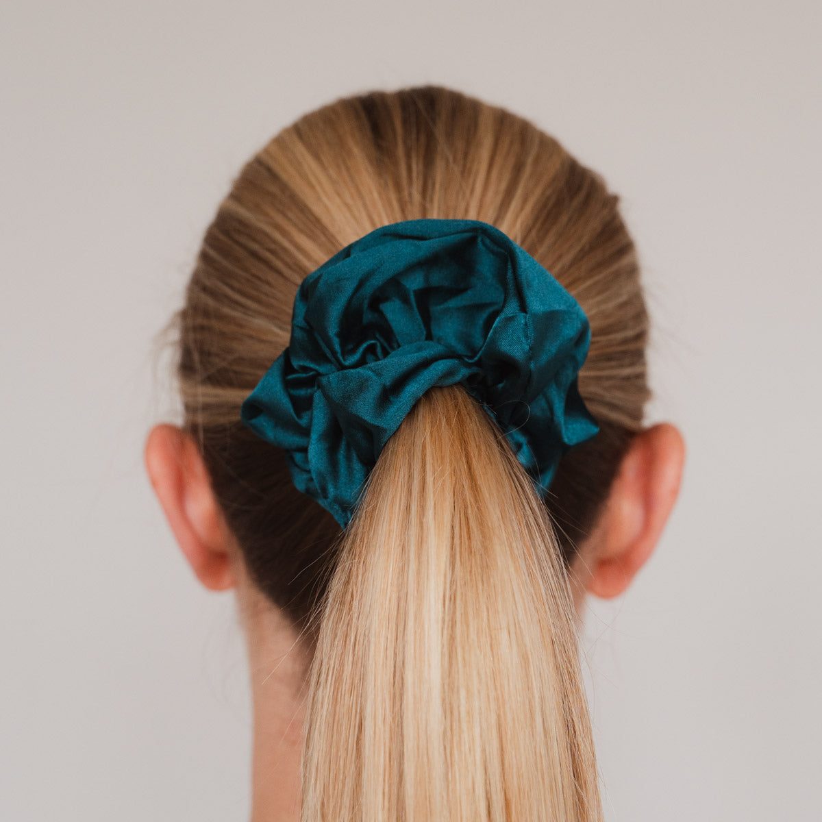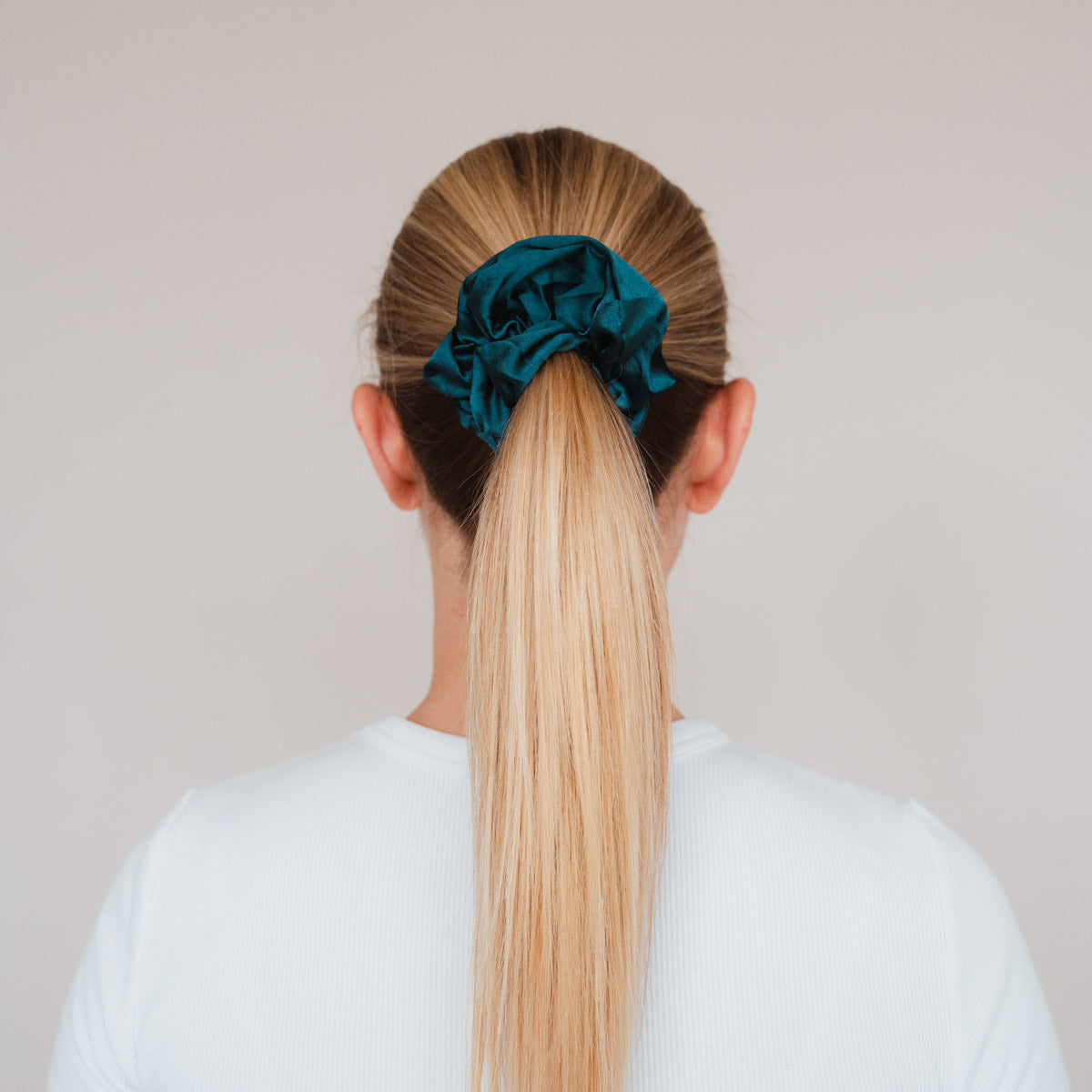 Unser Maribel Scrunchie ist Liebe auf den ersten Blick! Mit seinem schlichten aber besonderem Petrol Design und seiner kompakten Größe ist er perfekt für unterwegs und lässt sich problemlos in jeder Tasche oder am Handgelenk verstauen. Der Maribel Scrunchie eignet sich sowohl für feineres, als auch dickeres Haar. Lass dich von der besonderen Magie unserer Scrunchies aus Satin Seide verführen und du wirst nie wieder herkömmliche Haargummis verwenden wollen.