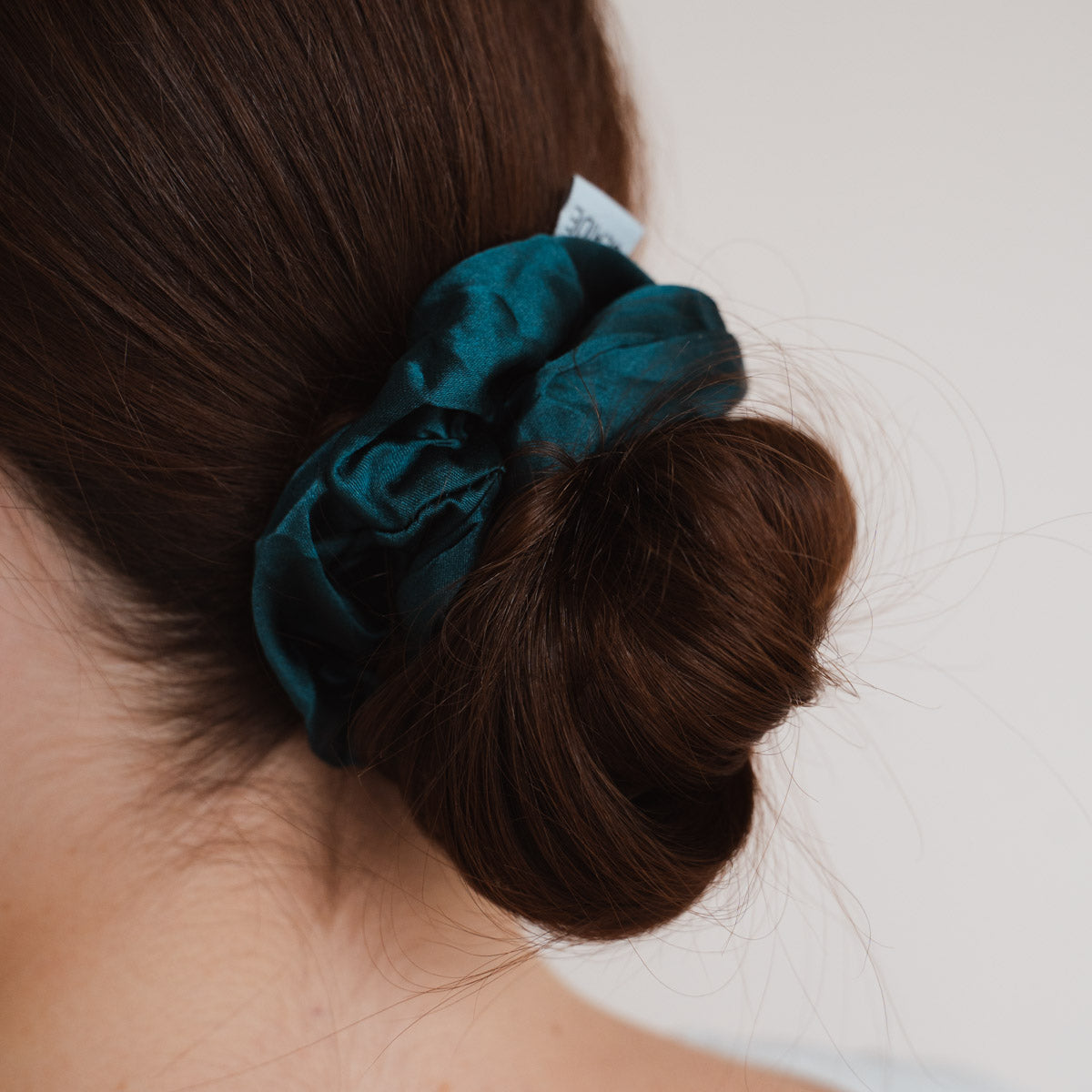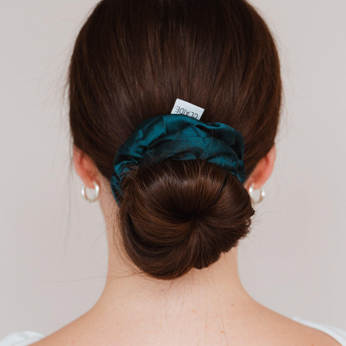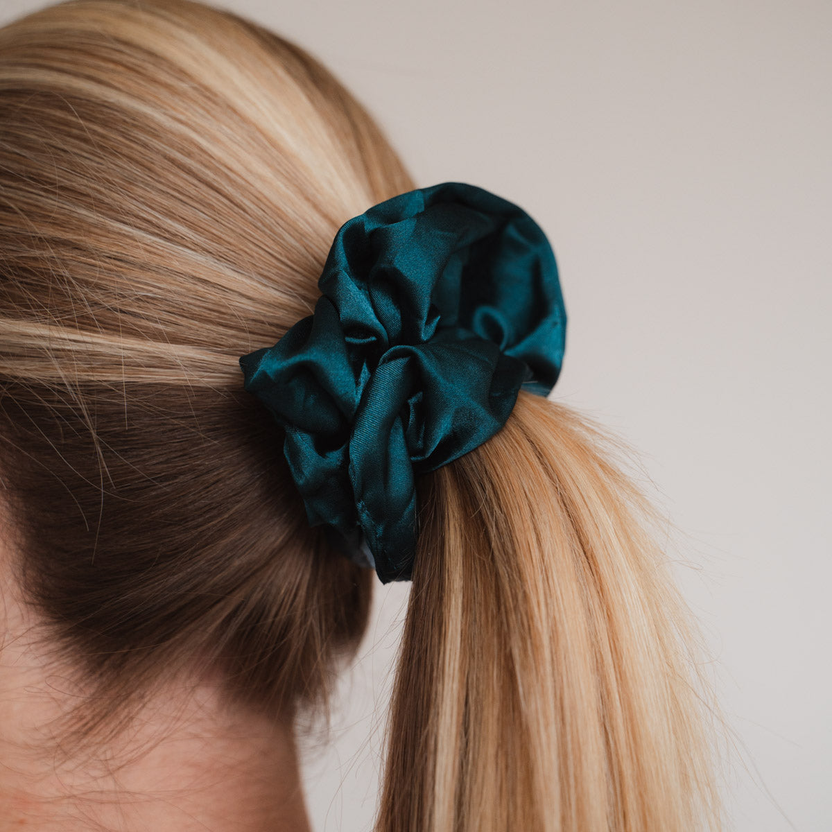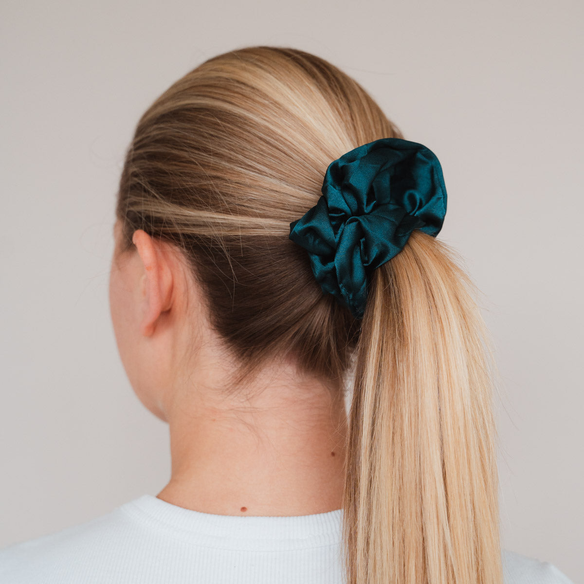 Unser Maribel Scrunchie ist Liebe auf den ersten Blick! Mit seinem schlichten aber besonderem Petrol Design und seiner kompakten Größe ist er perfekt für unterwegs und lässt sich problemlos in jeder Tasche oder am Handgelenk verstauen. Der Maribel Scrunchie eignet sich sowohl für feineres, als auch dickeres Haar. Lass dich von der besonderen Magie unserer Scrunchies aus Satin Seide verführen und du wirst nie wieder herkömmliche Haargummis verwenden wollen.