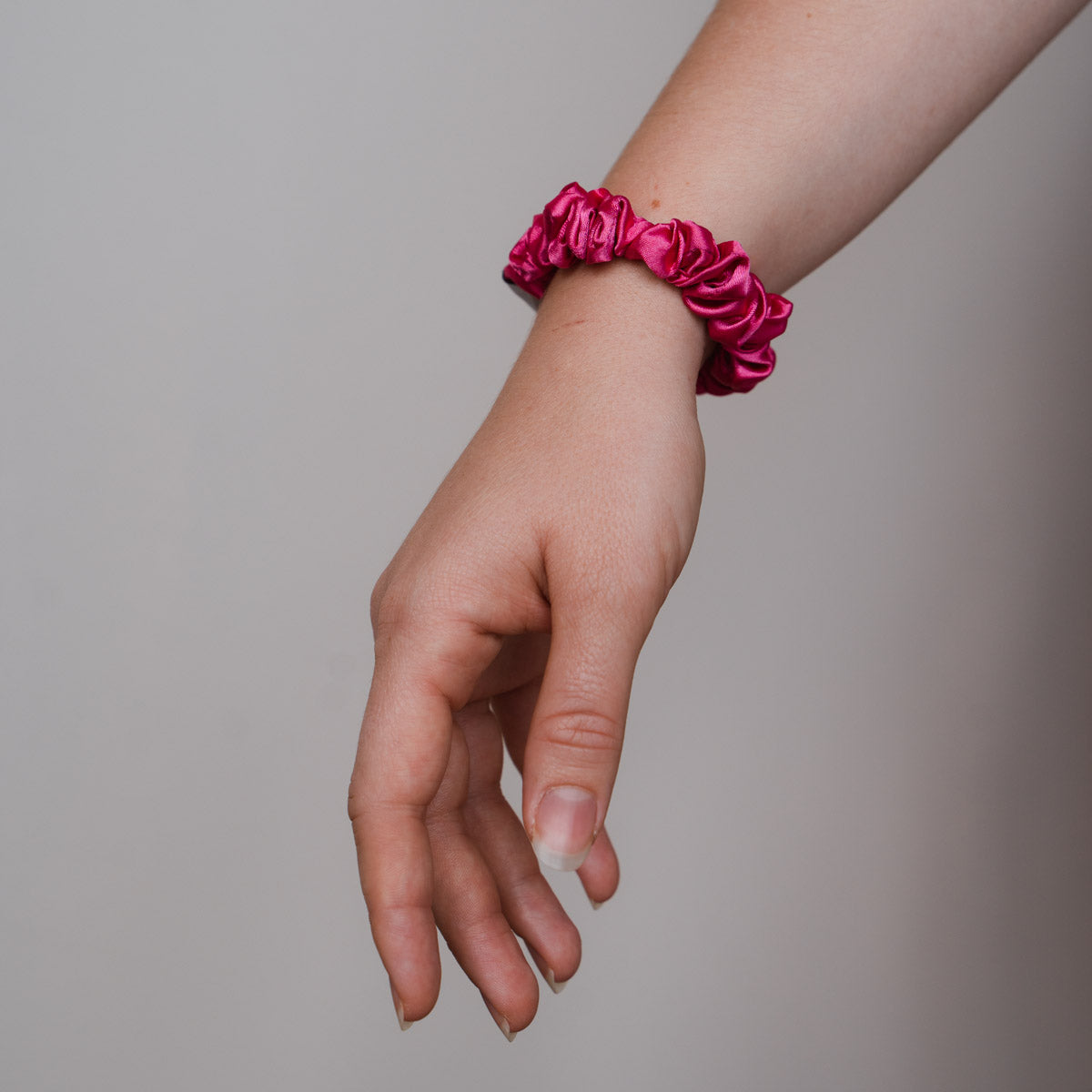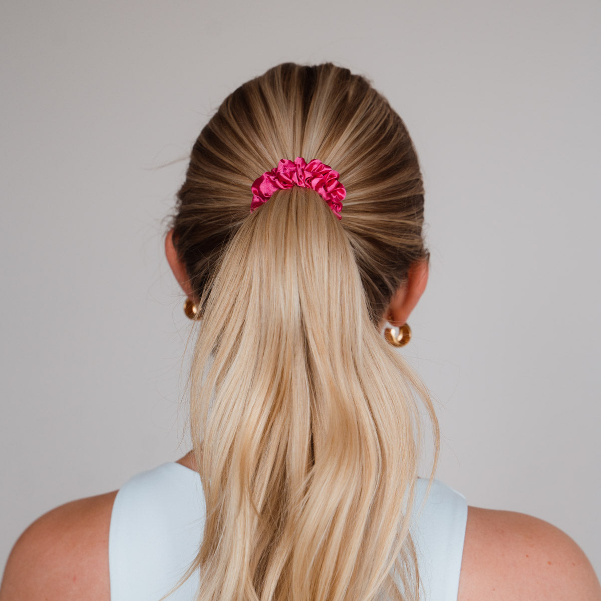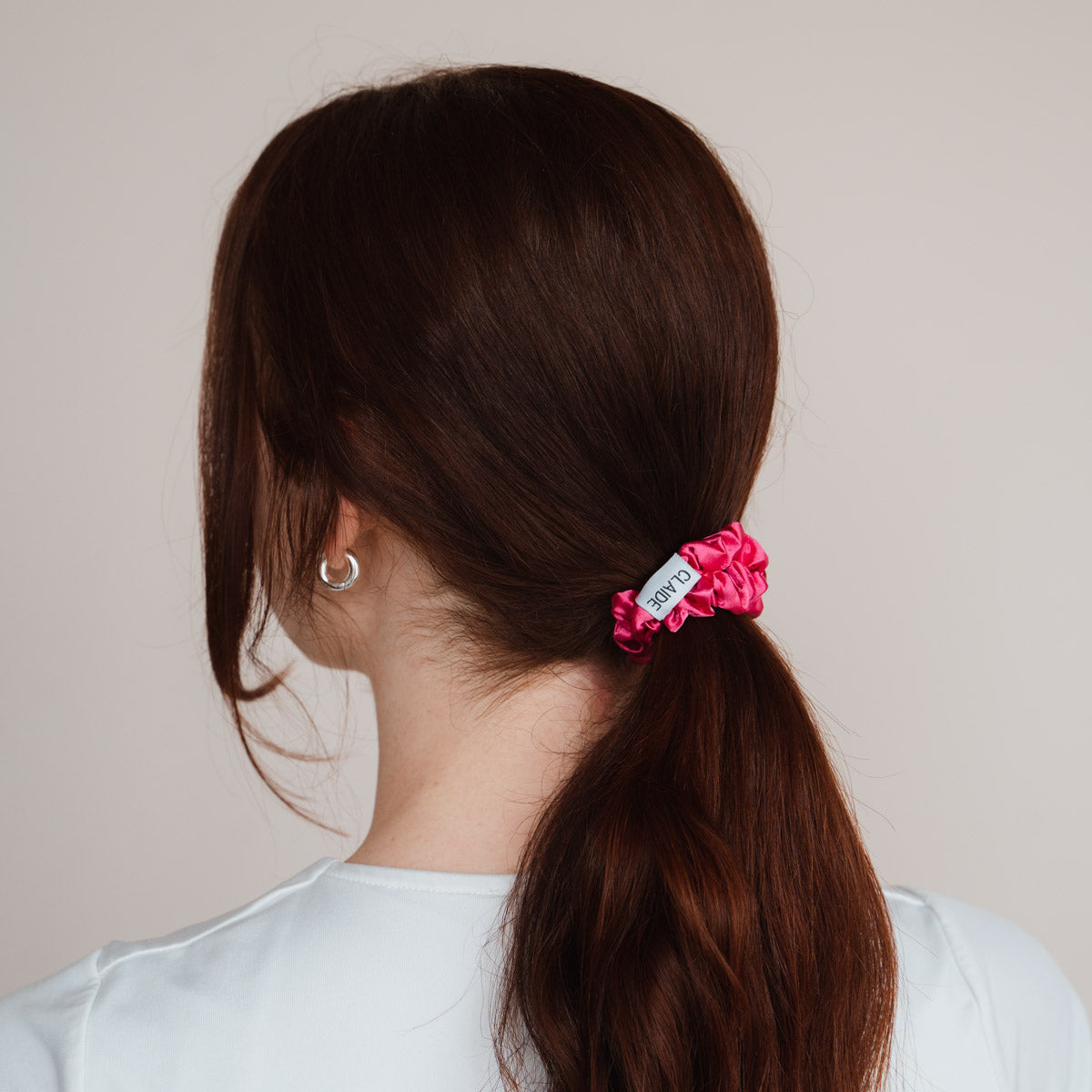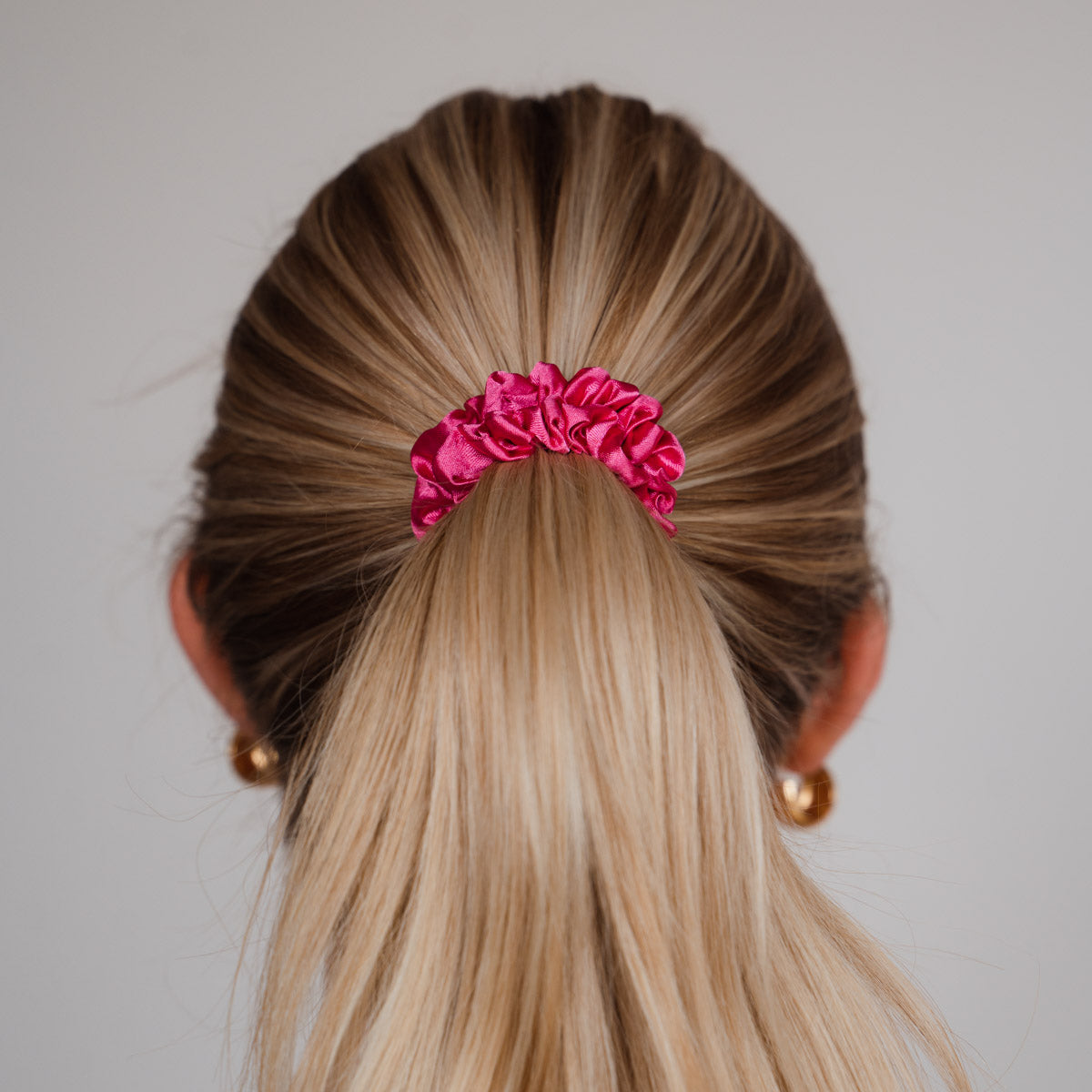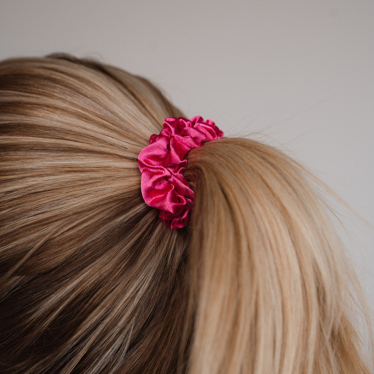 Entdecke unseren Rosa Scrunchie und bringe deine Frisuren auf das nächste Level! Mit seinem besonderem rosanen Design und seiner kompakten Größe ist er perfekt für unterwegs und lässt sich problemlos in jeder Tasche oder am Handgelenk verstauen. Der Rosa Scrunchie eignet sich sowohl für feineres, als auch dickeres Haar. Lass dich von der besonderen Magie unserer Scrunchies aus Satin Seide verführen und du wirst nie wieder herkömmliche Haargummis verwenden wollen.