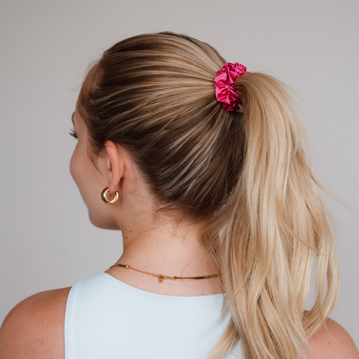 Starker Halt, unsere Scrunchies geben deiner Frisur den ganzen Tag (oder Nacht) einen sicheren und sanften Halt.