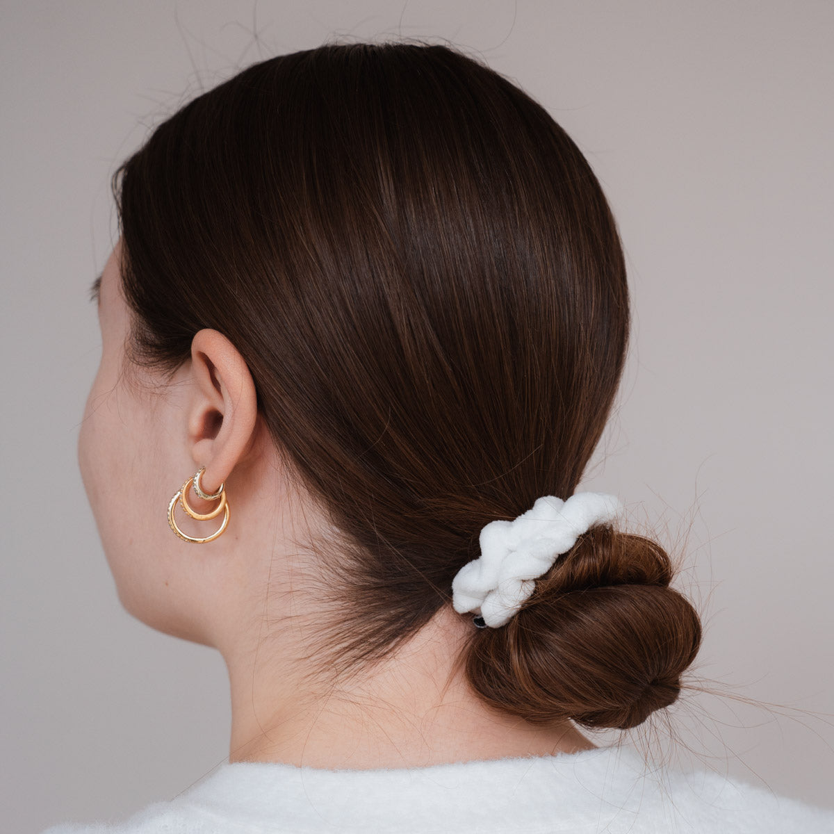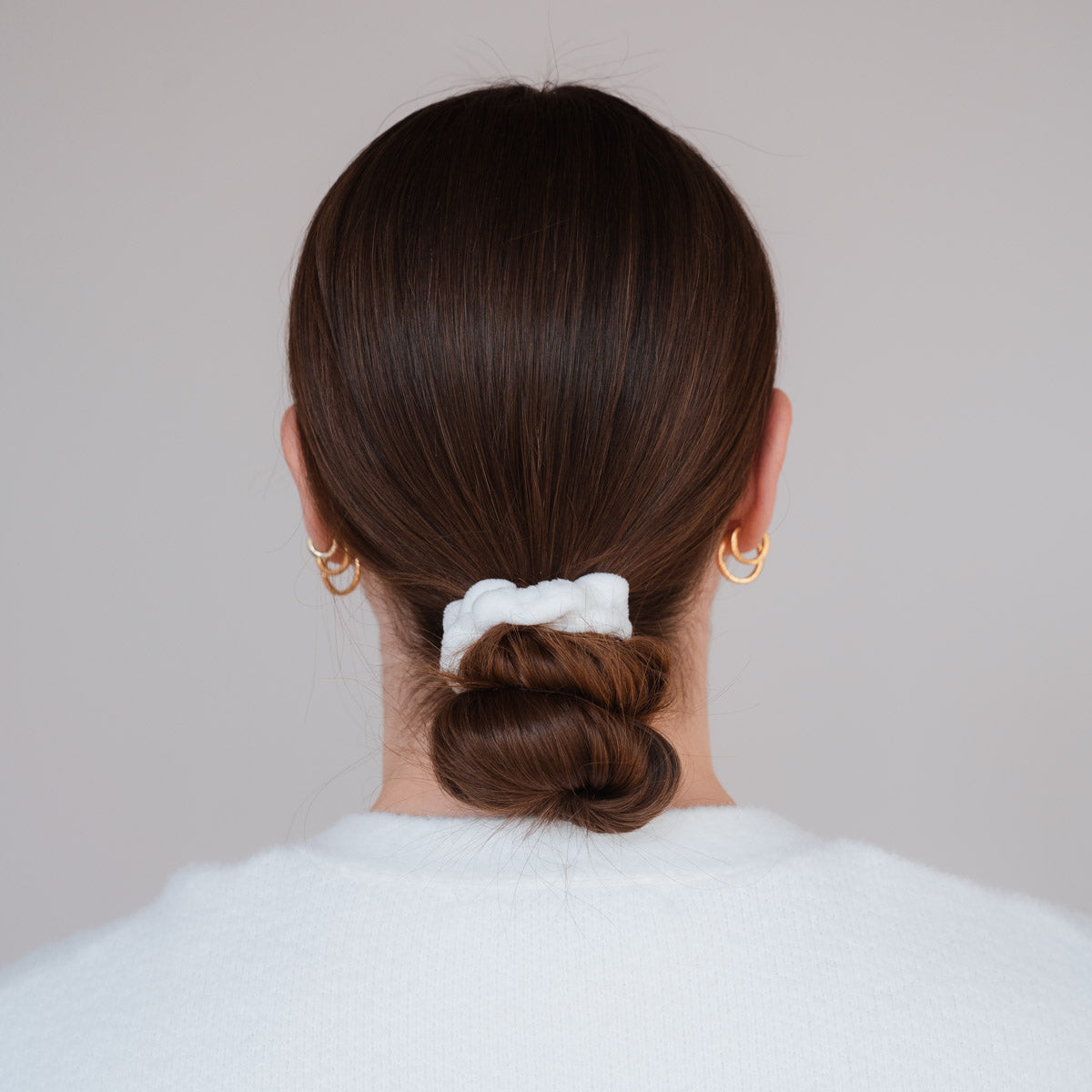• Weniger Druckpunkte: Der größere Durchmesser und die weichere Struktur unserer Scrunchies verteilen den Druck gleichmäßiger auf das Haar. Bye Bye Kopfschmerzen.