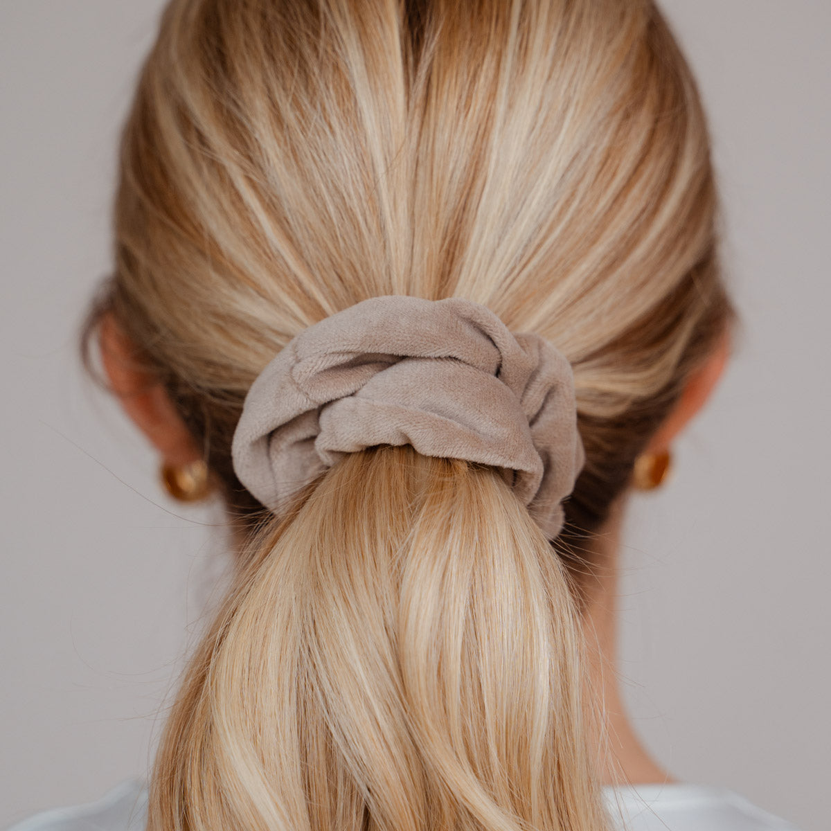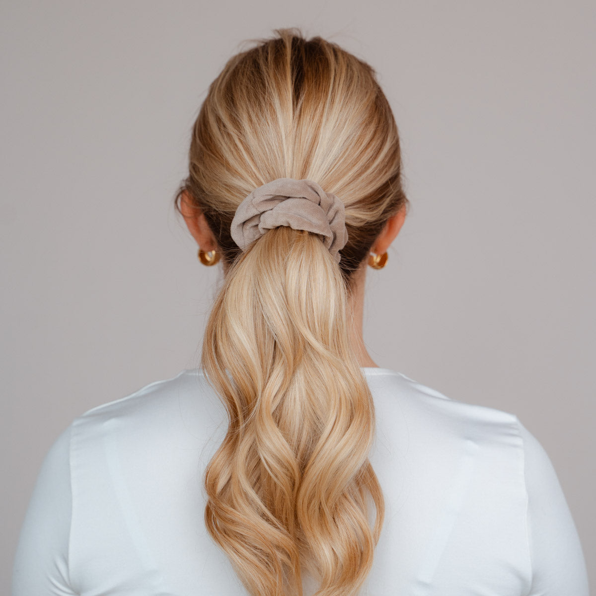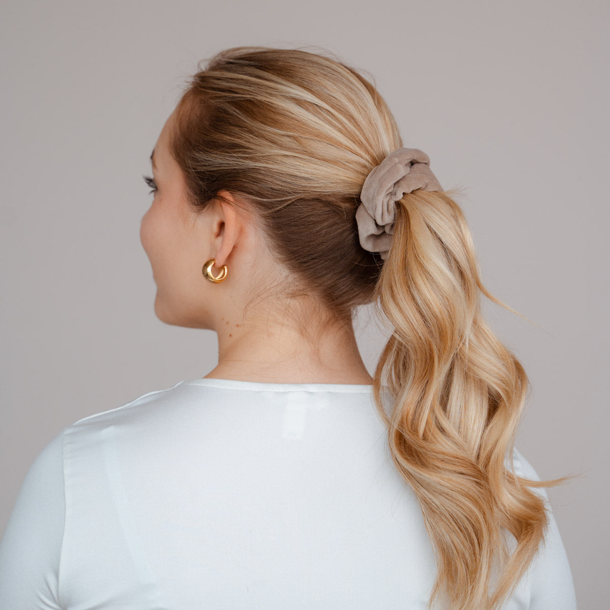 Starker Halt, unsere Scrunchies geben deiner Frisur den ganzen Tag (oder Nacht) einen sicheren und sanften Halt.