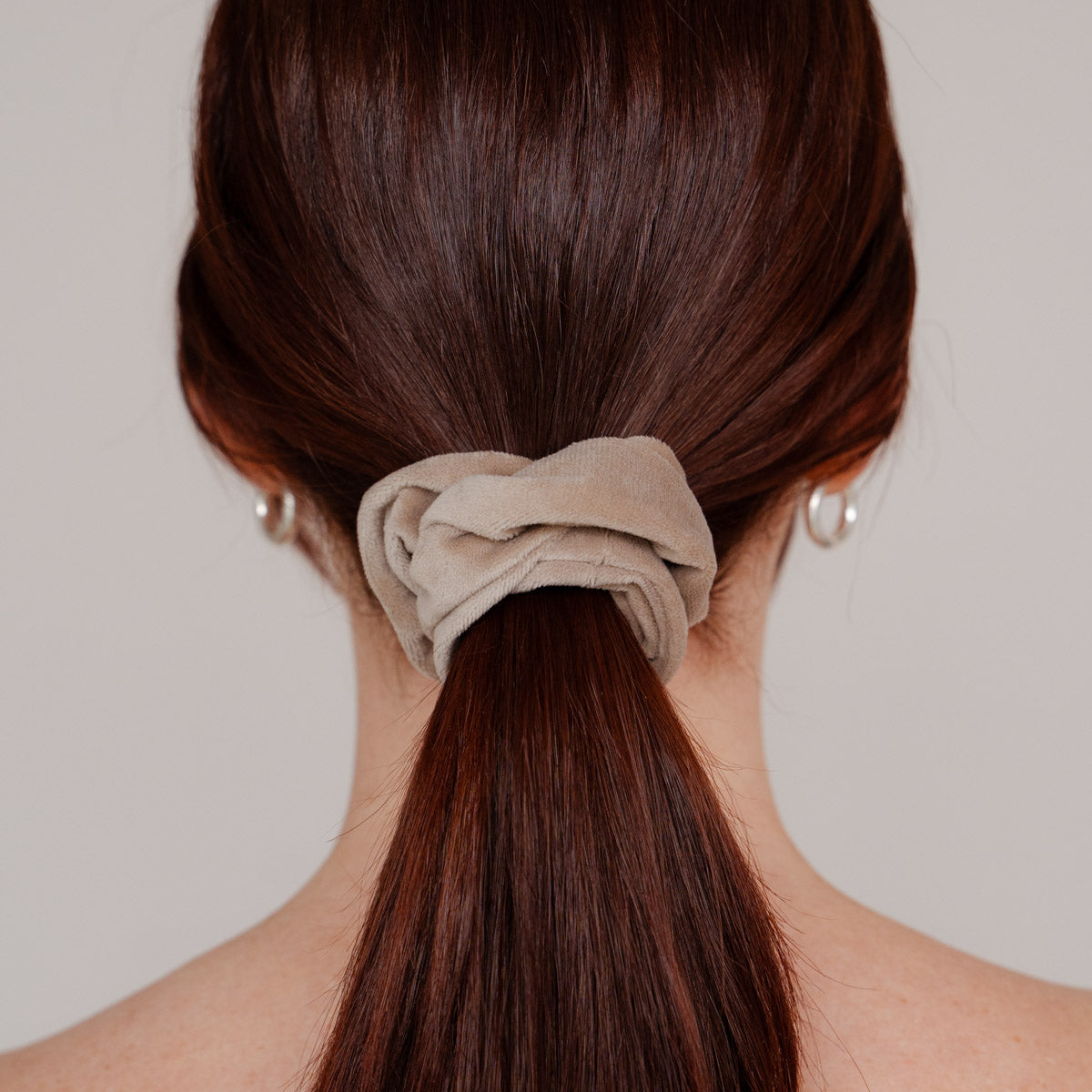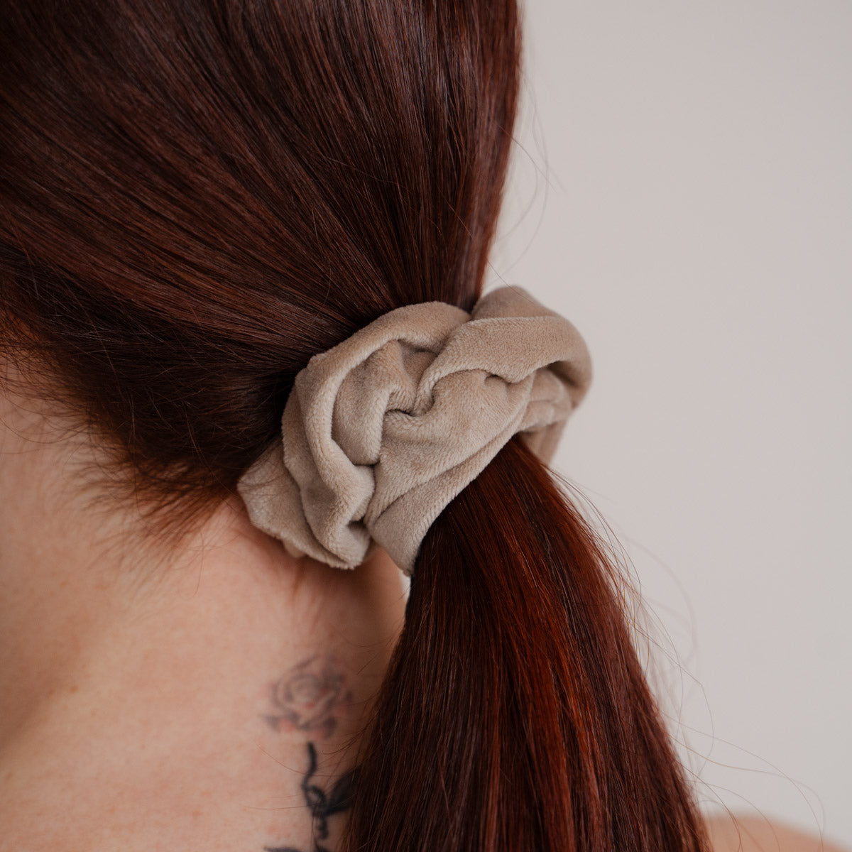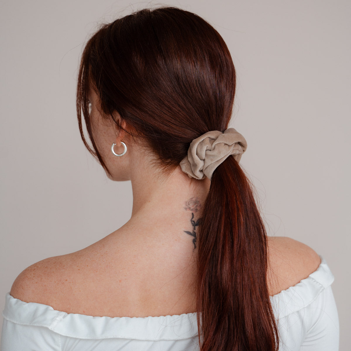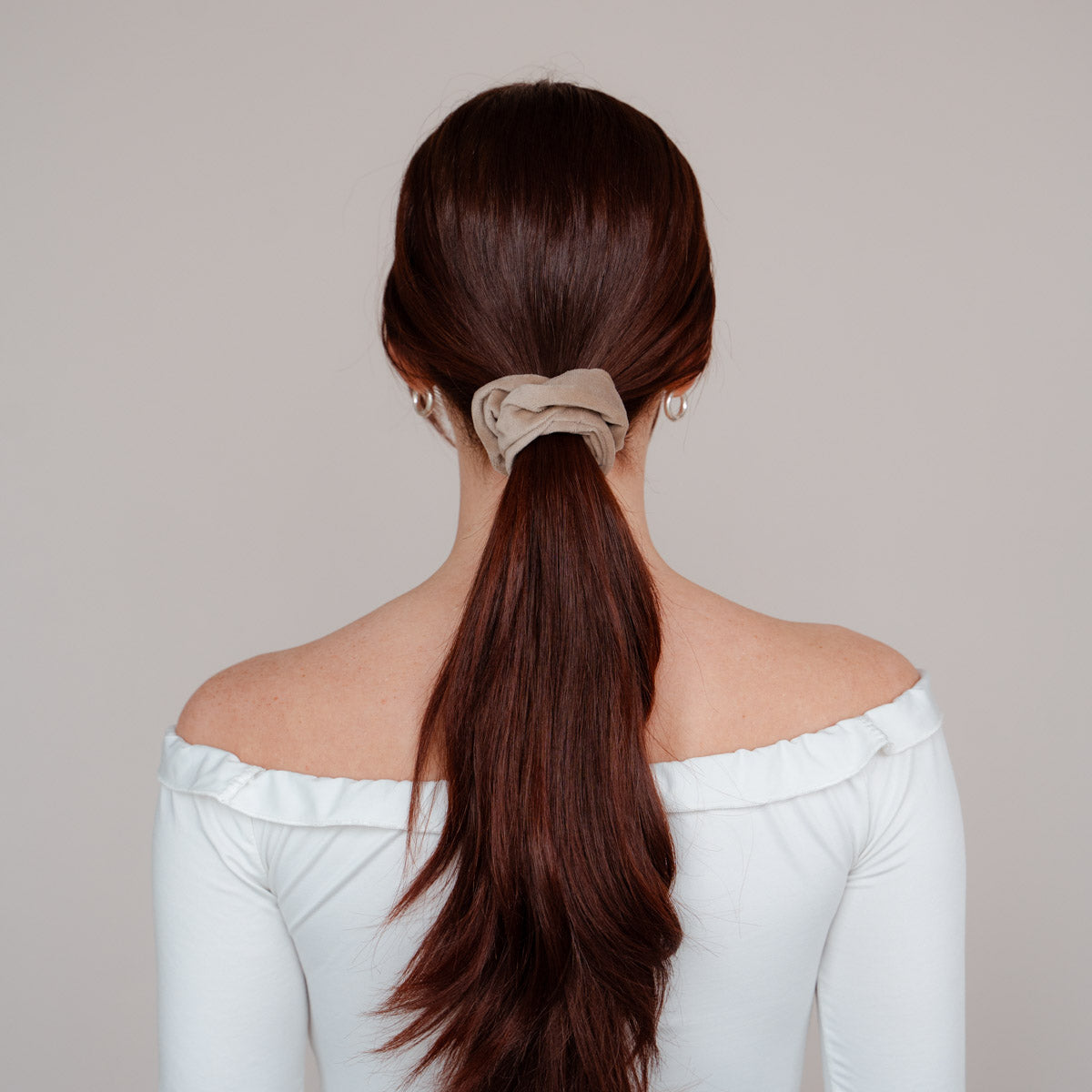 Starker Halt, unsere Scrunchies geben deiner Frisur den ganzen Tag (oder Nacht) einen sicheren und sanften Halt.