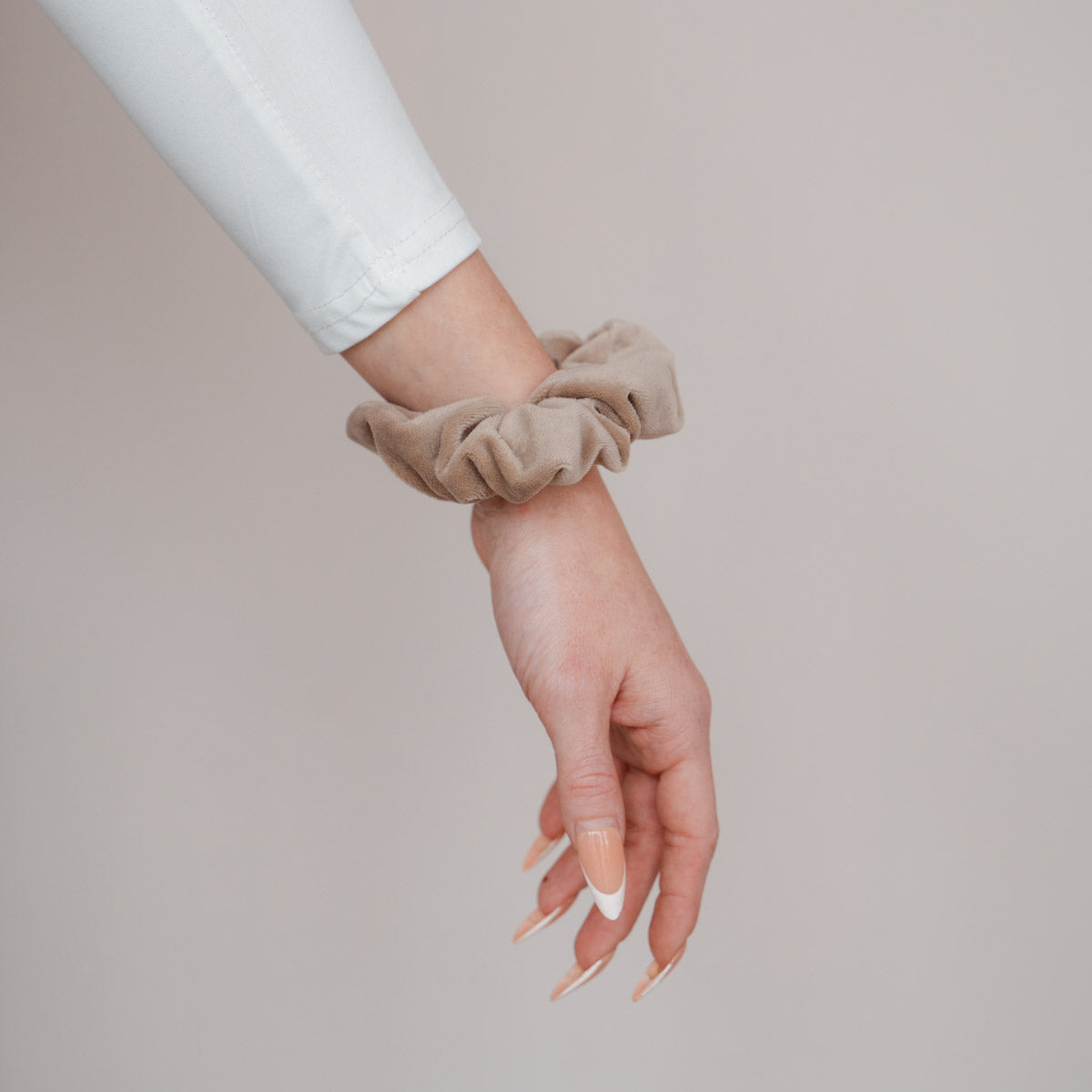 Bequem und schonend für das Handgelenk: Beim Tragen am Handgelenk sind unsere Scrunchies angenehmer als enge Haargummis. Sie hinterlassen keine Abdrücke oder verursachen Druckstellen.