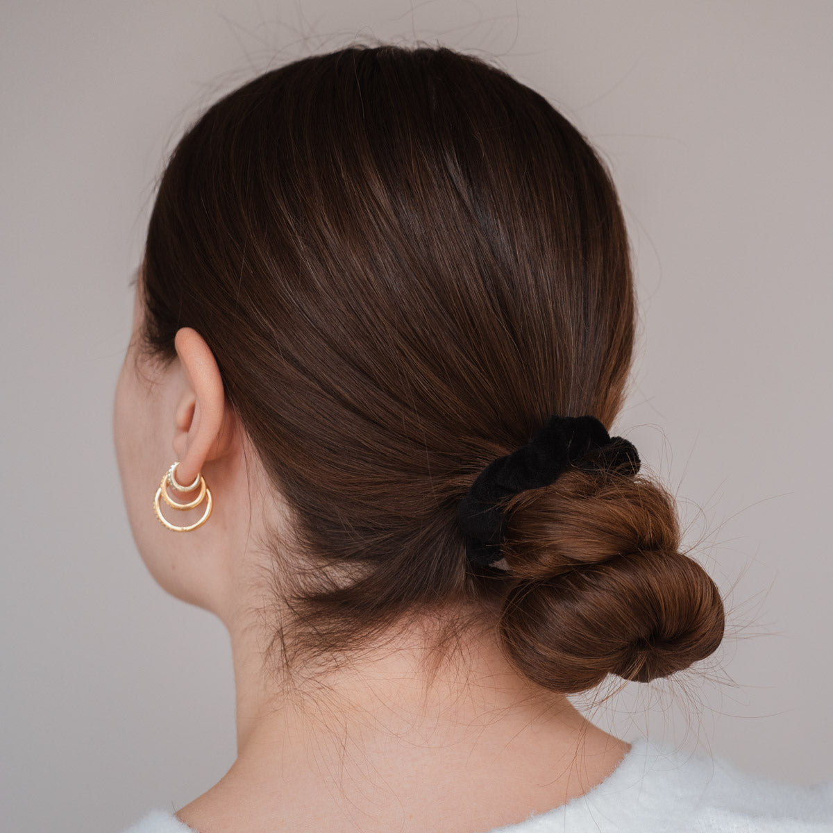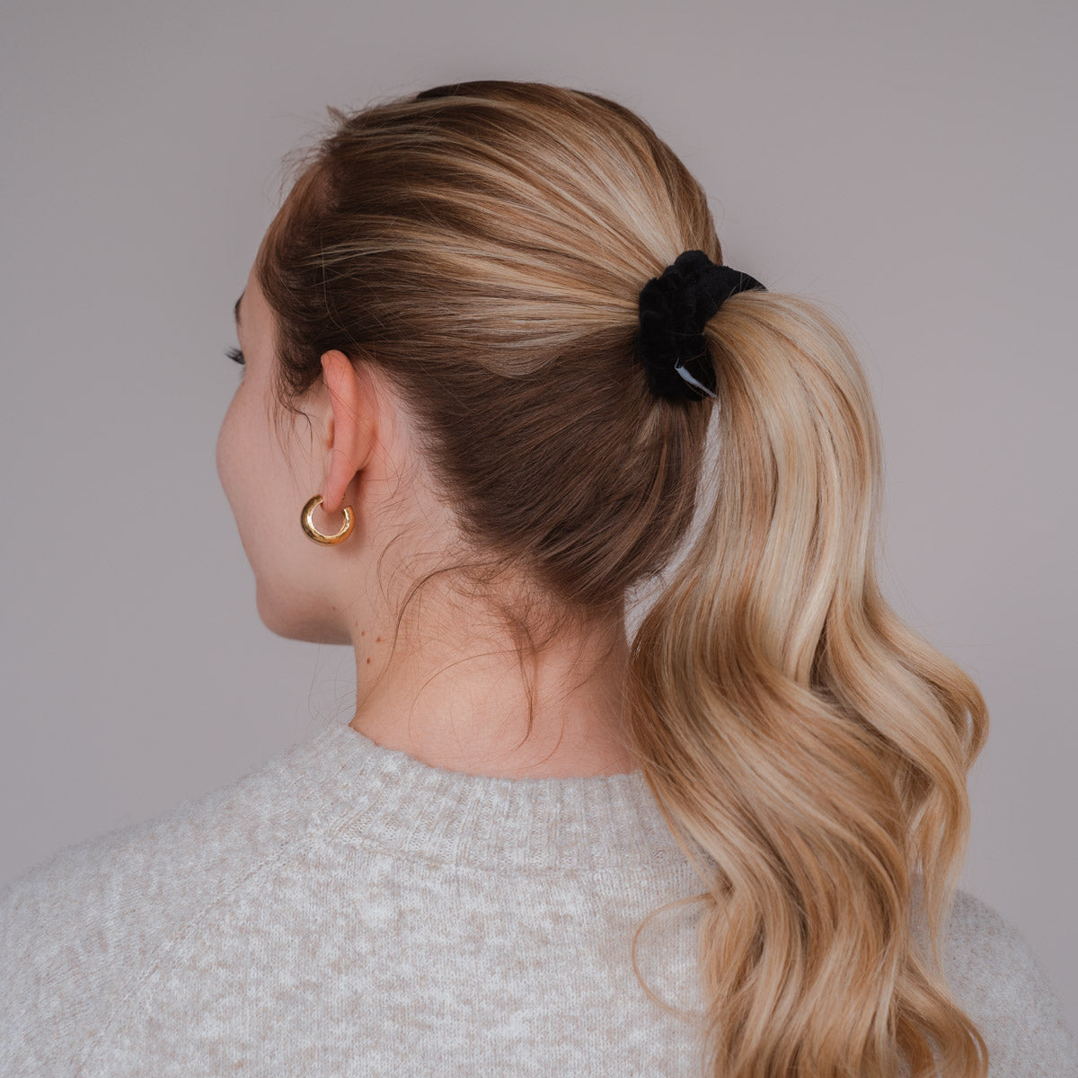 • Weniger Druckpunkte: Der größere Durchmesser und die weichere Struktur unserer Scrunchies verteilen den Druck gleichmäßiger auf das Haar. Bye Bye Kopfschmerzen.