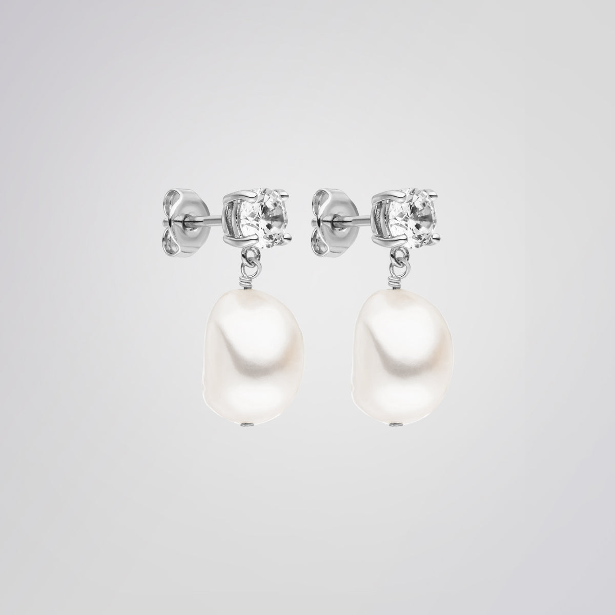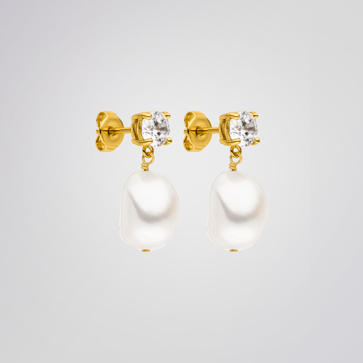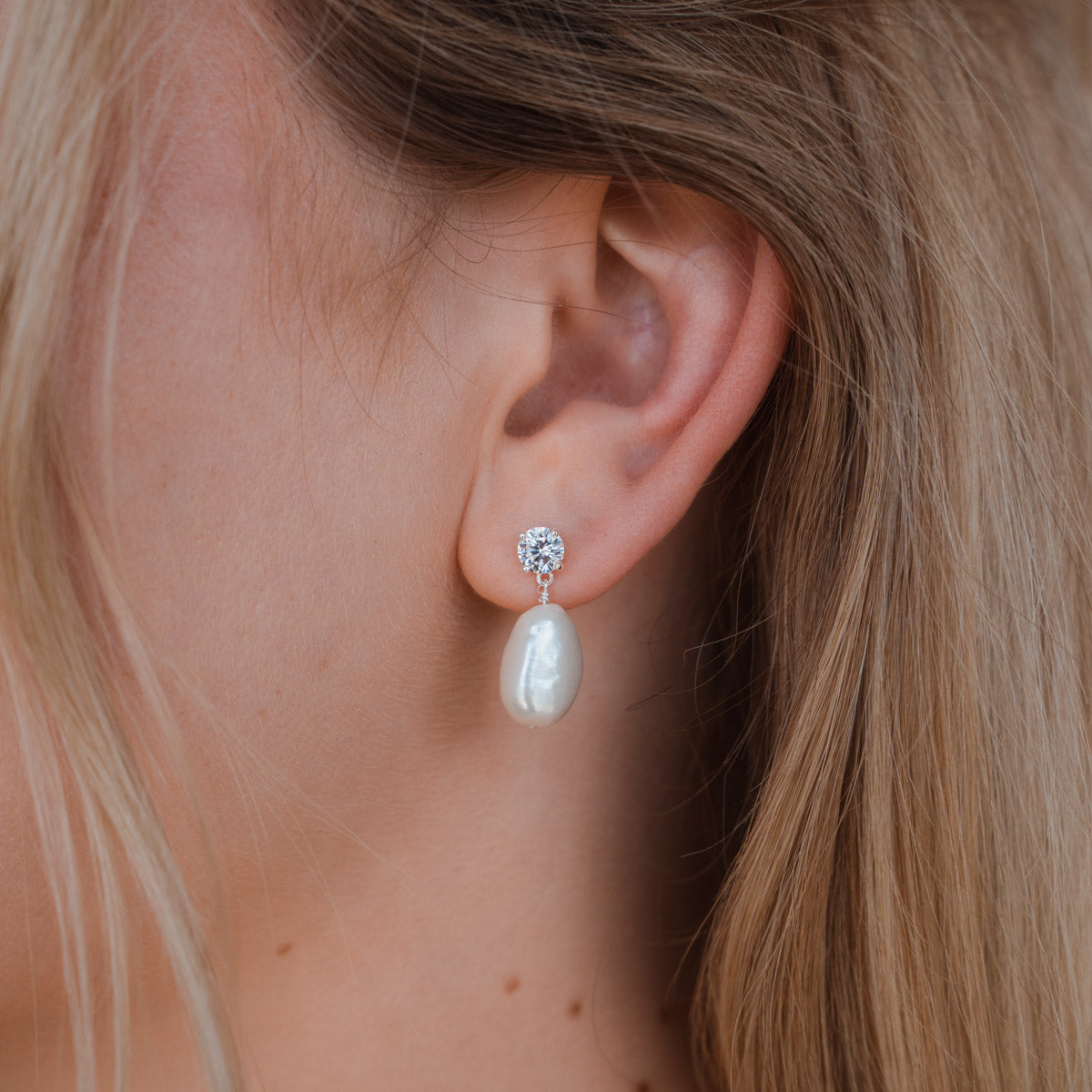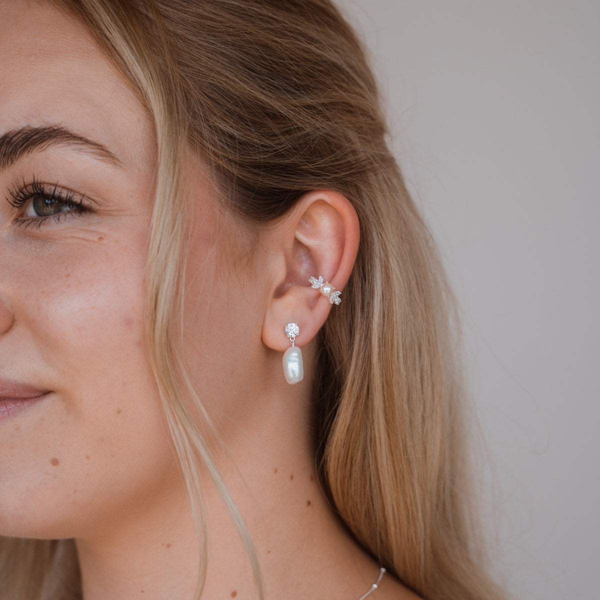 Diese Brigitte Ohrringe aus Eco Brass sind perfekt für Bräute und Brautjungfern. Mit Zirkonia Stein und Baroque Perle verleihen sie jedem Hochzeitsoutfit einen eleganten Touch. Als teil unserer Bridal Kollektion, sind sie die ideale Wahl für den großen Tag.