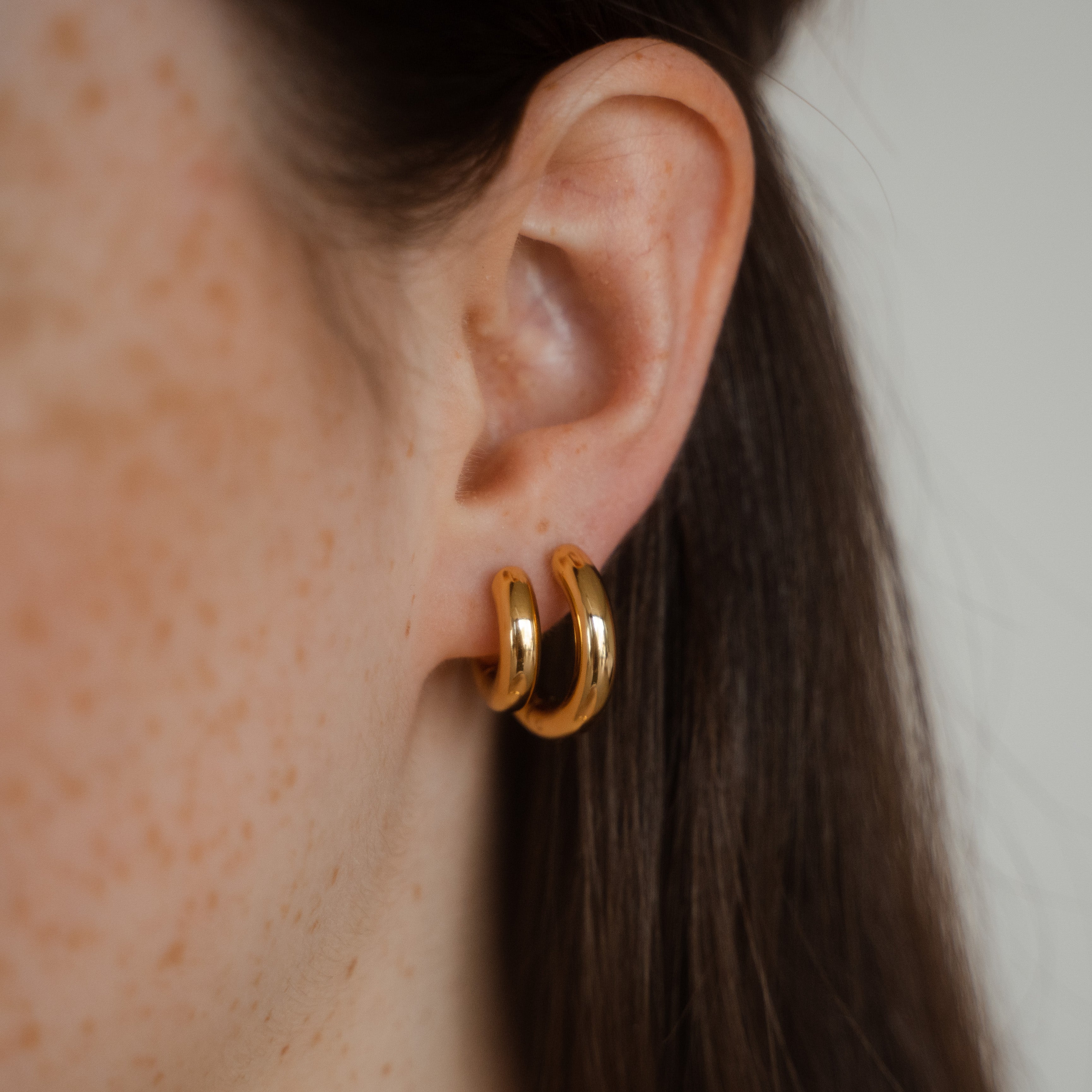 Die Chloe Hoop Ohrringe sind ein Must-Have Piece aus unserer Statement Kollektion und verkörpern wahre Eleganz. Mit den Chloe Ohrringen verleihst du deinem Outfit eine edle Note. Hergestellt aus hochwertigen Materialien, bieten sie ein angenehmes Trageerlebnis und glänzen in jeder Situation. In drei verschiedenen Größen erhältlich begleiten dich unsere goldenen und silbernen Alleskönner bei jeder Gelegenheit und helfen dir dabei dein persönliches Statement zu setzen.