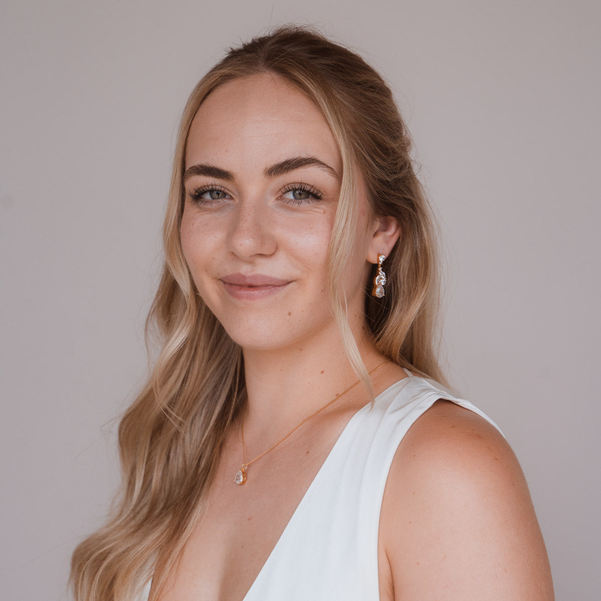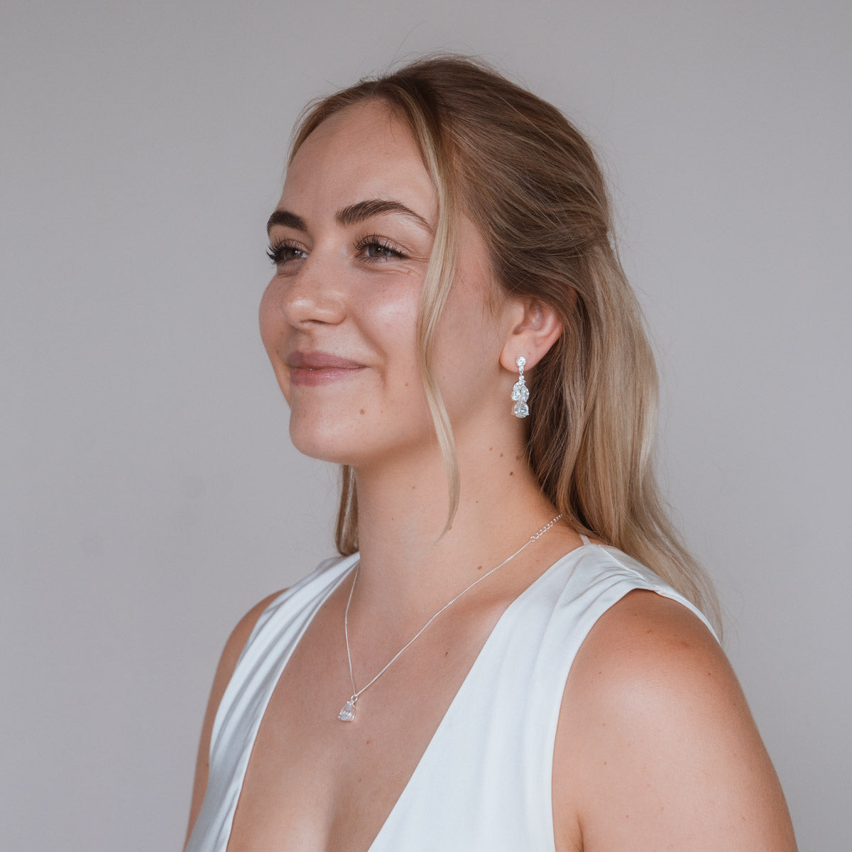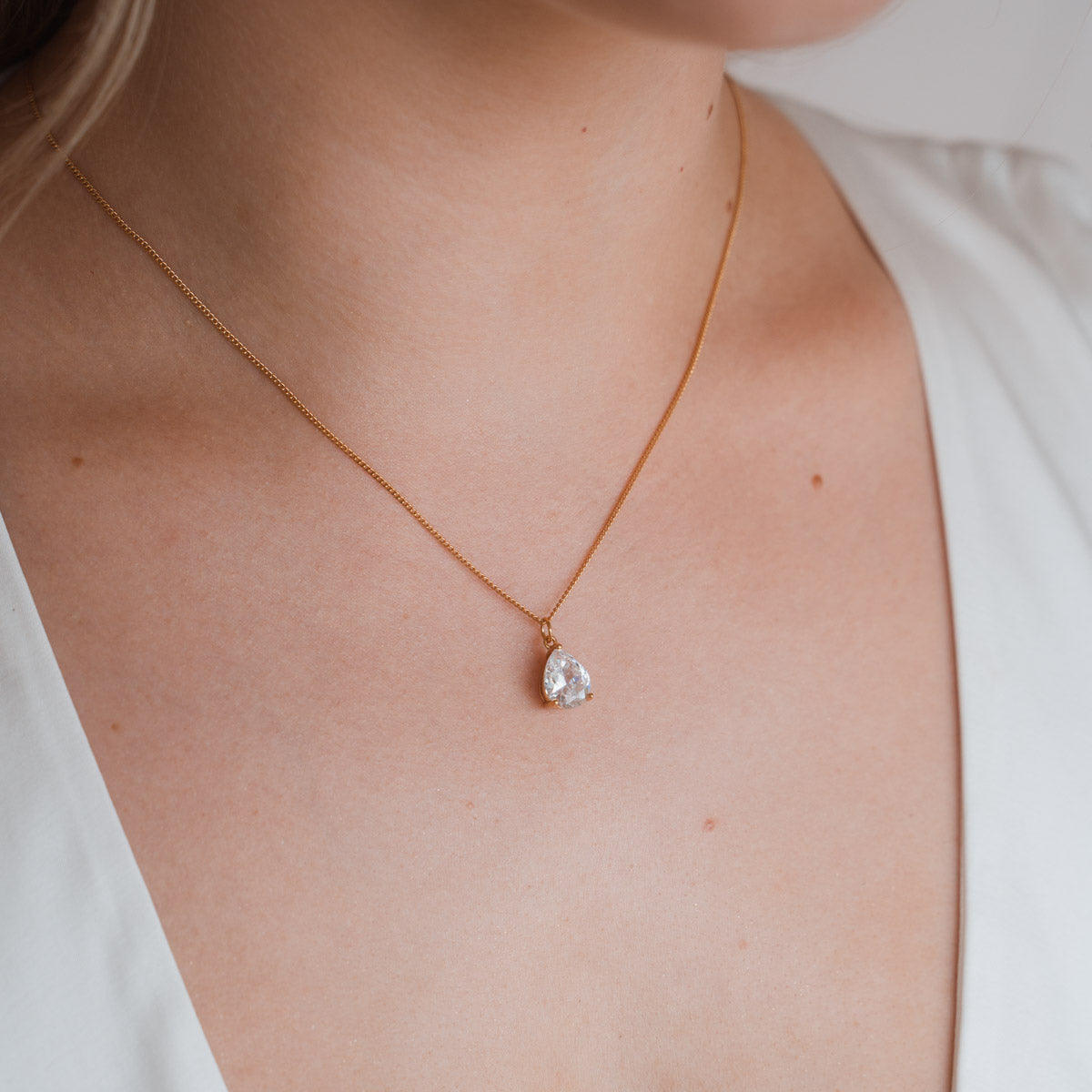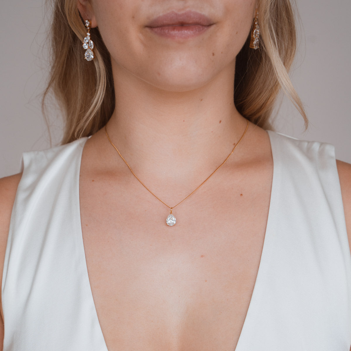 Perfekt für die Braut oder ihre Brautjungfern! Die Dorothea Halskette aus umweltfreundlichem Ecobrass ist mit einem funkelnden Zirkonia Stein verziert und Teil unserer exklusiven Bridal Kollektion. Ein wunderschönes Accessoire, das jedes Hochzeitsoutfit zum Strahlen bringt.