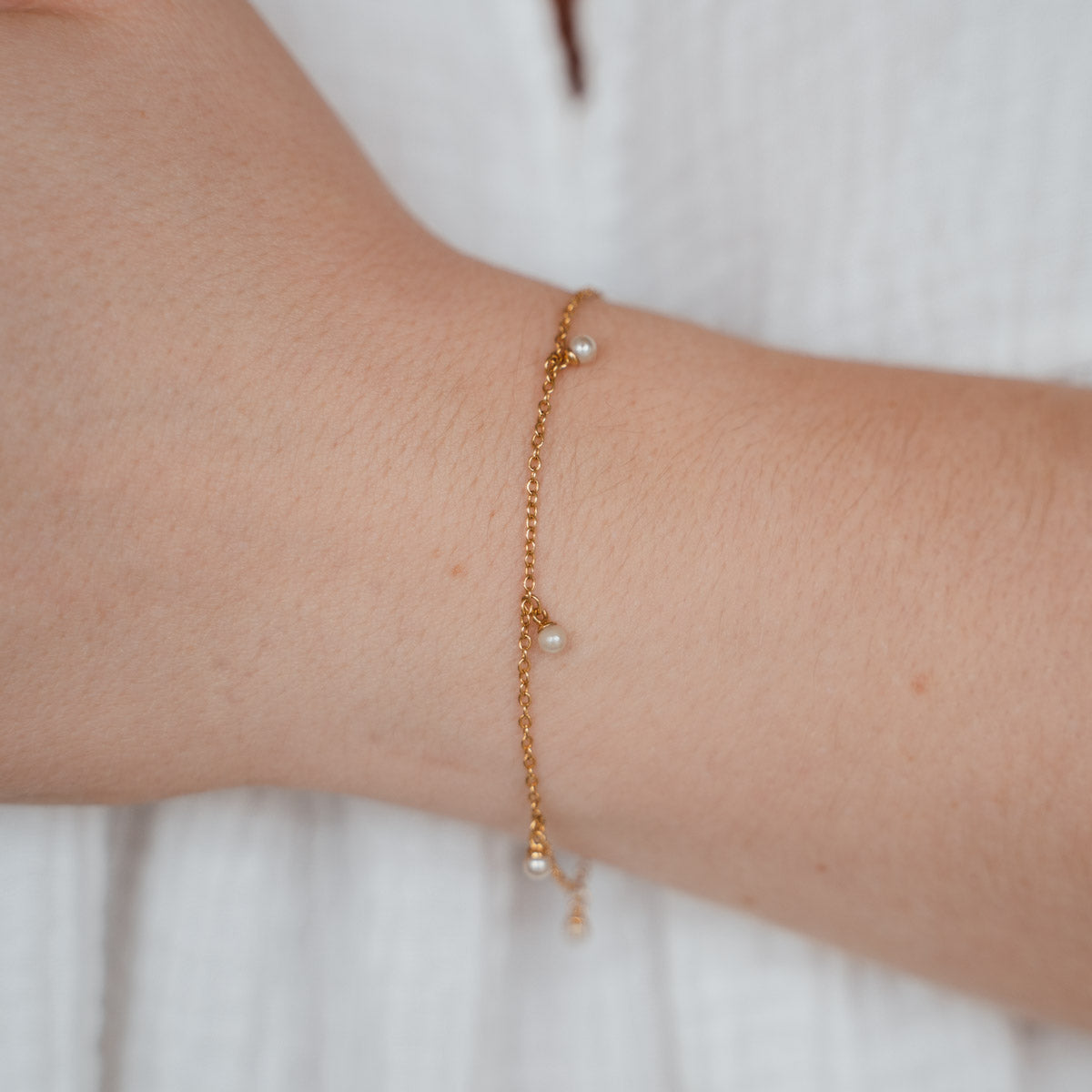 Das Ellie-Armband macht dein bestes Ausgeh-Outfit komplett oder gibt der Alltagskleidung mühelos einen edlen Anstrich. Gold und Perlen bleiben zeitlos aktuell. Sie zeigen jeder Generation, dass du Geschmack hast und genau weißt, was dir steht. Trag es einzeln als Statement-Piece oder kombiniere es mit Ringen und Halskette, wenn du in voller Montur ausgehen willst.