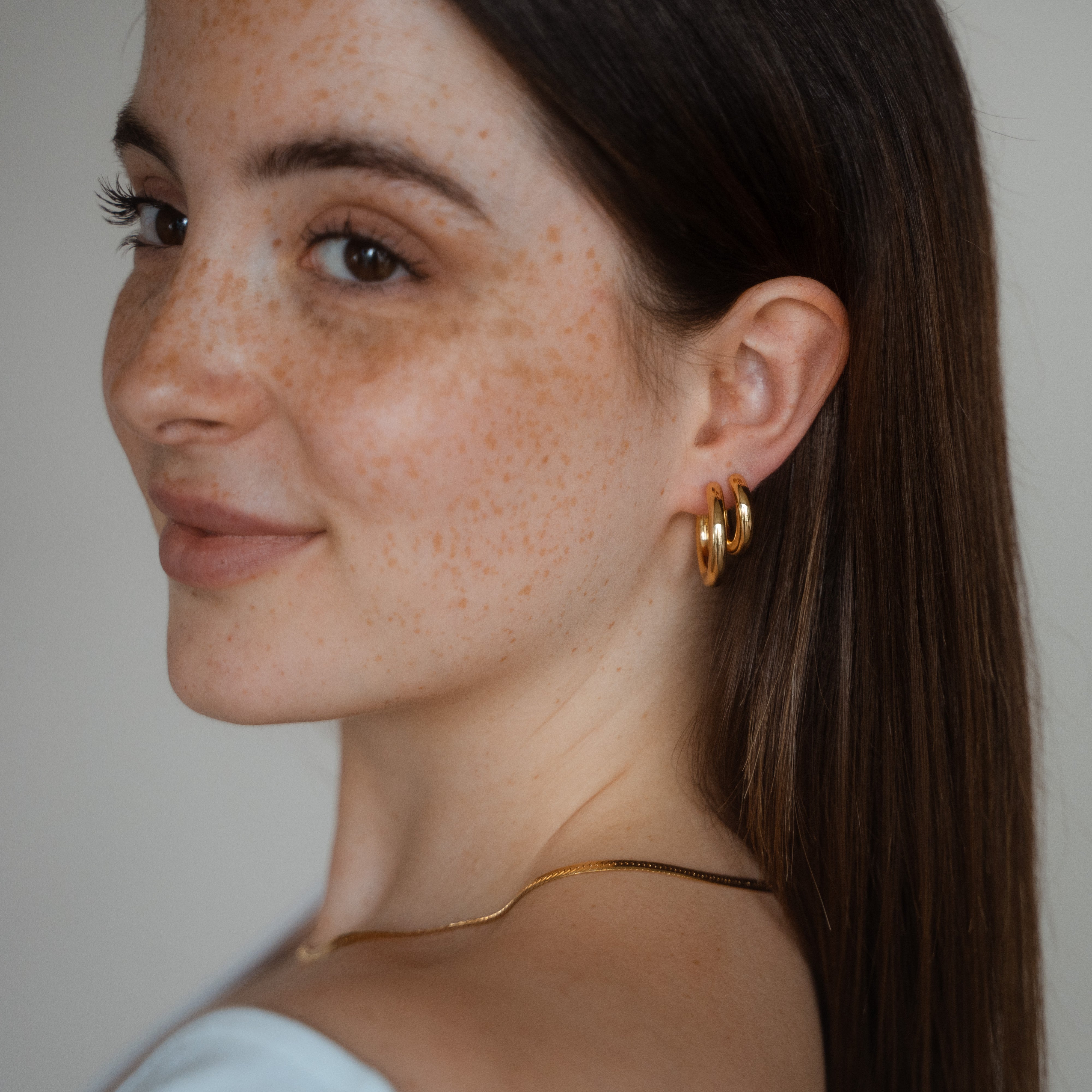 Entdecke den einzigartigen Charme unserer Hailey Hoop Ohrringe aus unserer Statement Kollektion. Diese fesselnden Ohrringe verleihen deinem Look einen Hauch von Raffinesse und Stil. Gefertigt aus erstklassigen Materialien, bieten sie einen angenehmen Tragekomfort und einen glänzenden Auftritt. In drei verschiedenen Größen erhältlich begleiten dich unsere goldenen und silbernen Alleskönner bei jeder Gelegenheit und helfen dir dabei dein persönliches Statement zu setzen.