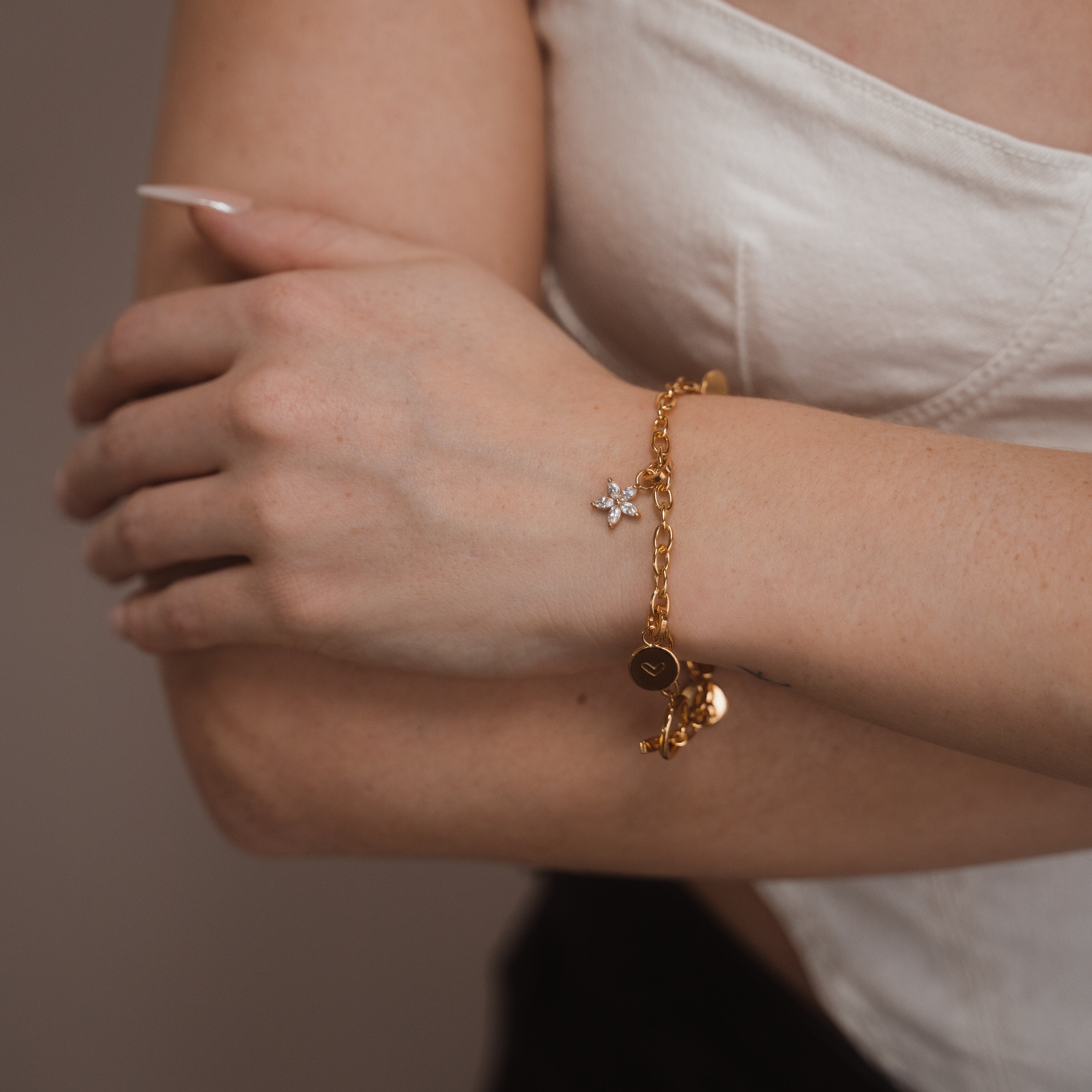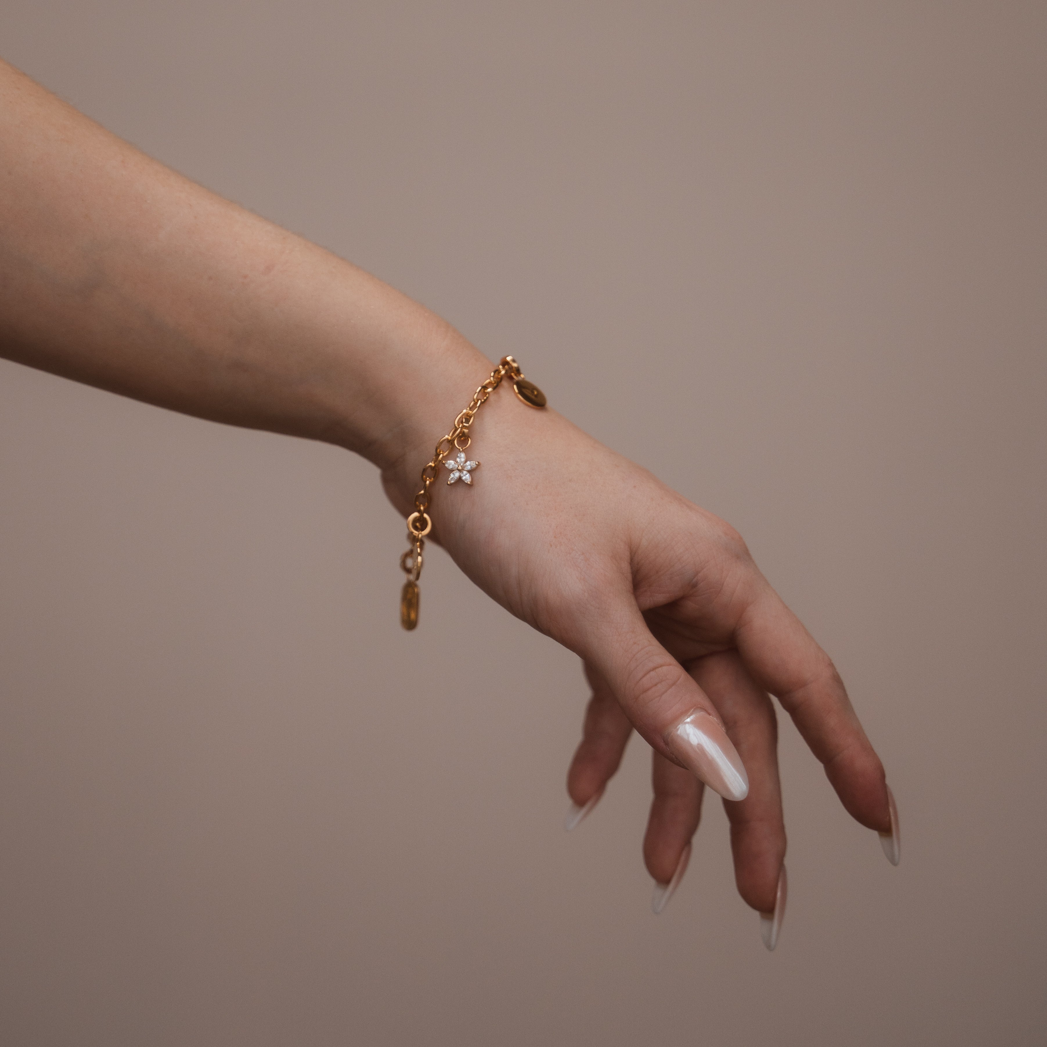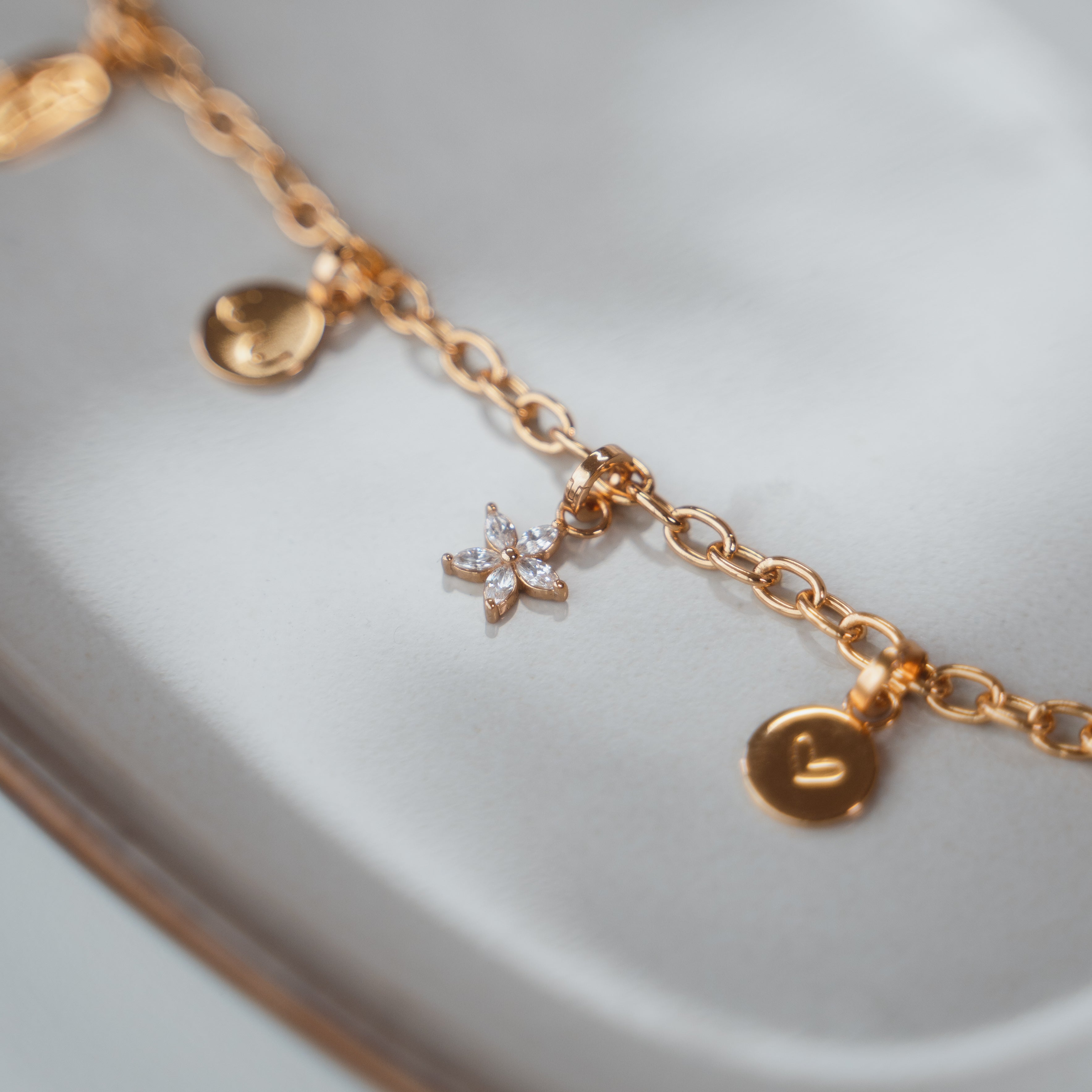 Zeig' deine Liebe mit diesem wunderschönen HANA Anhänger! Mit einer funkelnden Blume aus Zirkonia Steinchen ist dieser Anhänger das perfekte Accessoire für jede Kette und jedes Armband! Ein Must-Have für jede Accessoire-Sammlung!