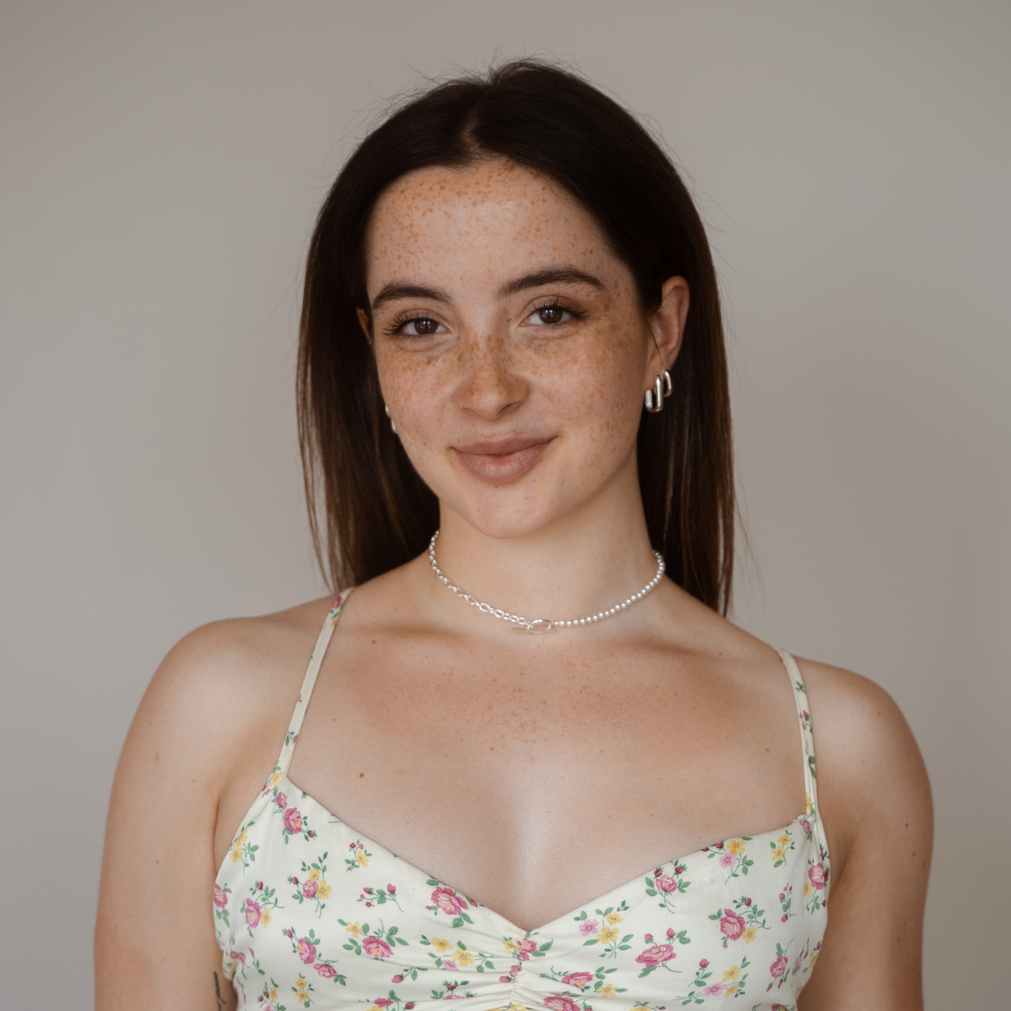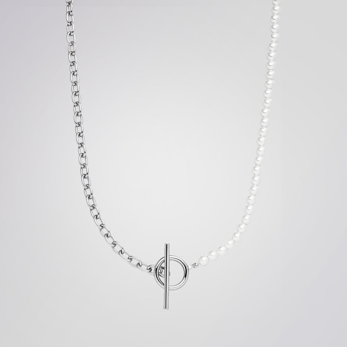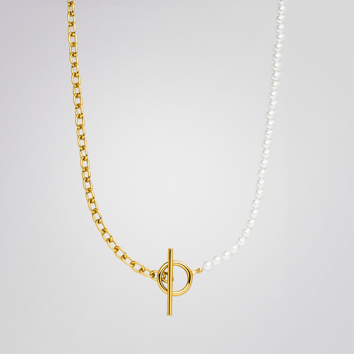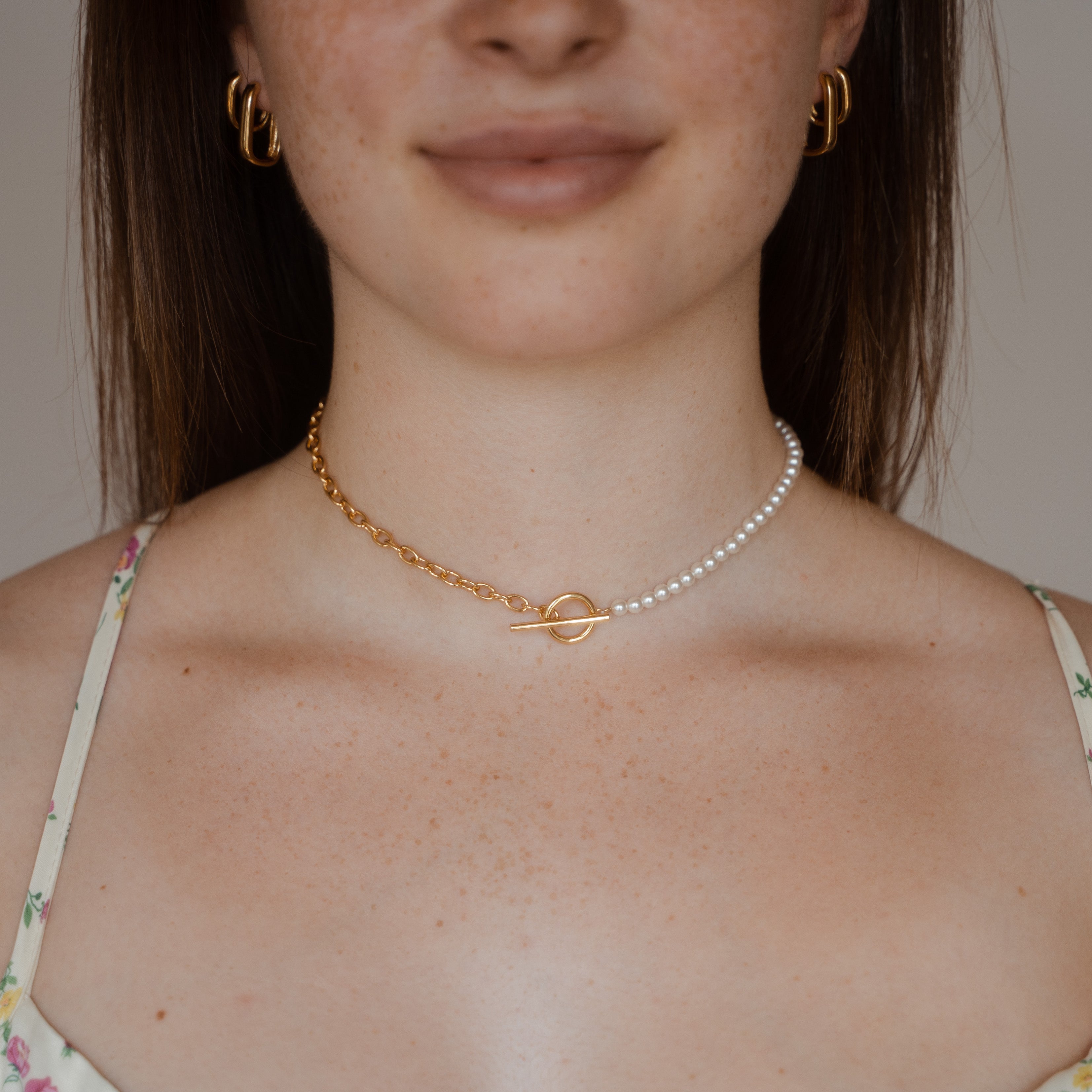 Verleihe deinem Stil mit der Maisie Choker Halskette eine neue Dimension. Der T-Bar Verschluss schafft eine harmonische Verschmelzung aus Halb Kette, halb Perle, und setzt ein Statement der Raffinesse.