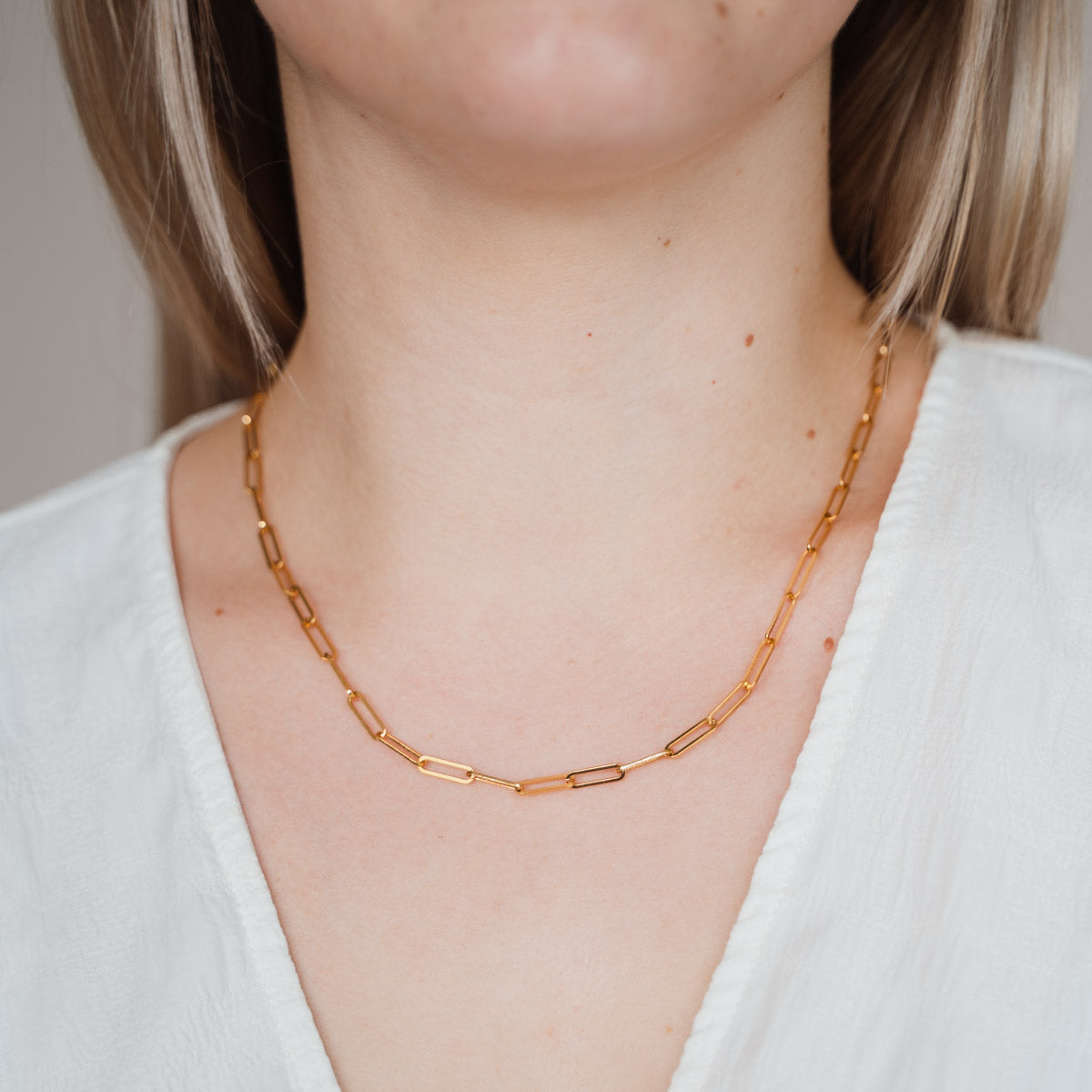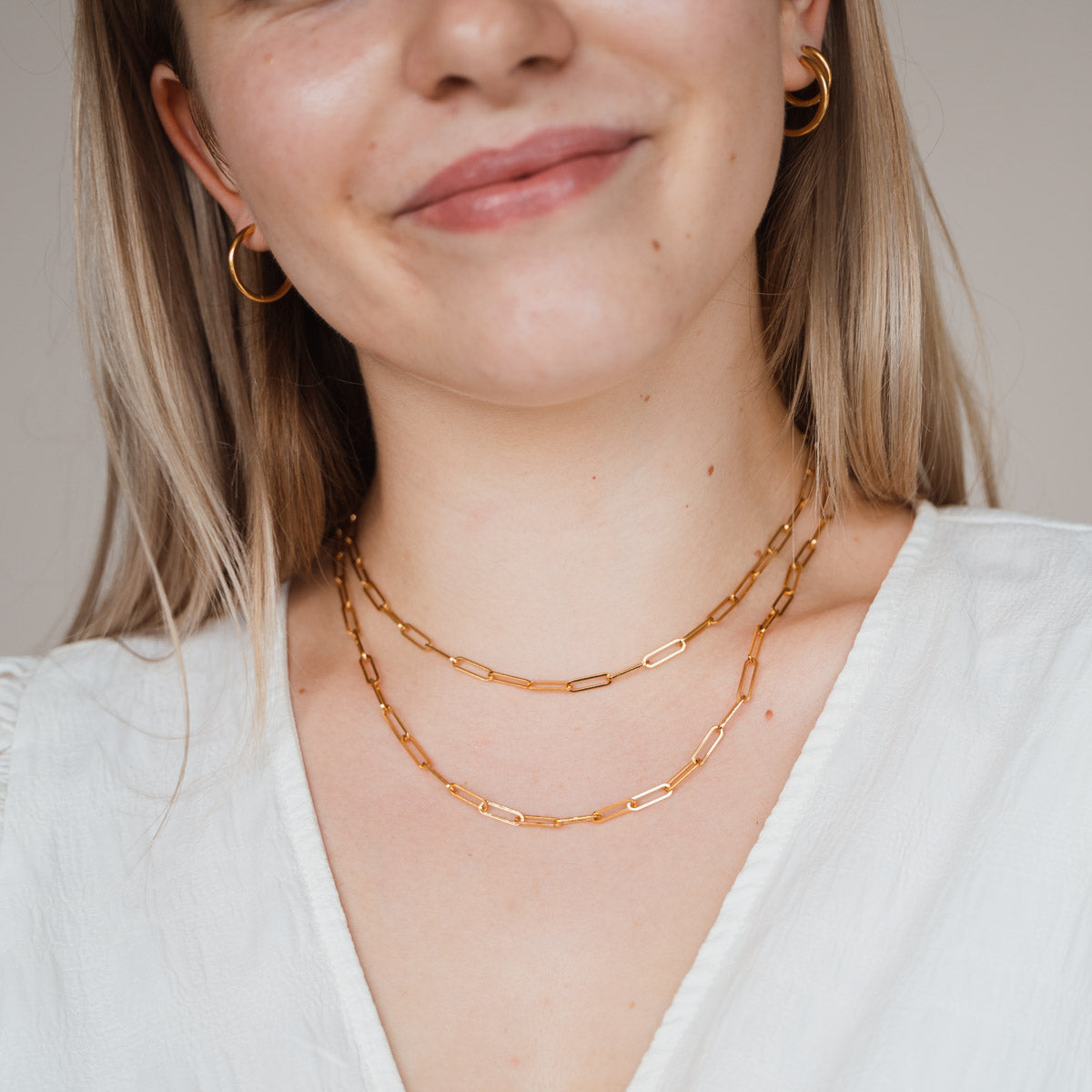 Die May Halskette ist durch ihre feine Gliederkette ein eleganter Eye-Catcher und ein absoluter allrounder für jedes Outfit. Durch den Verschluss an der Vorderseite der Kette kann Sie ebenso im Y-Look getragen und individuell angepasst werden.