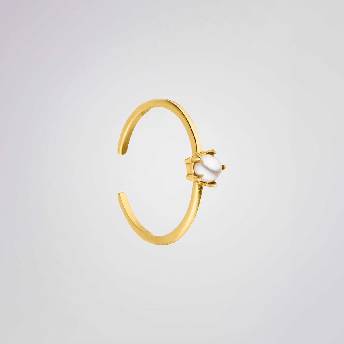Meghan ist ein aus 925er Sterling Silber hergestellter Ring mit einer hochwertigen 18 Karat Mehrfachvergoldung. Dieses elegante Statement-Piece wertet jedes Outfit dezent und dennoch elegant auf. Der Ring wird von einer kleinen eingefassten Perle geziert. Die Größe dieses zeitlosen Rings ist individuell verstellbar und kann somit immer getragen werden.