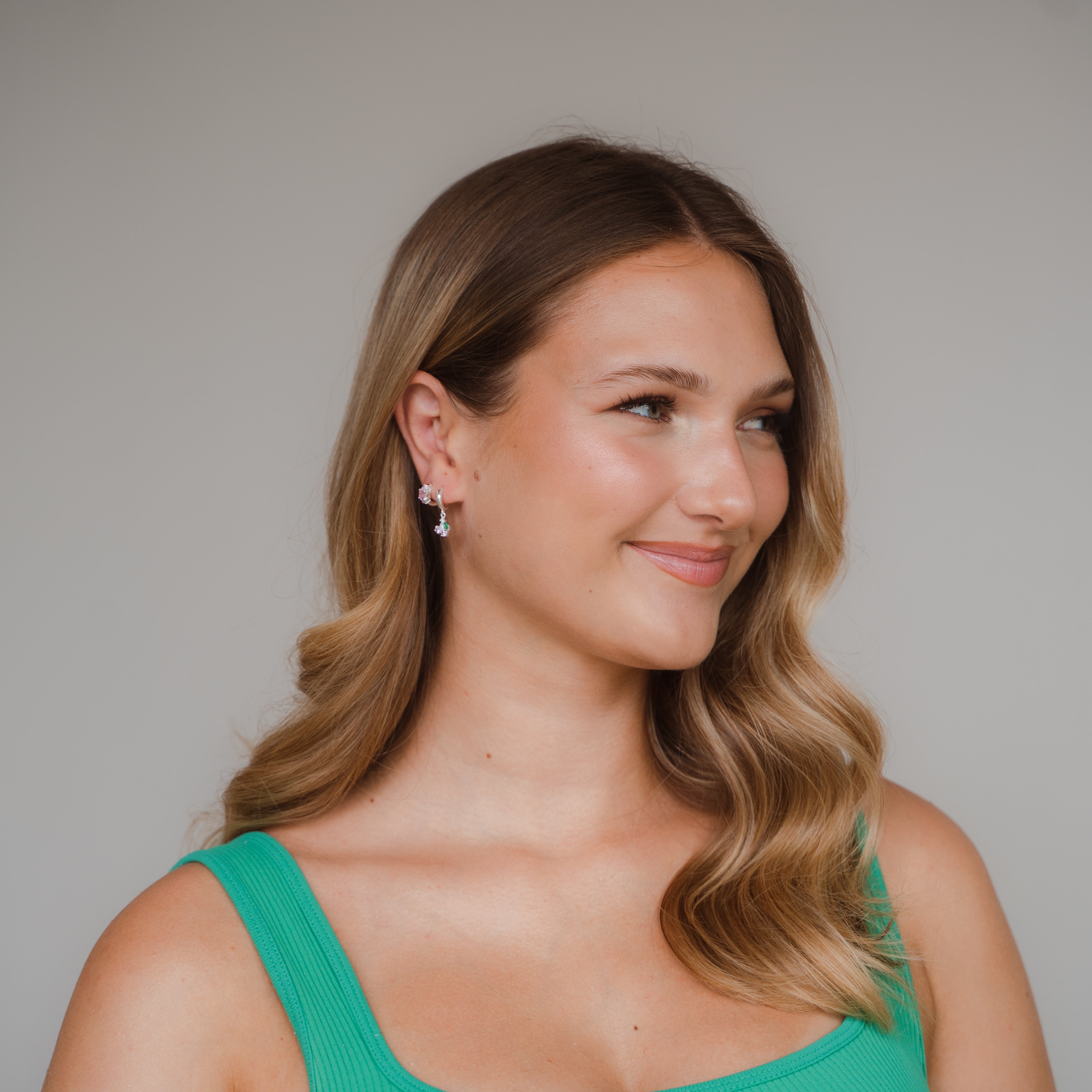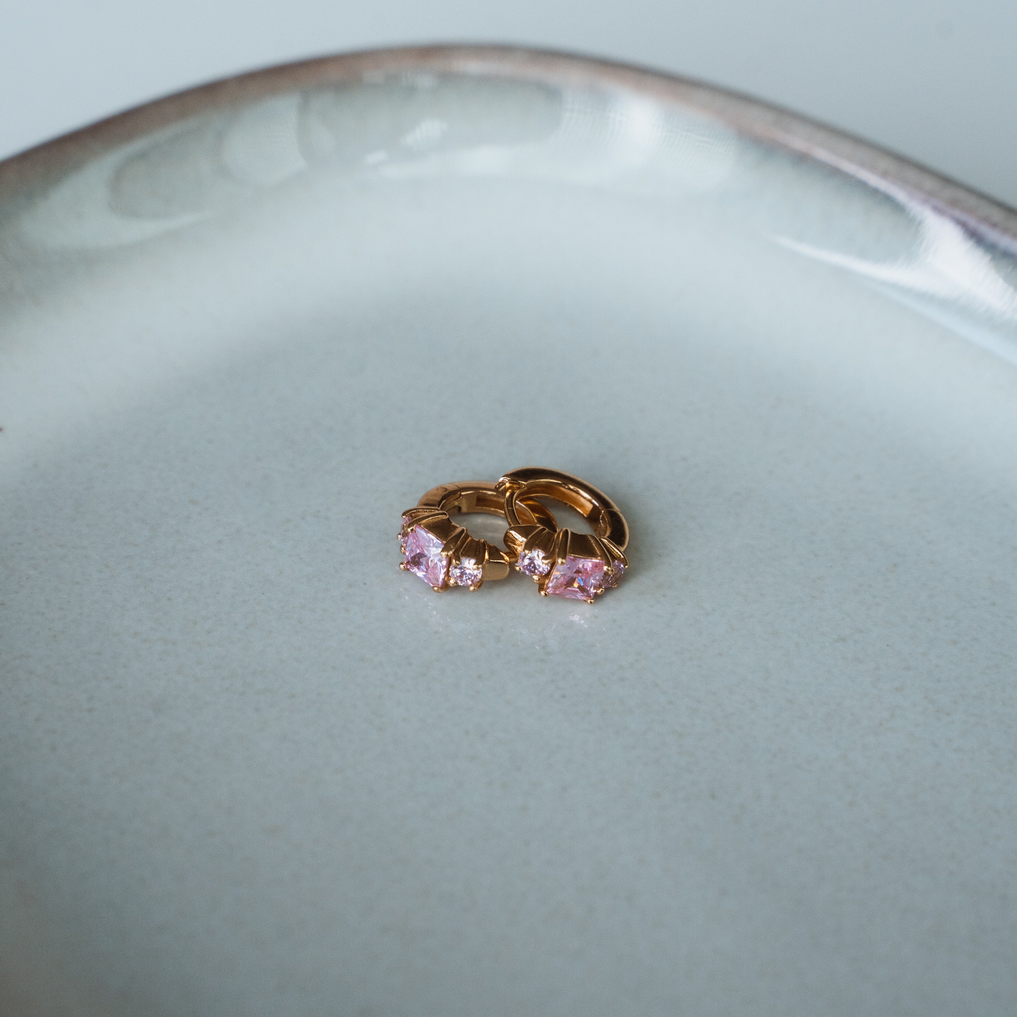 Entdecke die bezaubernden Philli Ohrringe aus der CLAIDE x Jackie Alice Kollektion! Mit ihren funkelnden pinken Steinchen verleihen sie deinen Ohren einen Hauch von Glamour und Farbe. Diese Ohrringe sind eine Erinnerung an den besonderen Moment, als Jackie während ihres Studiums in den USA mit ihren Gastgeschwistern einen deutschen Weihnachtsmarkt in Philli besuchte und eine wundervolle Zeit erlebte.