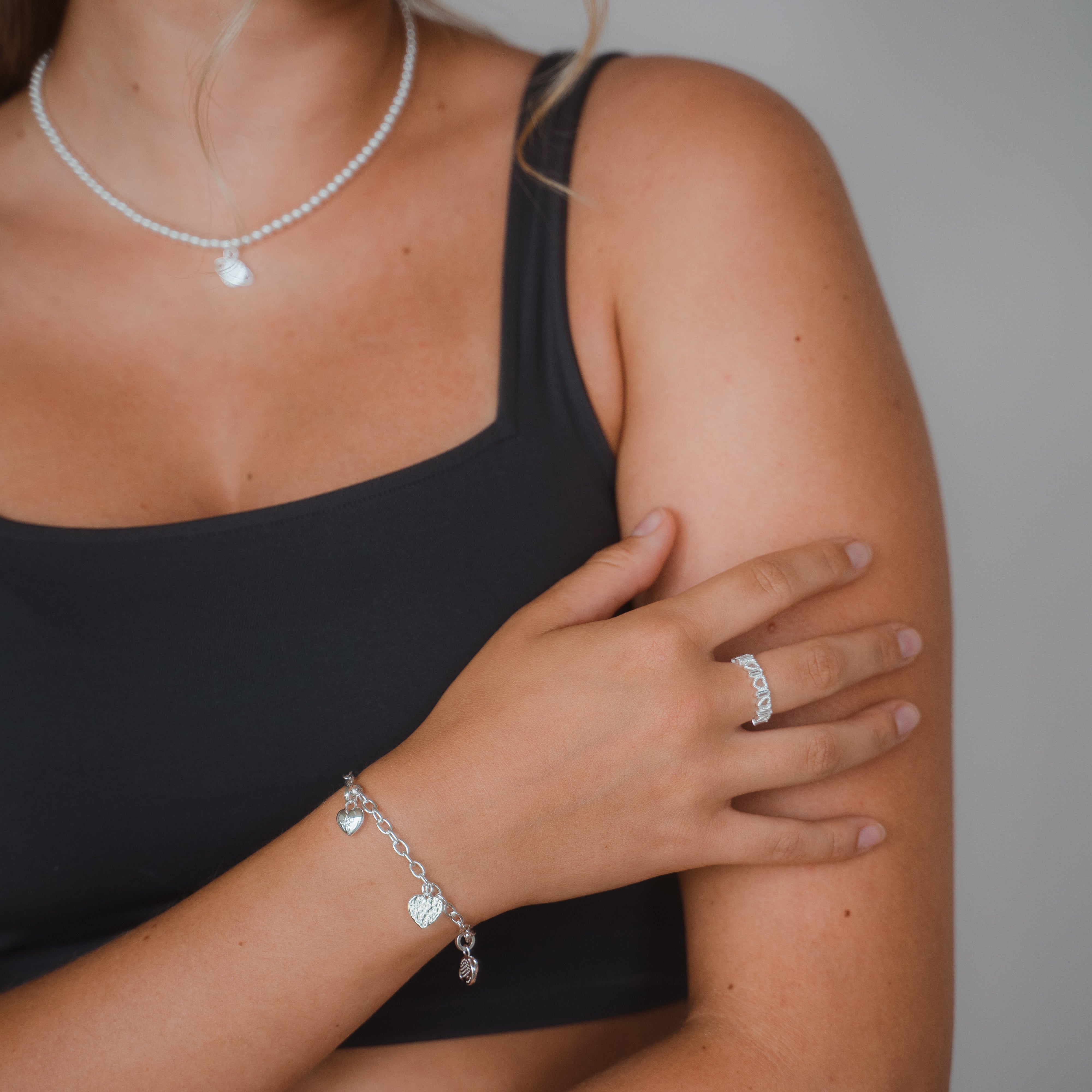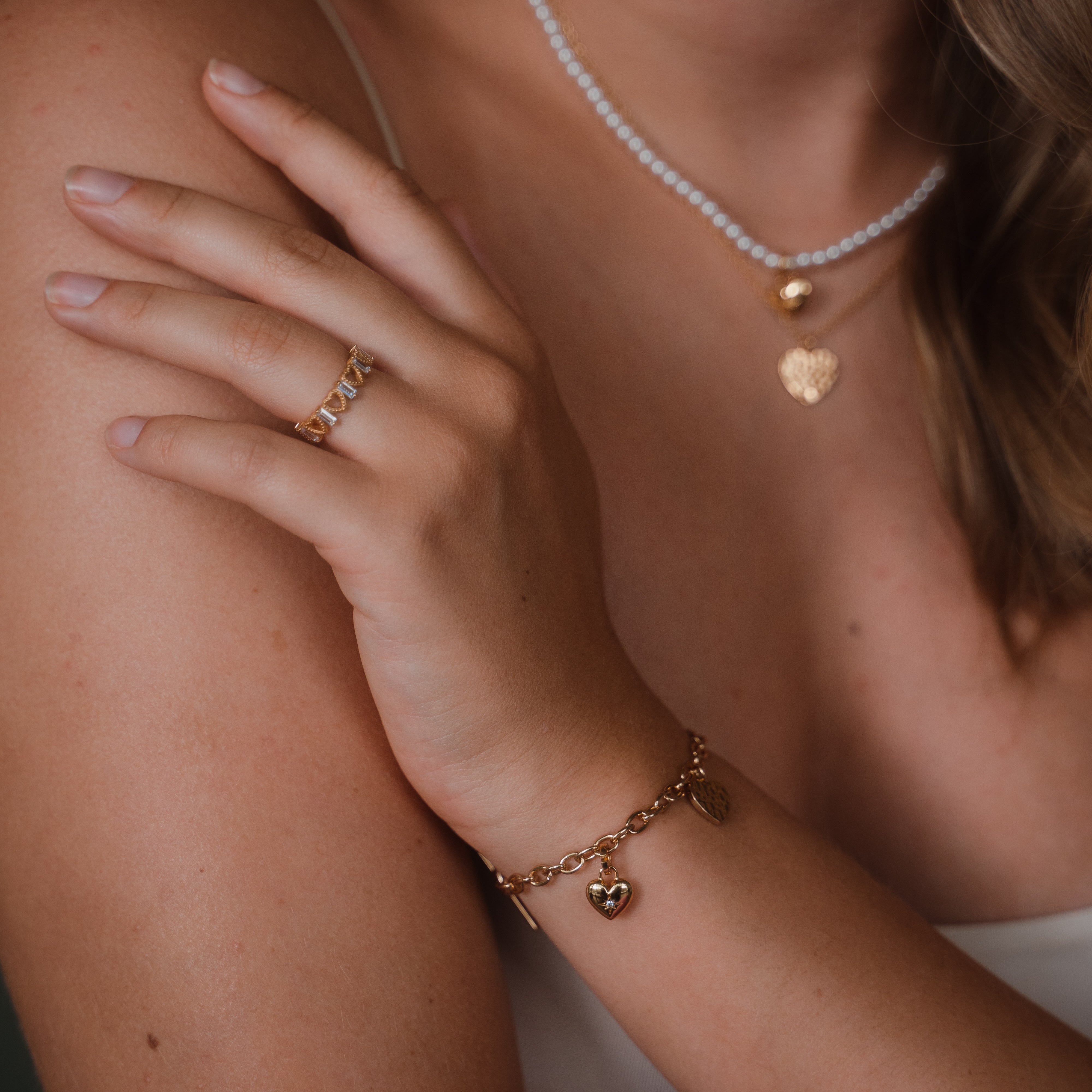 Entdecke den bezaubernden Sainte Marie Anhänger aus der CLAIDE x Jackie Alice Kollektion! Mit seinem herzförmigen Design und den funkelnden Steinchen ist er der perfekte Begleiter für jede Kette oder jedes Armband. Dieser Anhänger ist eine Hommage an Sainte Marie, den Ort, an dem Jackie jeden Sommer ihrer gesamten Kindheit verbracht hat.