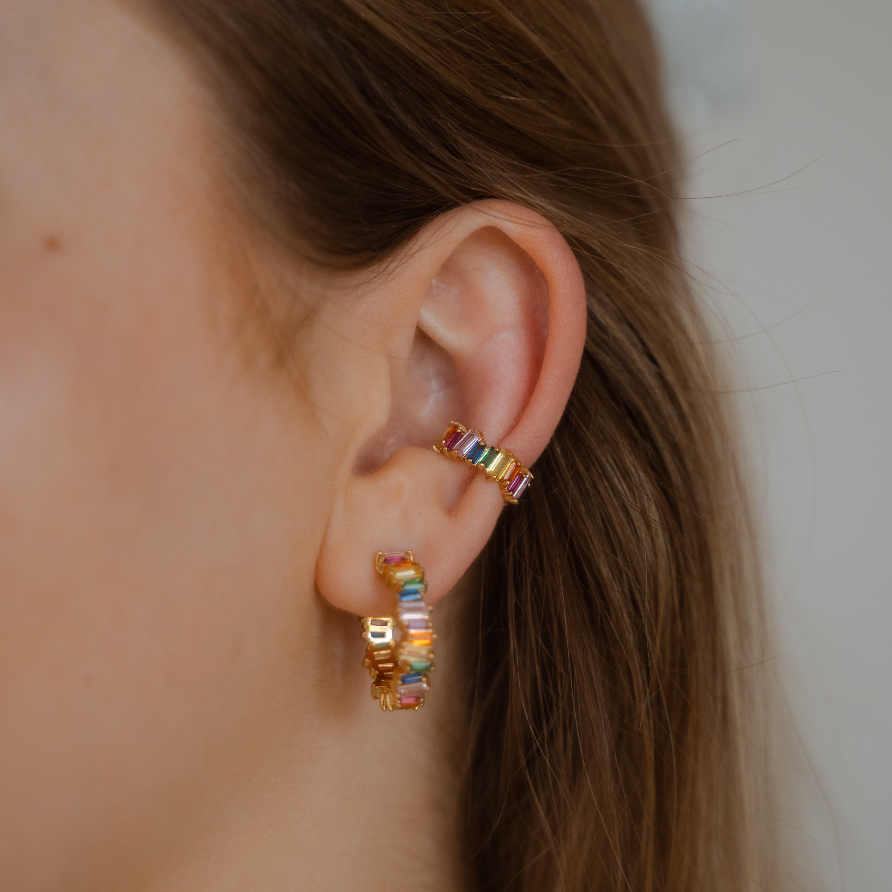 Entdecke den faszinierenden Vida Earcuff mit bunten Steinchen, der perfekt für den Sommer ist! Mit seinem trendigen Design verleiht er deinem Ohr einen auffälligen Akzent und lässt dich strahlen, während du die warmen Sonnenstrahlen genießt.