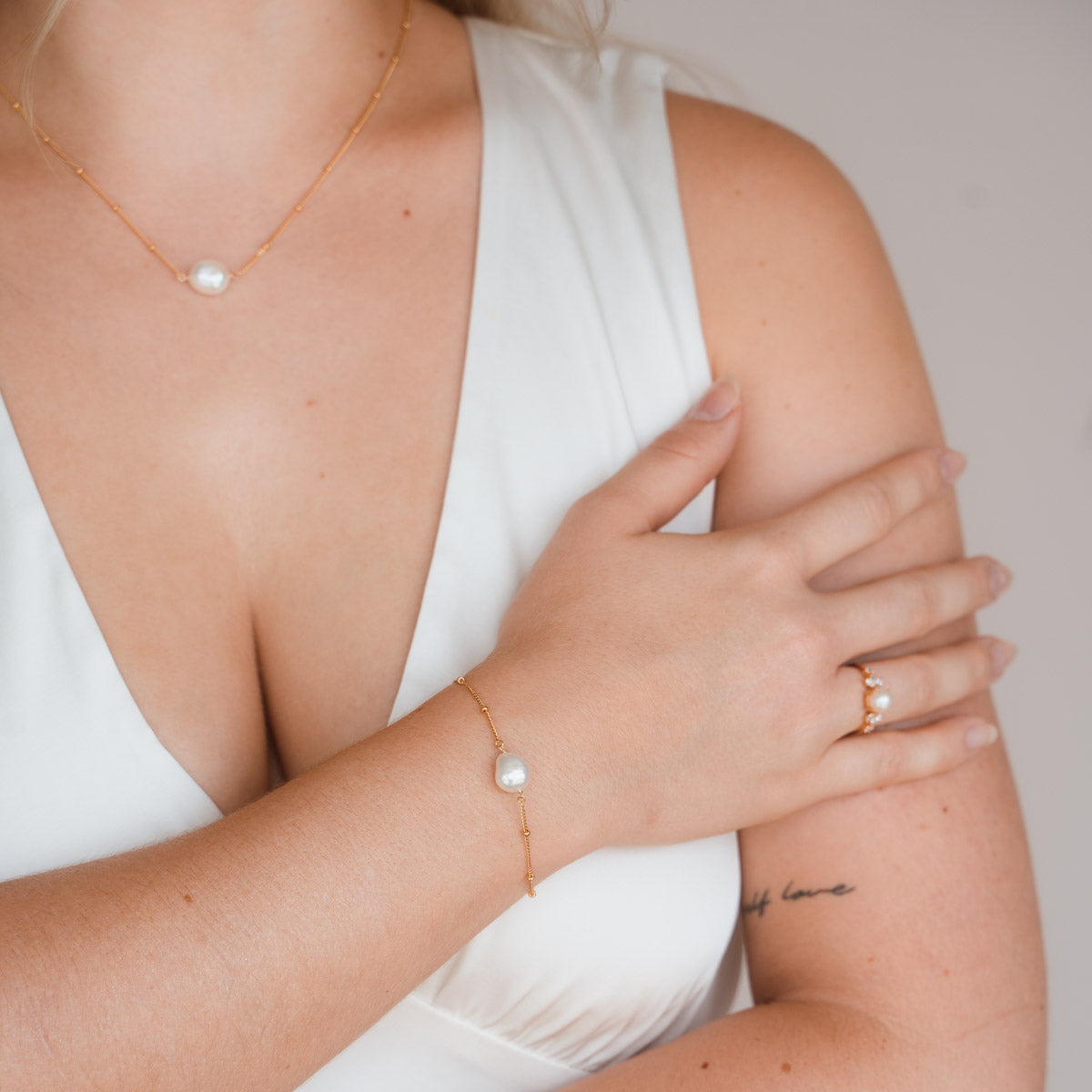 Mit dem Christine Armband aus umweltfreundlichem Eco Brass kannst du nicht nur umweltbewusst, sondern auch stilvoll punkten. Das Armband besticht durch eine glänzende Perle als Highlight. Ein echter Hingucker für jeden Anlass!