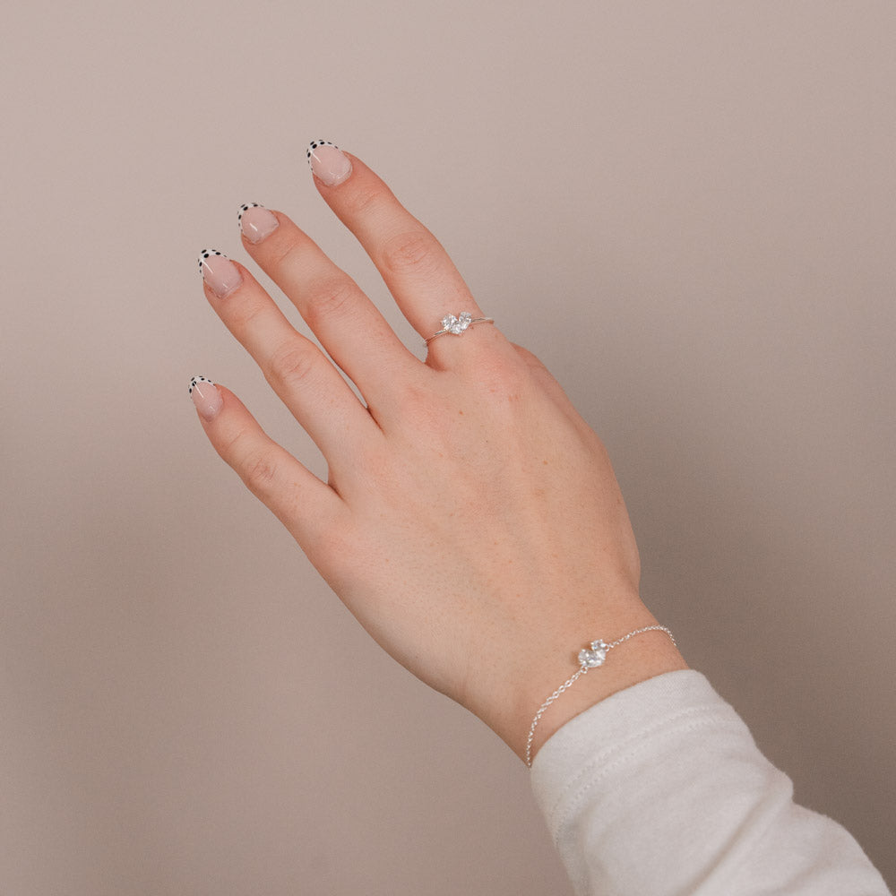 Das Madison Armband vereint moderne Eleganz mit einem feinen Statement. Zwei weiße Zirkonia-Steine in Tropfenform fügen sich zu einer Herzform zusammen und verleihen dem Design eine feminine Ausstrahlung – dezent, zeitlos und vielseitig kombinierbar.