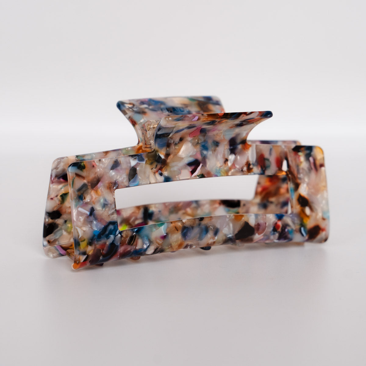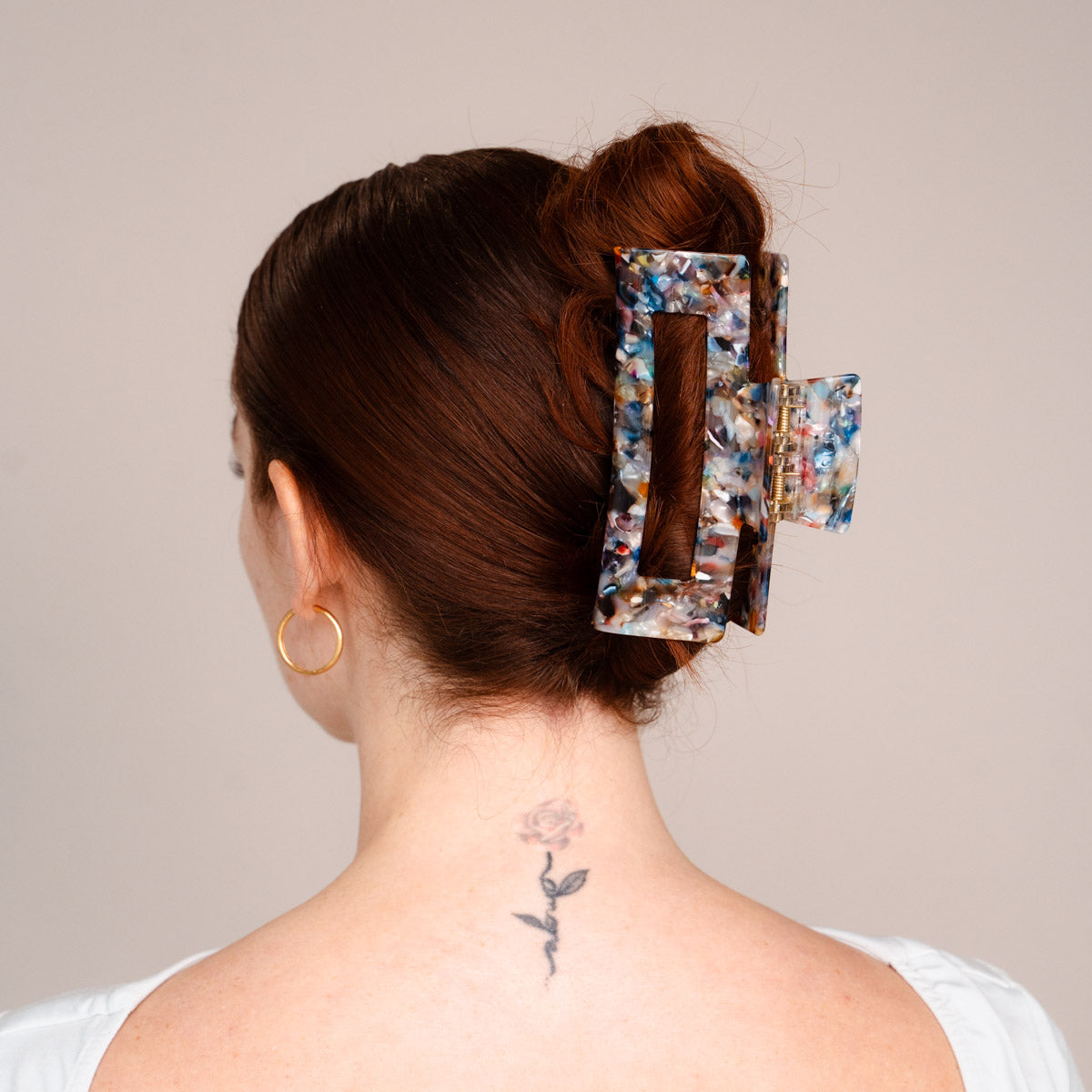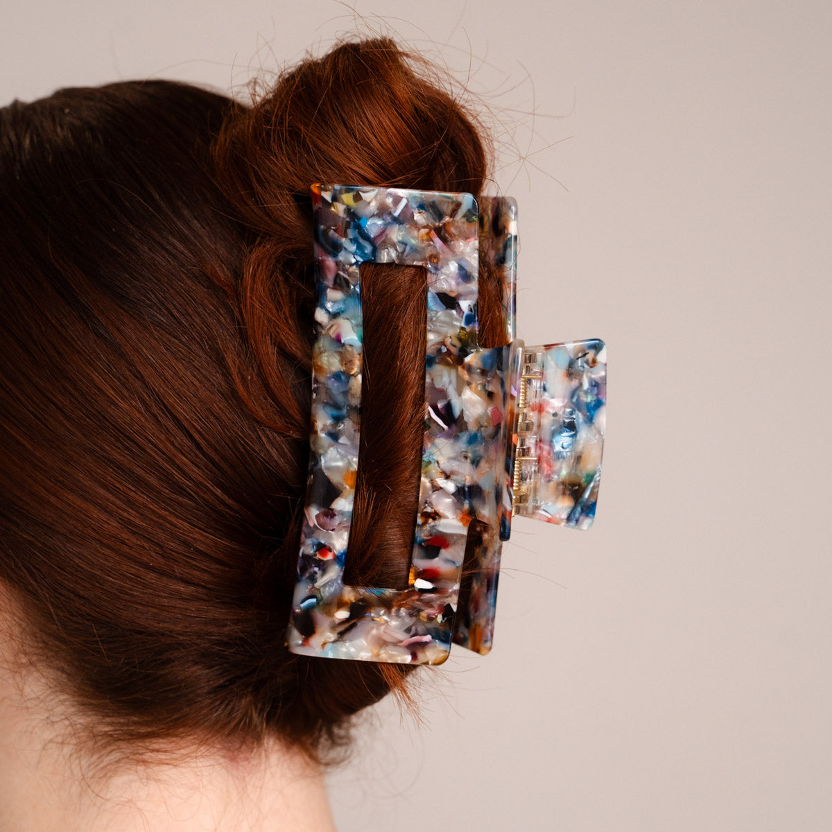 ADRIANA ist ein Must-Have für deine ultra dicken Haare. Mit zwei Federn bietet die Klammer extra starken Halt, der dein Haar sicher und fest hält, egal was du vorhast, selbst wenn andere Klammern versagen. ADRIANA ist Teil unserer XL Haarklammern Family und somit für big hair girls die Go-To Haarklammer. Das vielseitige bunte Design verbindet Style und Stil, einen entspannten Look mit klassischer Eleganz. Mit der Haarspange wird dein Outfit mühelos edel wirken: unaufdringlich, aber nicht zu übersehen.