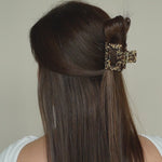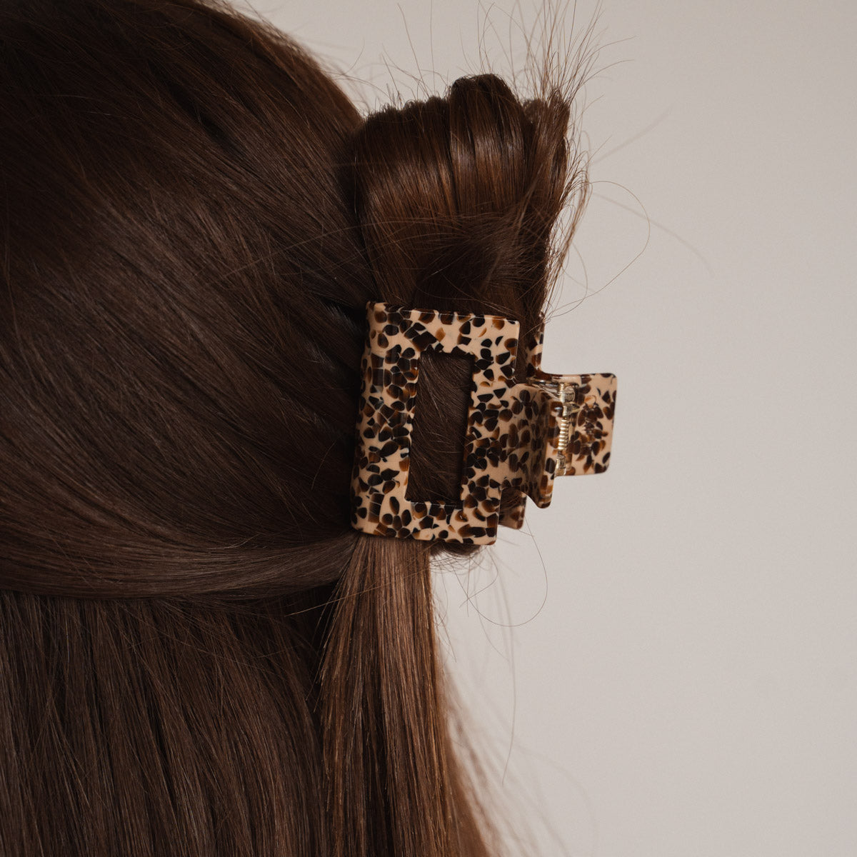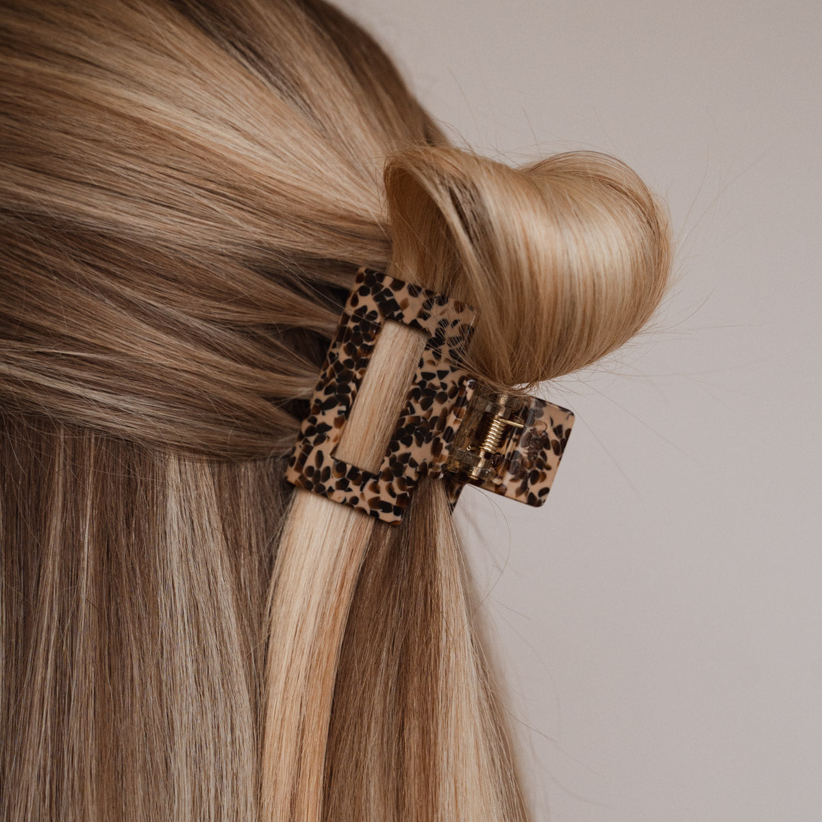 Unsere ALIA Clip ist ein Must-have Piece unter unseren Haarklammern! Mit ihrem schönen gesprenkelten Design gibt sie jedem Outfit das gewisse etwas - egal ob im Haar oder an der Handtasche. ALIA eignet sich sowohl für feineres, als auch dickeres Haar. Sie ist groß genug, um das gesamte Haar hochzustecken, kann aber auch für einen Halfbun genutzt werden. Eine Haarspange für das perfekte Haarstyling.
