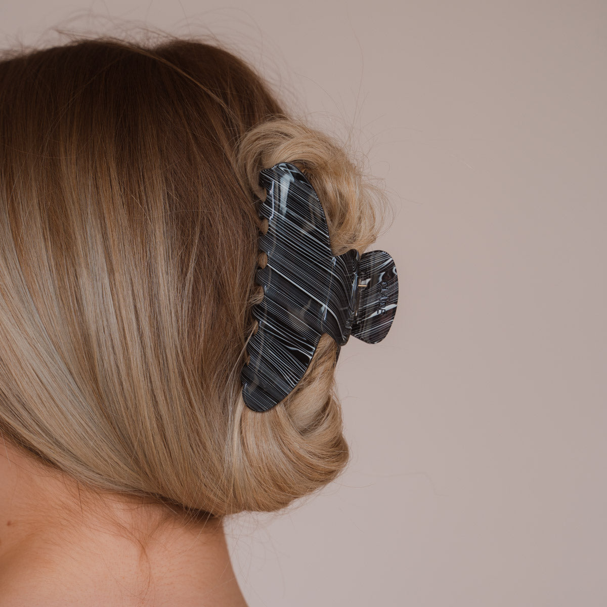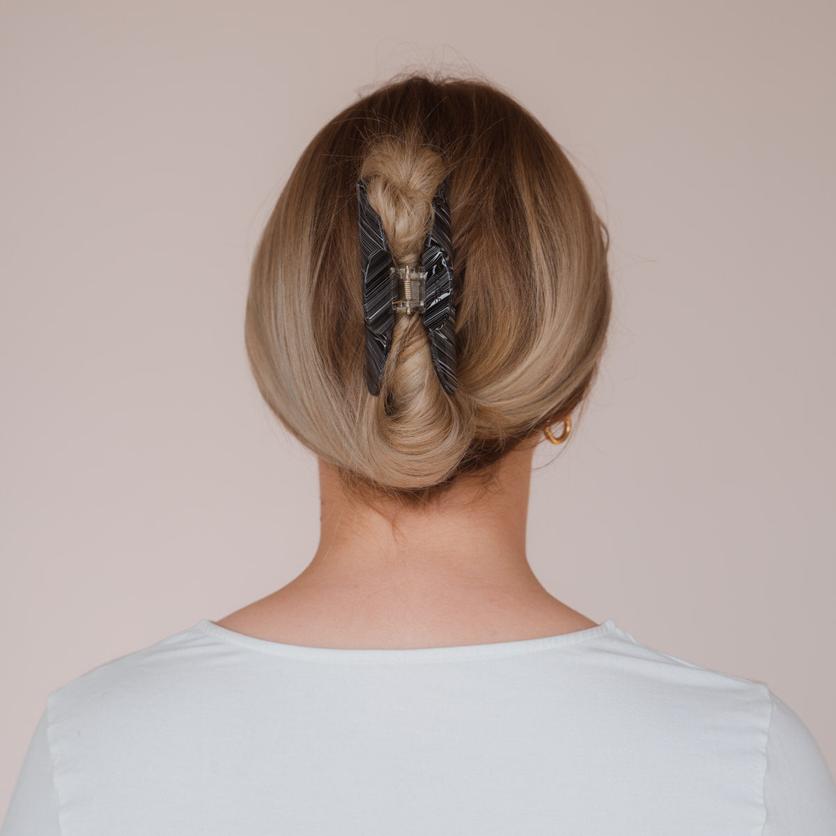 ALICIA ist ein Must-Have für big hair girls. Egal ob viel Haar, langes Haar, lockiges Haar oder alles in Kombination: sie hält einfach immer, selbst wenn andere Haarspangen versagen. Alicia ist bereit, deiner Frisur das besondere Etwas und neues Leben zu verleihen.
