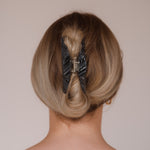 Alicia Haarklammer im Einsatz - sehen Sie, wie vielseitig die Haarklammer ist und wie gut sie in jedes Haar passt. Schauen Sie sich das Tragebild an und entdecken Sie die verschiedenen Möglichkeiten, wie die Haarklammer getragen werden kann
