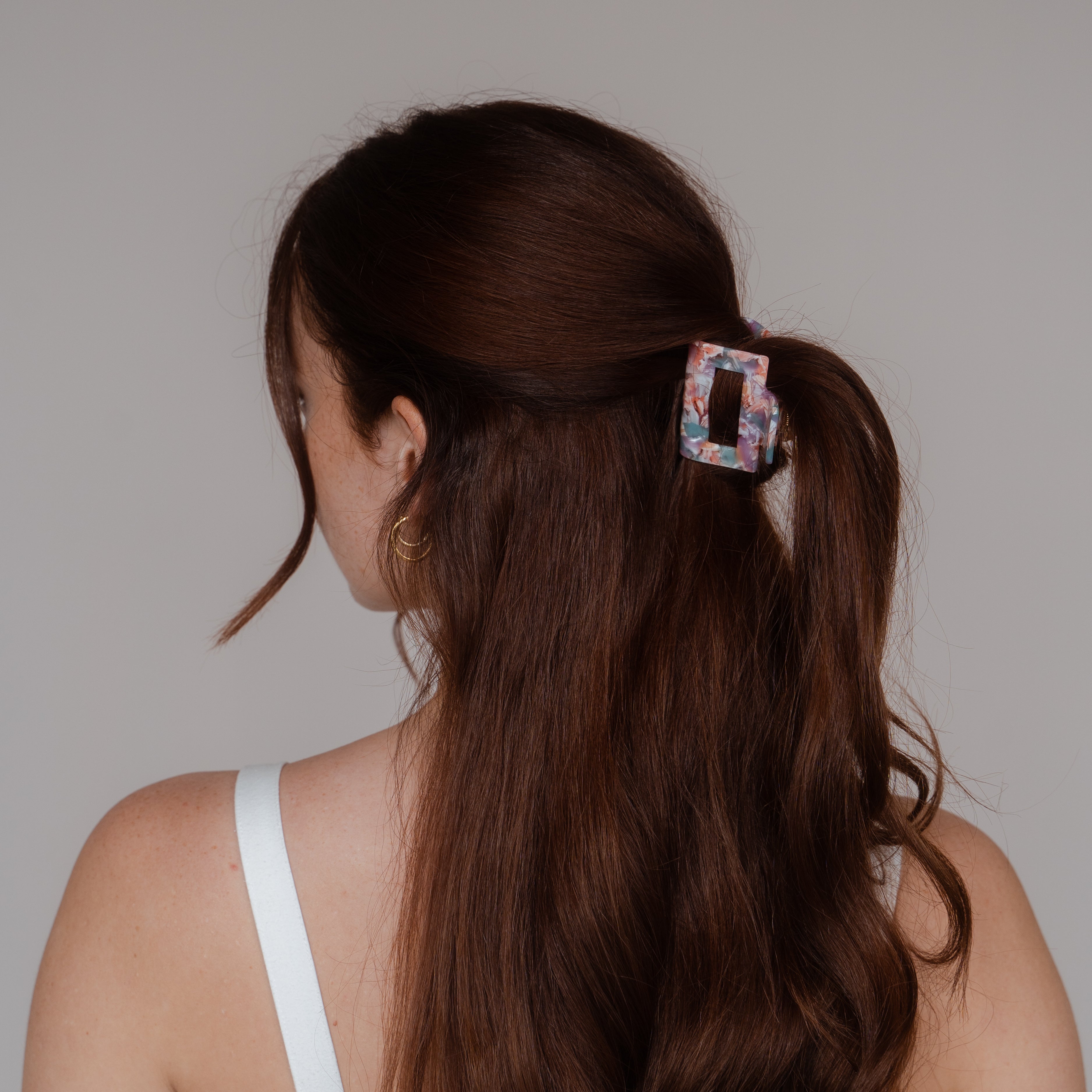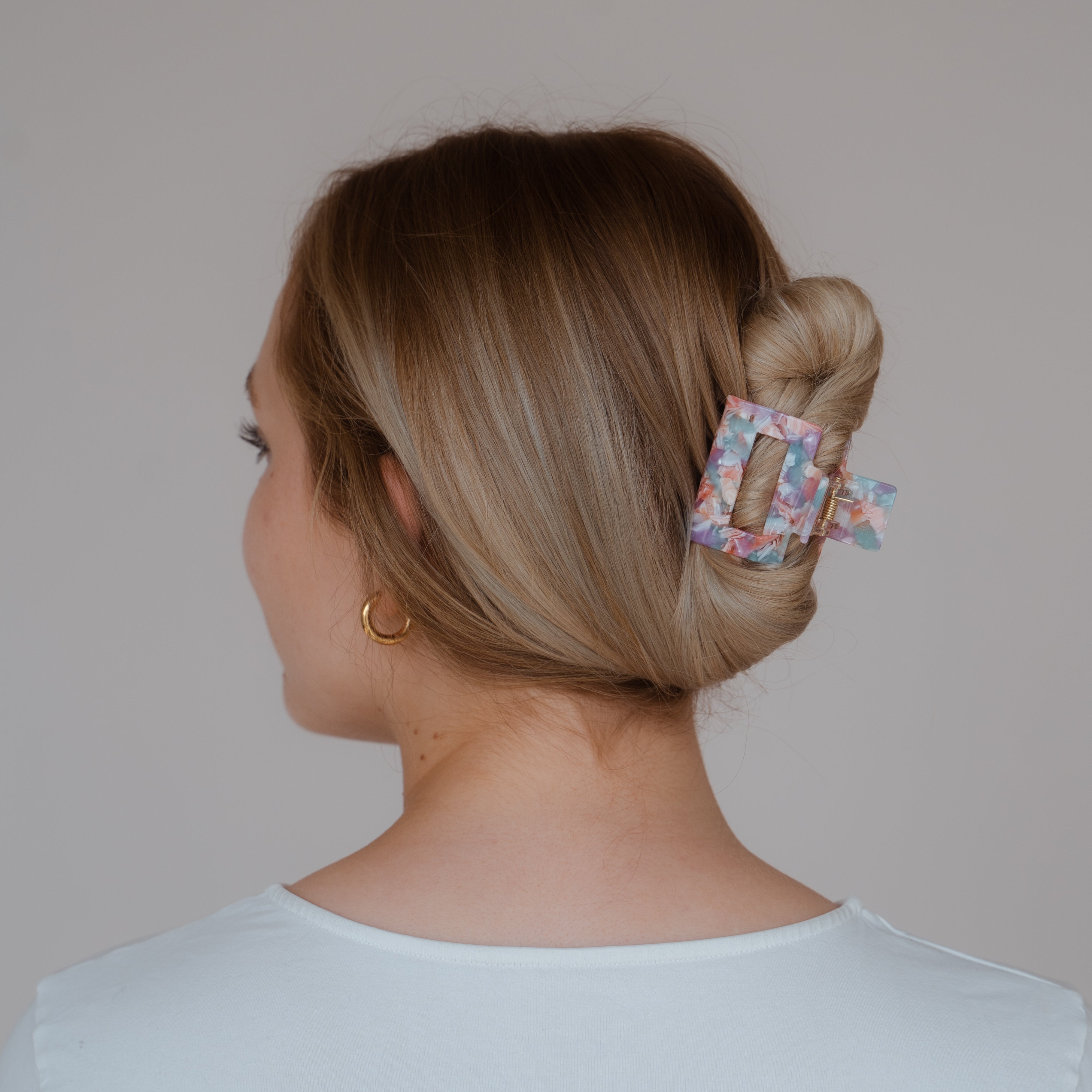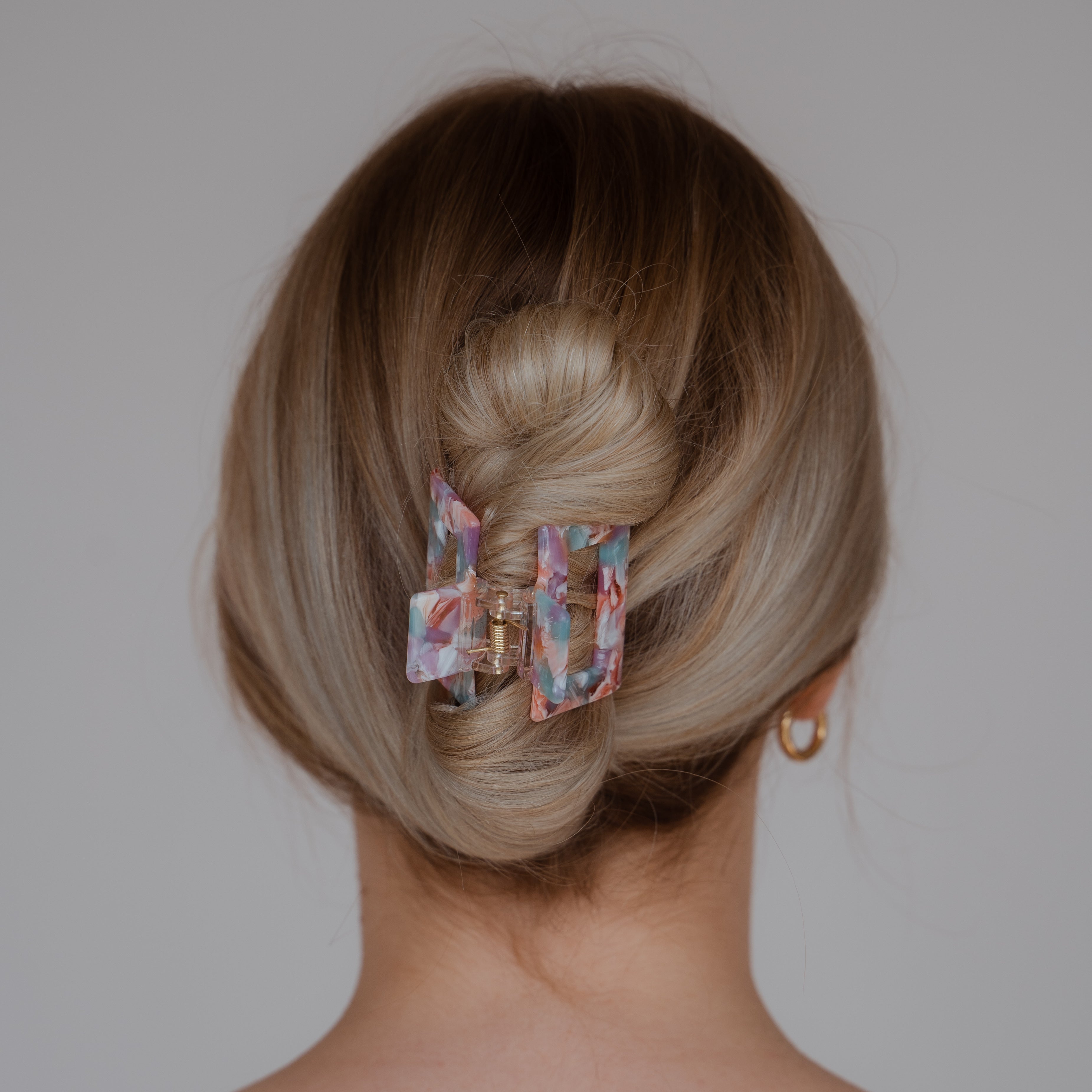 Unsere Alva Clip ist ein wahrer Eyecatcher! Mit ihren schönen bunten dreamy Farben könnt Ihr um die Wette strahlen. Alva eignet sich sowohl für feineres, als auch dickeres Haar. Sie ist groß genug, um das gesamte Haar hochzustecken, kann aber auch für einen Halfbun genutzt werden. Eine Haarspange für das perfekte Haarstyling.