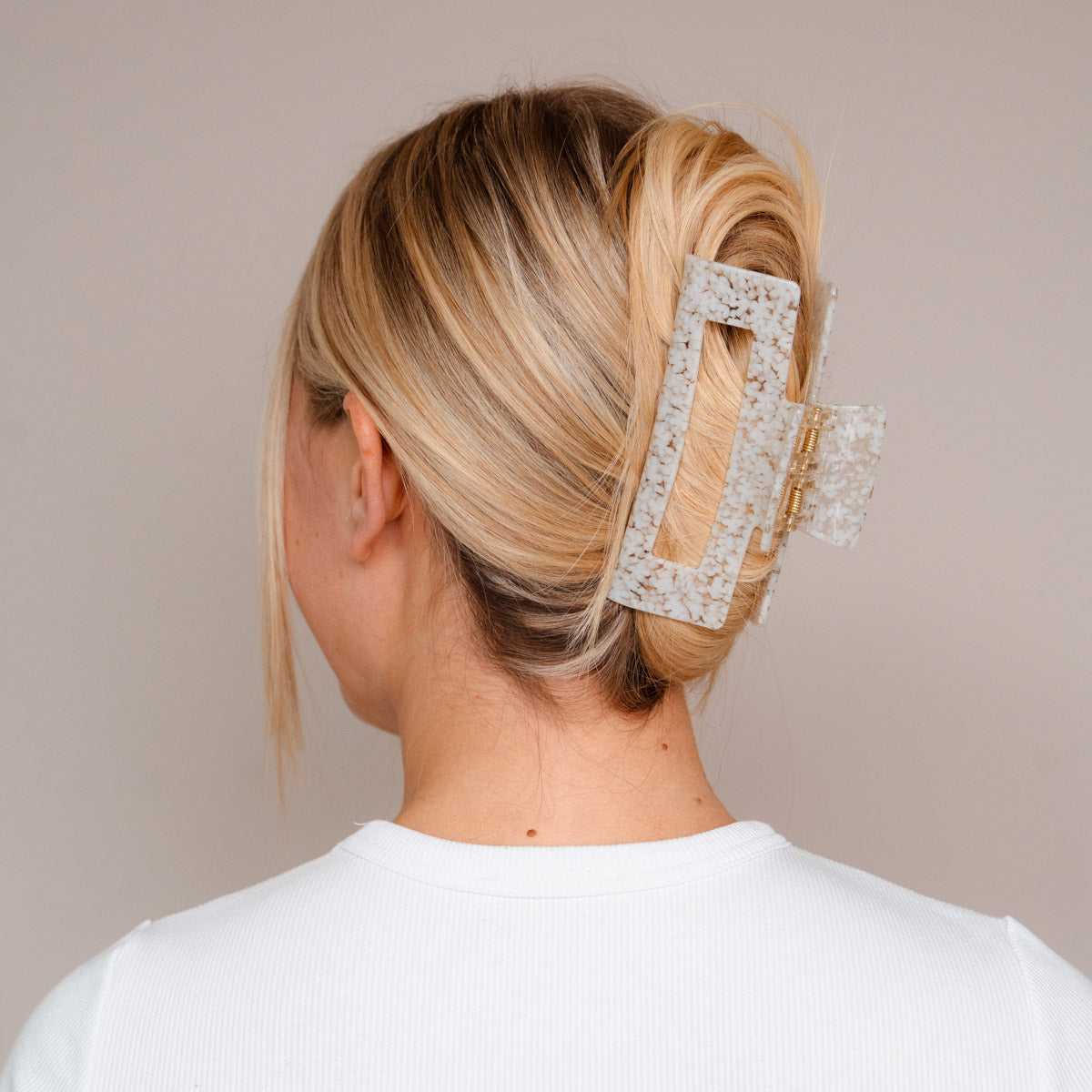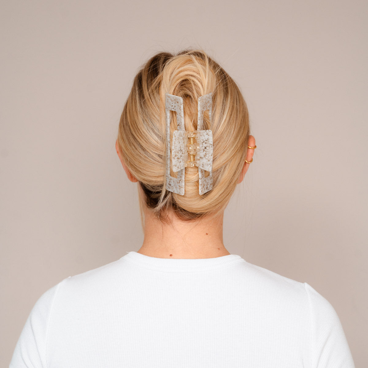 AMALIA ist ein Must-Have für deine ultra dicken Haare. Mit zwei Federn bietet die Klammer extra starken Halt, der dein Haar sicher und fest hält, egal was du vorhast, selbst wenn andere Klammern versagen. AMALIA ist Teil unserer XL Haarklammern Family und somit für big hair girls die Go-To Haarklammer. Der vielseitig-kombinierbare schlichte beige Ton verbindet Style und Stil, einen entspannten Look mit klassischer Eleganz. Mit der Haarspange wird dein Outfit mühelos edel wirken: unaufdringlich, aber nicht zu übersehen.