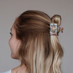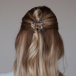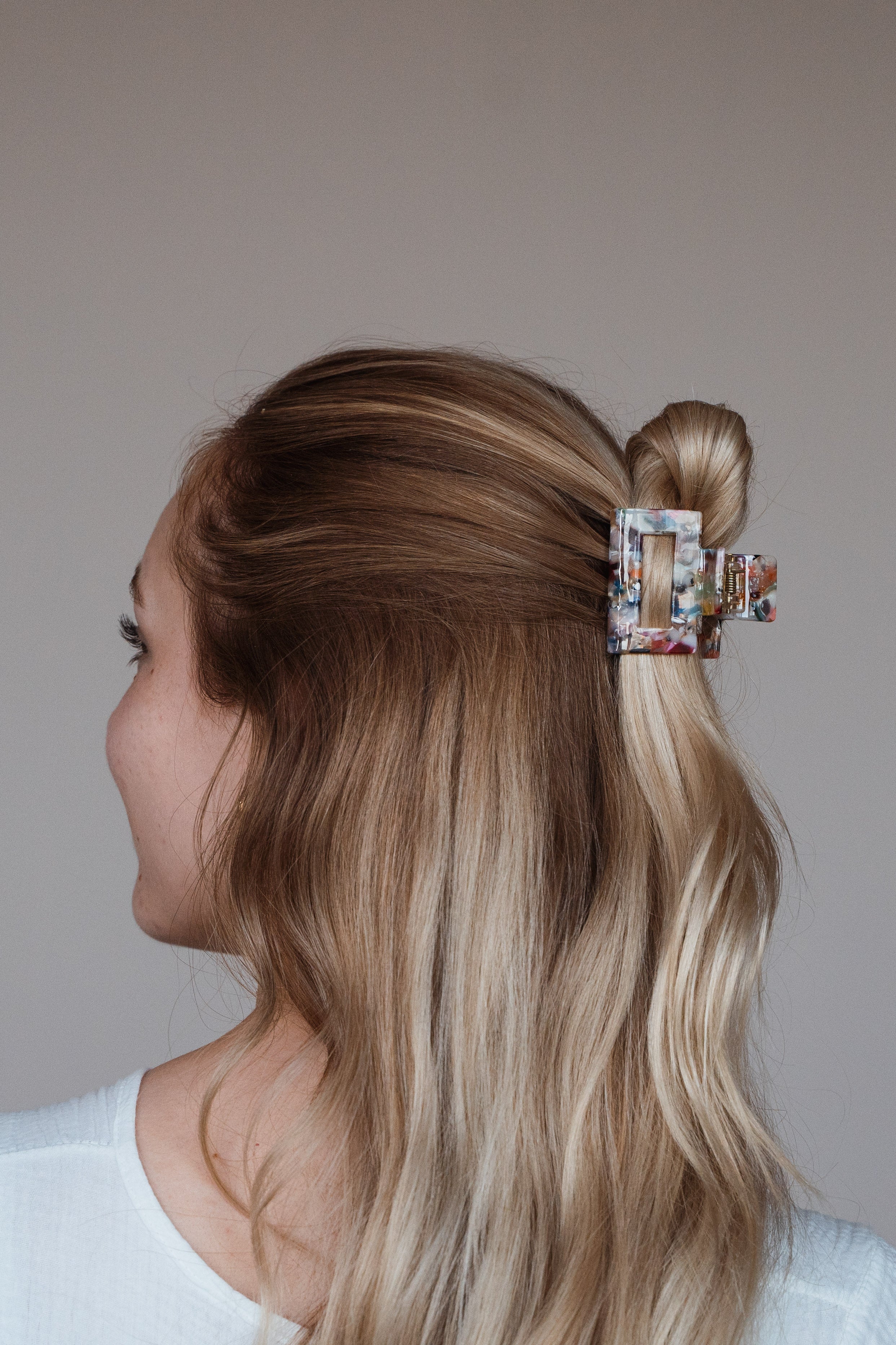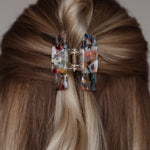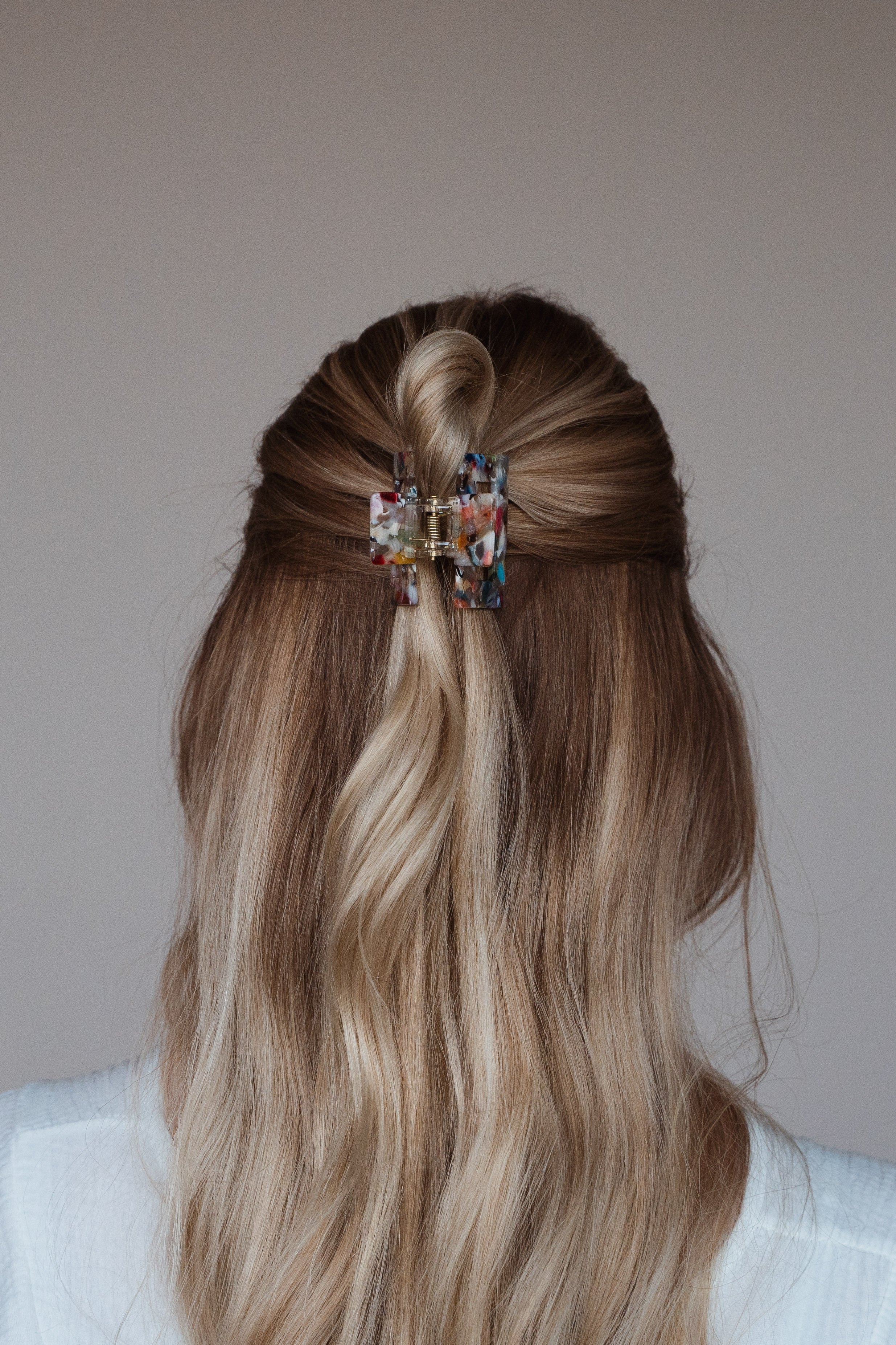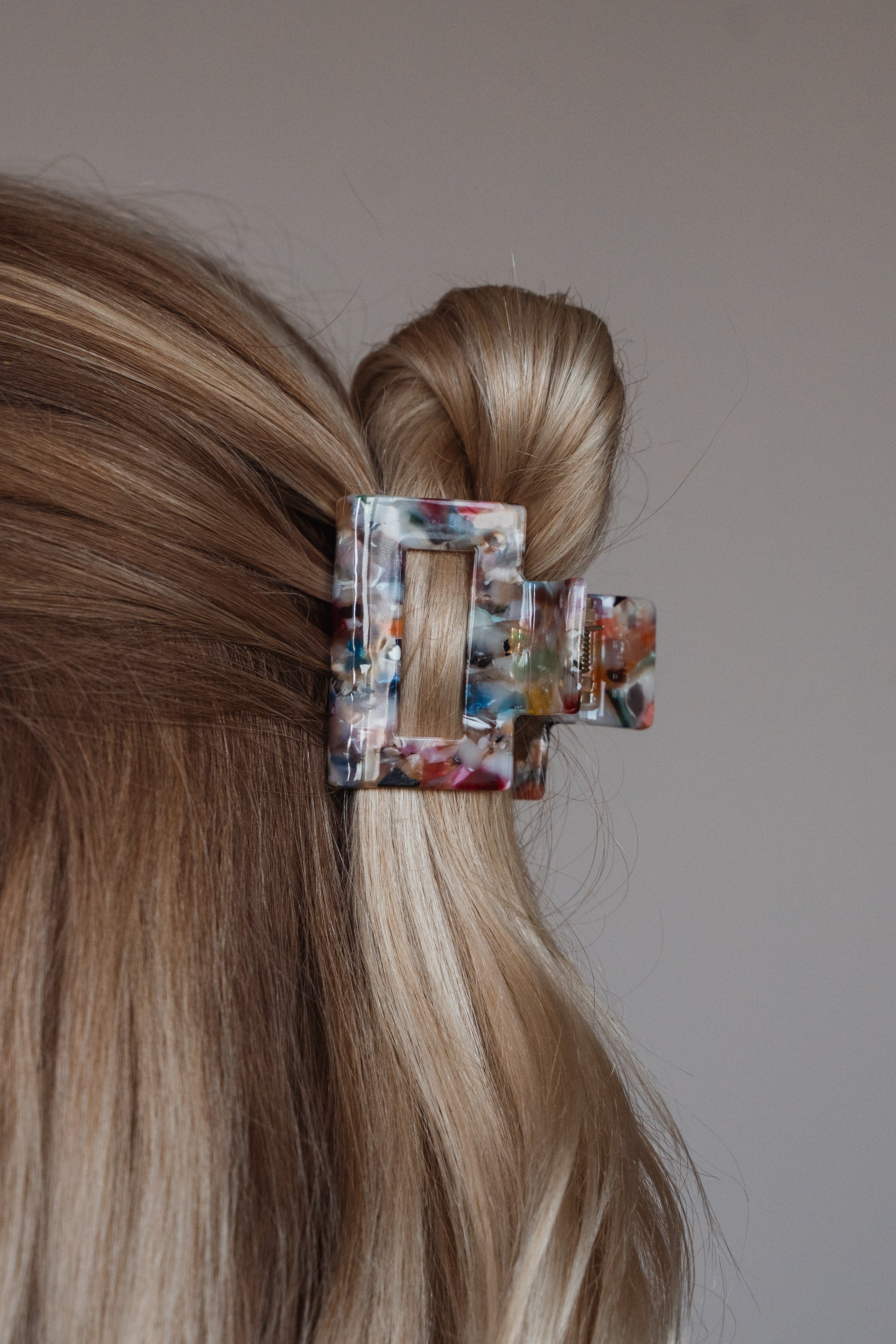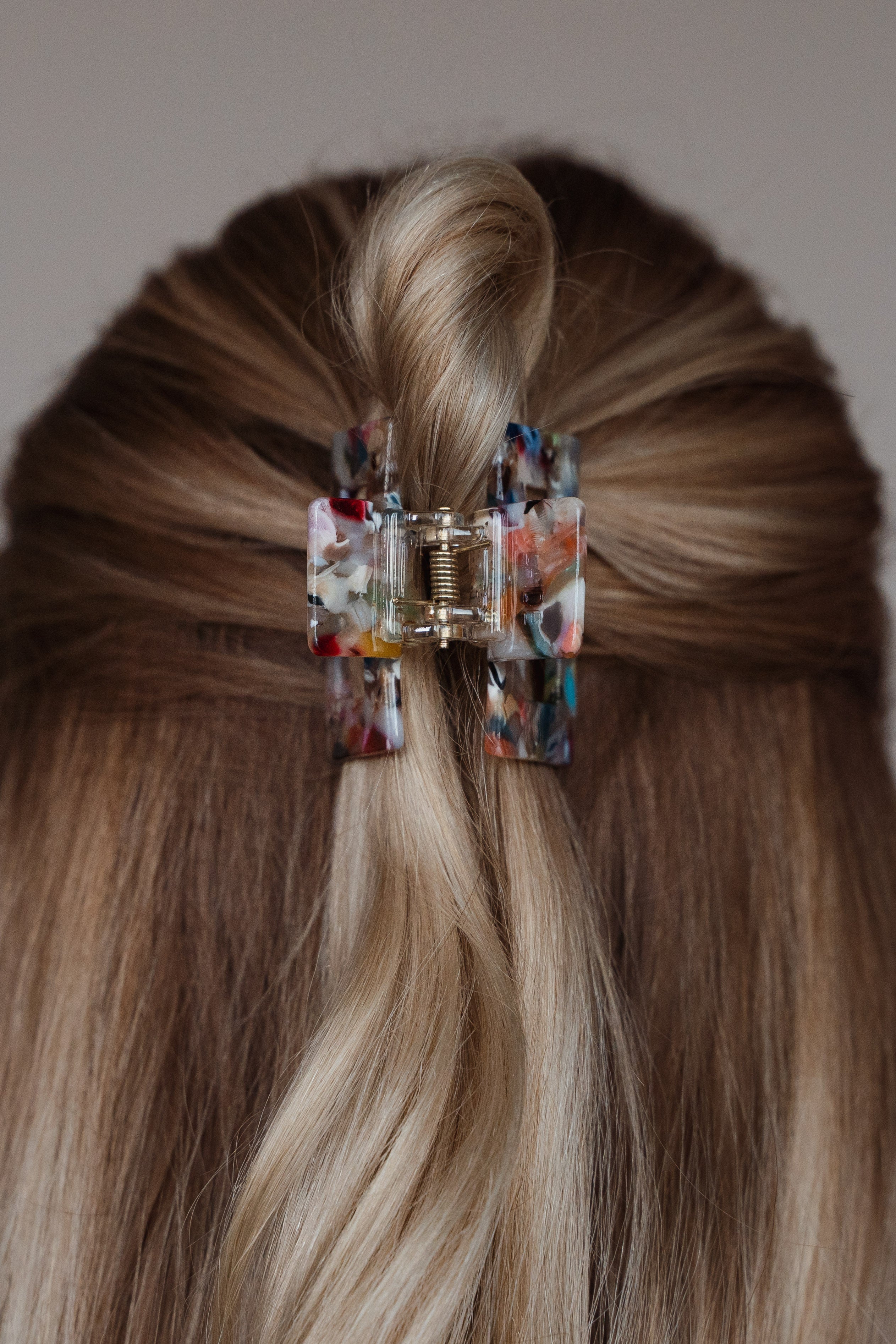 Unsere AMALIE Clip ist ein wahrer Eyecatcher! Mit ihren schönen bunten Farben könnt Ihr um die Wette strahlen. AMALIE eignet sich sowohl für feineres, als auch dickeres Haar. Sie ist groß genug, um das gesamte Haar hochzustecken, kann aber auch für einen Halfbun genutzt werden. Eine Haarspange für das perfekte Haarstyling.