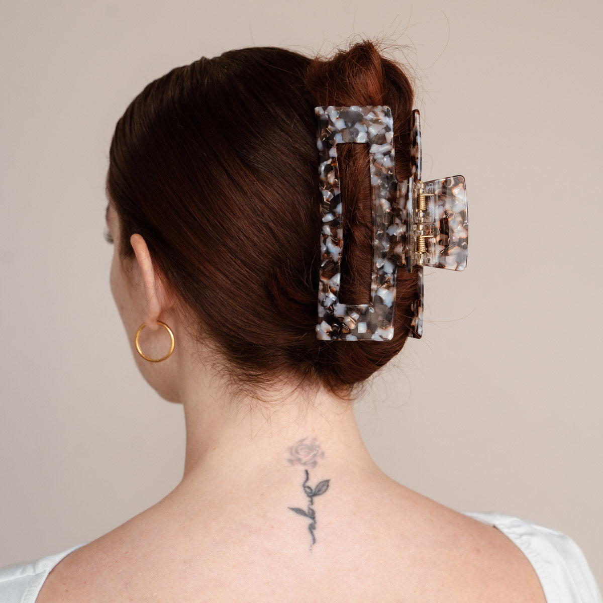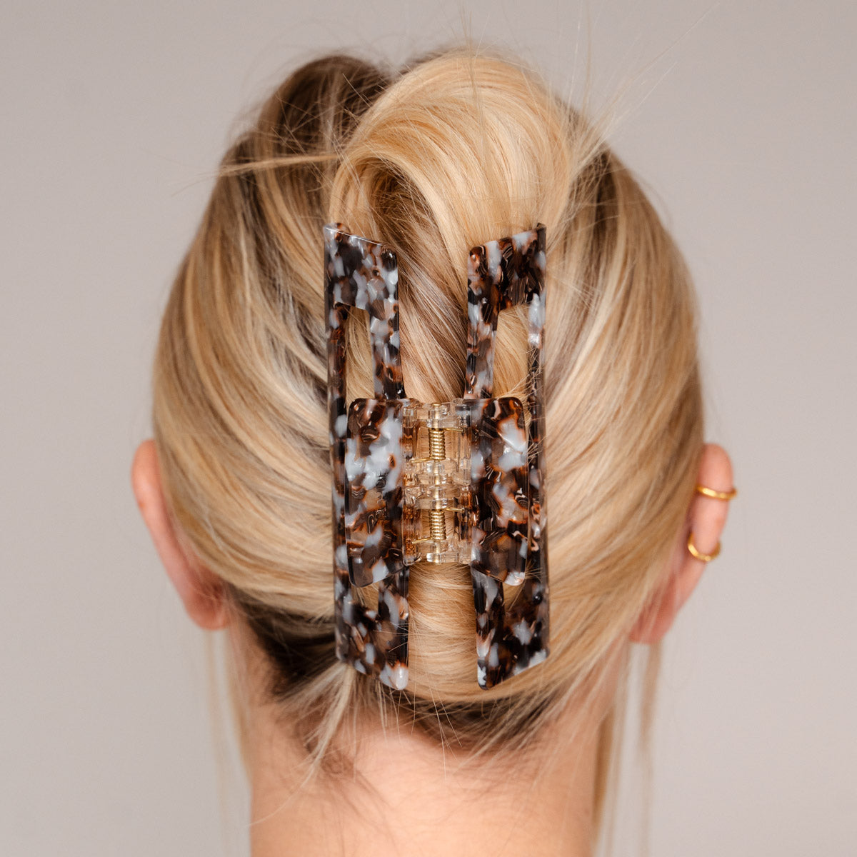 CELINE ist ein Must-Have für deine ultra dicken Haare. Mit zwei Federn bietet die Klammer extra starken Halt, der dein Haar sicher und fest hält, egal was du vorhast, selbst wenn andere Klammern versagen. CELINE ist Teil unserer XL Haarklammern Family und somit für big hair girls die Go-To Haarklammer. Der vielseitig-kombinierbare schlichte Look verbindet Style und Stil, einen entspannten Look mit klassischer Eleganz. Mit der Haarspange wird dein Outfit mühelos edel wirken: unaufdringlich, aber nicht zu übersehen.