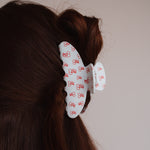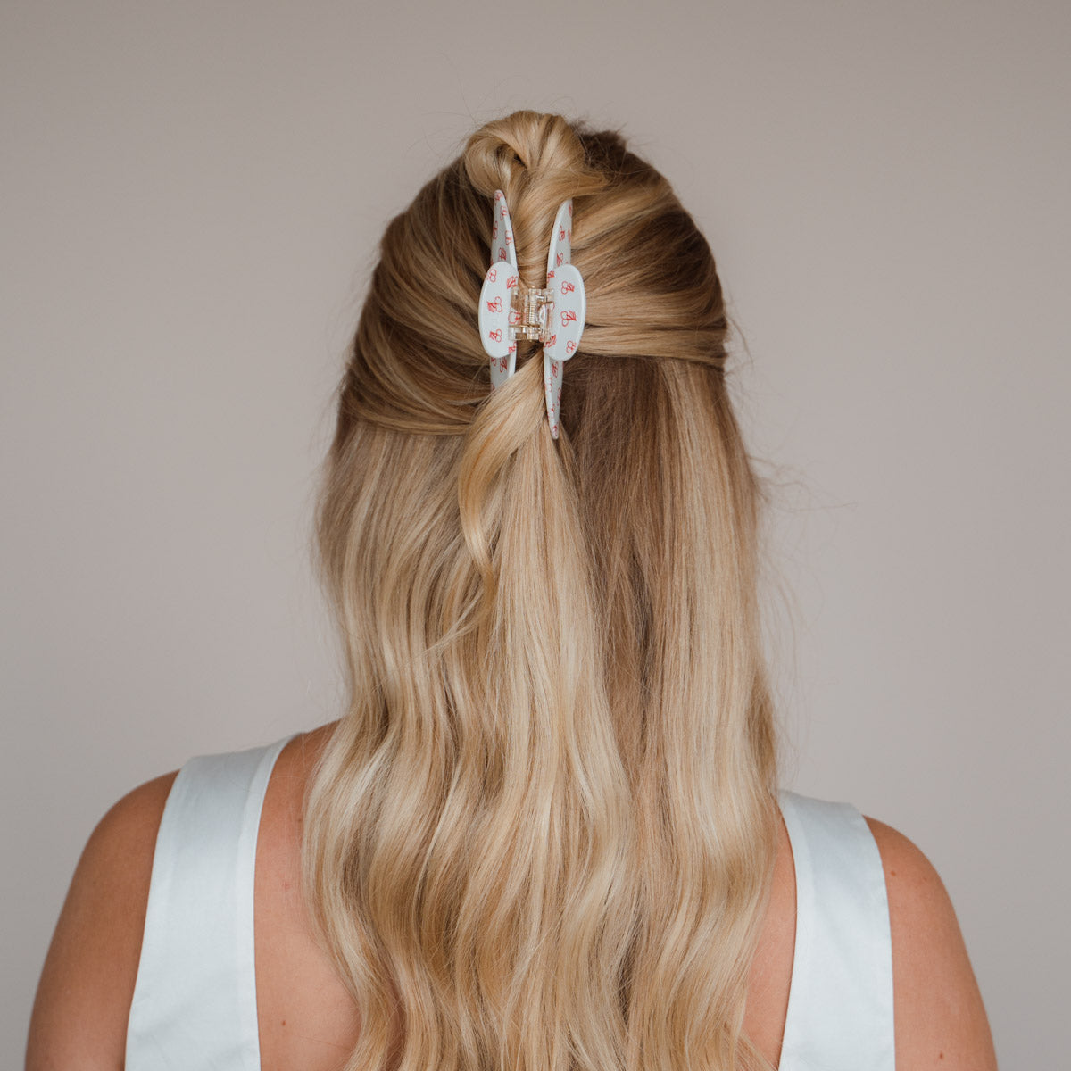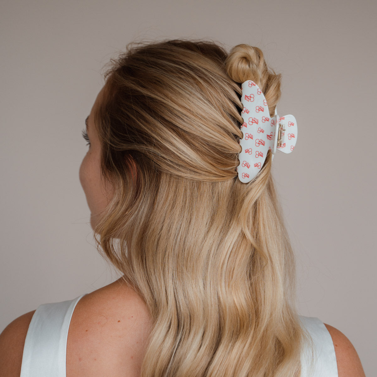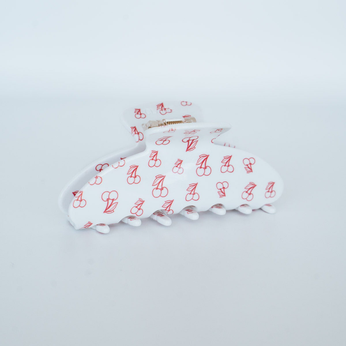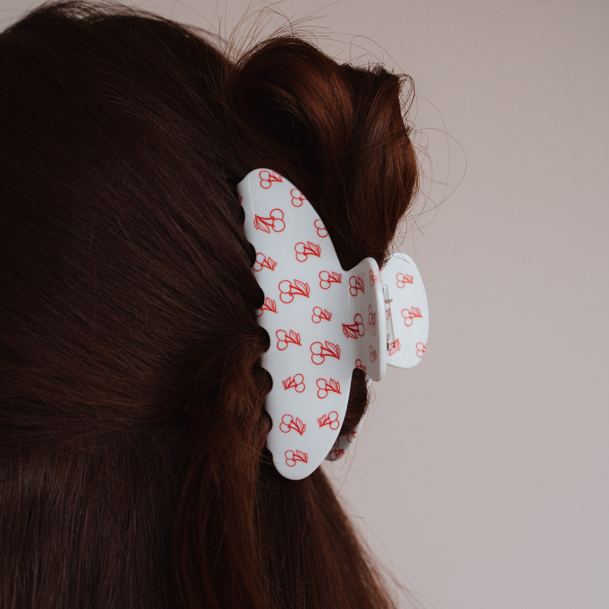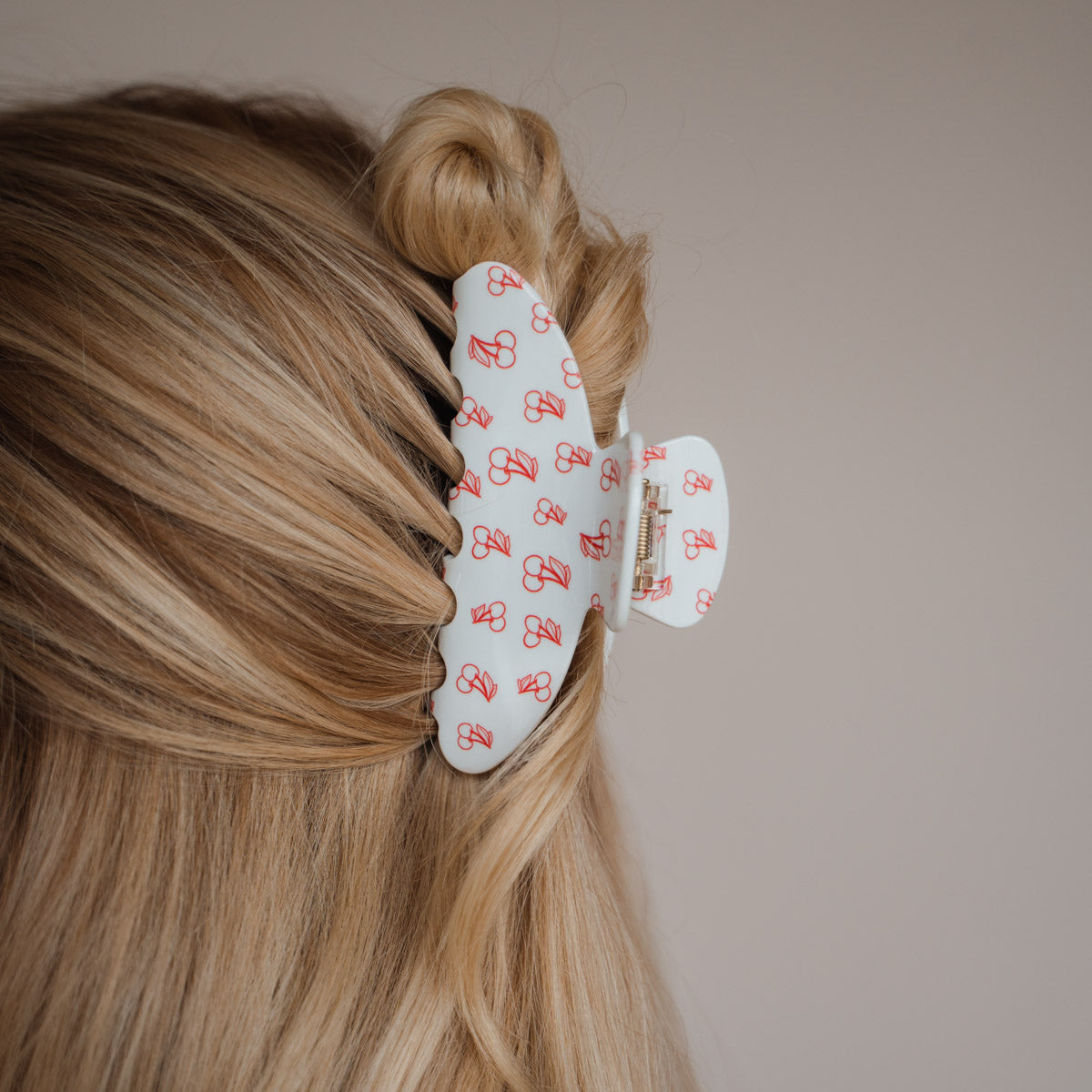 Sag Hi zu einer der süßesten Haarklammern der Welt, der Cherry Clip. Egal ob viel Haar, langes Haar, lockiges Haar oder alles in Kombination: sie hält einfach immer, selbst wenn andere Haarspangen versagen und sieht dabei noch super schön aus. Die Cherry Klammer ist ein Must-Have mit ihrem unverwechselbarem Kirschen Print Design. 🍒