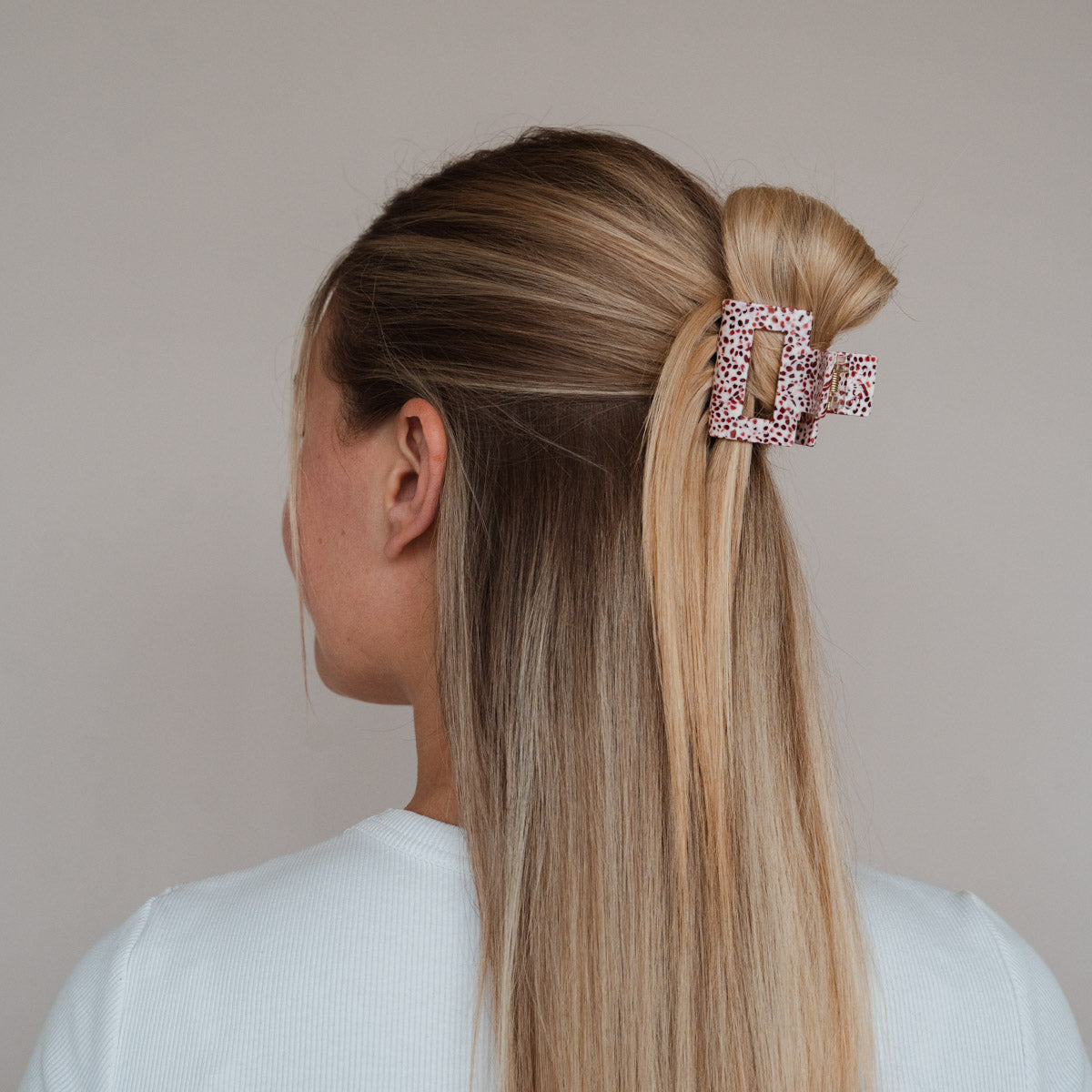 Unsere Dania Clip ist ein wahrer Eyecatcher! Mit ihren schönen dreamy Farben könnt Ihr um die Wette strahlen. Dania eignet sich sowohl für feineres, als auch dickeres Haar. Sie ist groß genug, um das gesamte Haar hochzustecken, kann aber auch für einen Halfbun genutzt werden. Eine Haarspange für das perfekte Haarstyling.