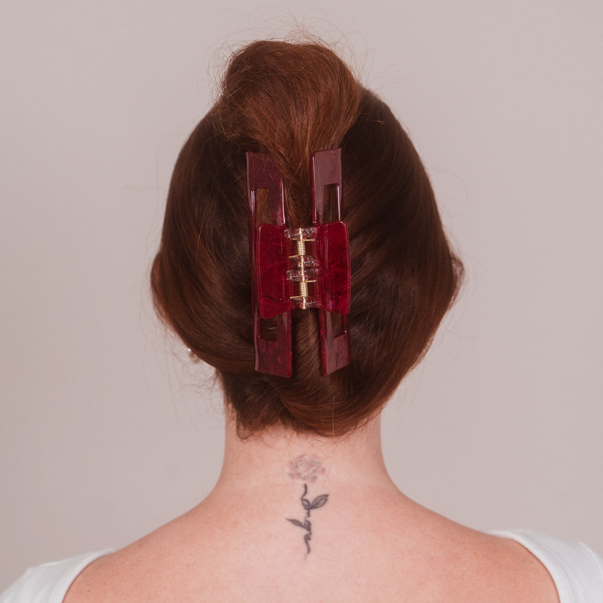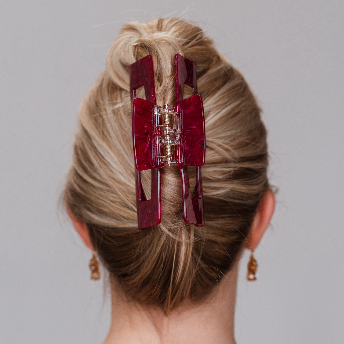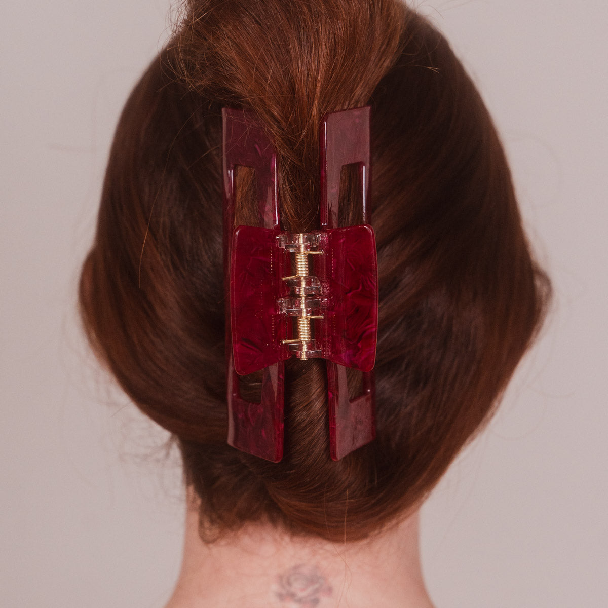 Als Teil unserer XL-Haarklammern Family wurde Eleonora speziell für Big Hair Girls entworfen. Ihr kraftvoller Rotton verleiht deinem Styling eine selbstbewusste, elegante Note und macht sie zum perfekten Accessoire für jeden Look – von klassisch bis modern.