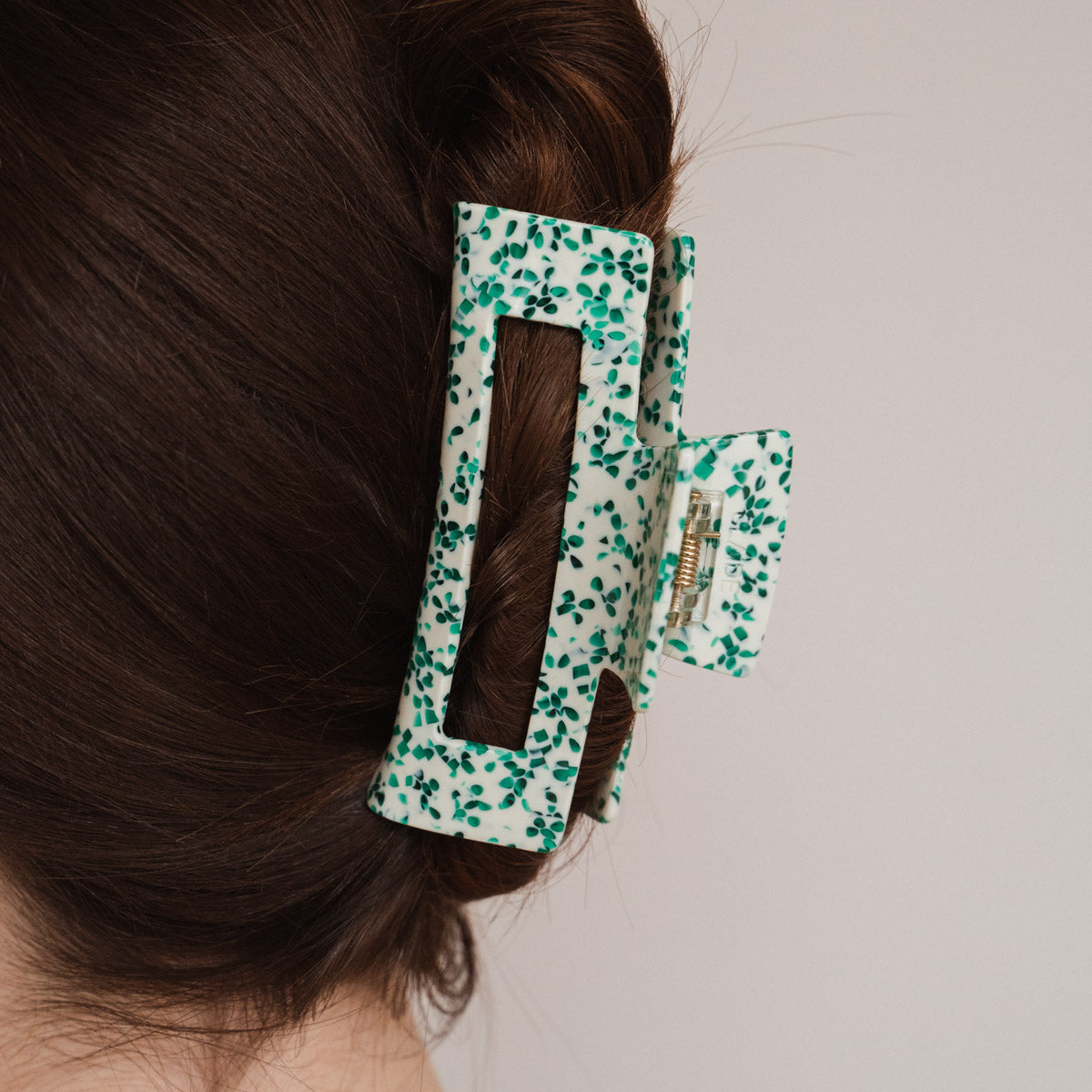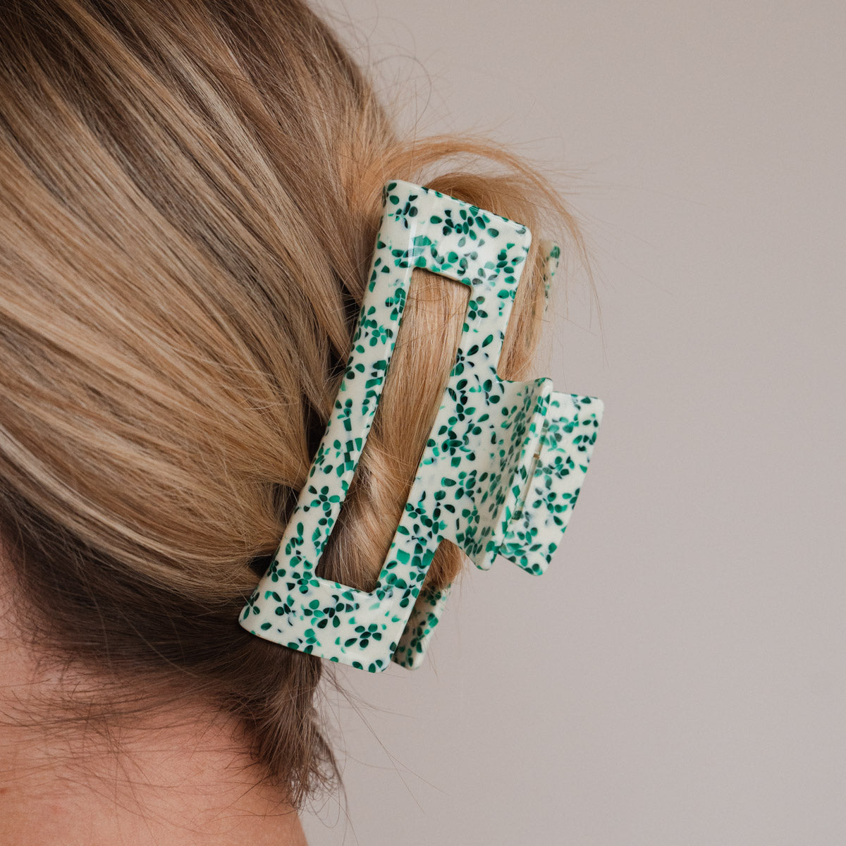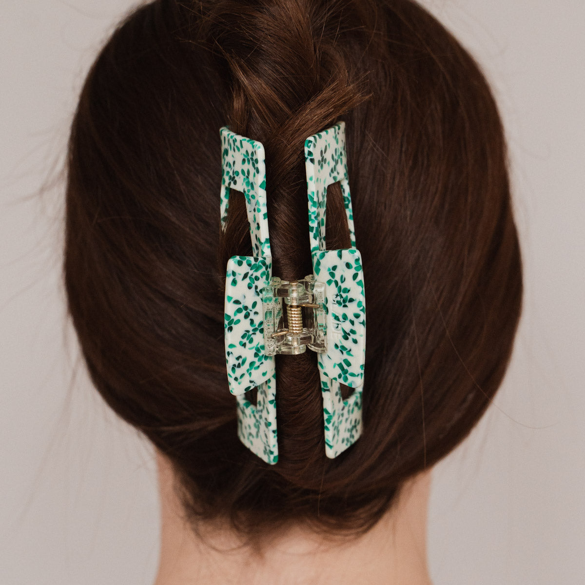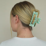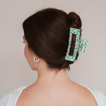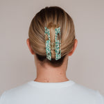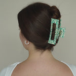 Die Gabriela Haarklammer ist ein Must-Have für deine Haare. Egal ob viel Haar, langes Haar, lockiges Haar oder alles in Kombination: sie hält einfach immer, selbst wenn andere Haarspangen versagen. Mit ihrem grünen Dot Design lässt sich die Gabriela Haarklammer mühelos in jede Frisur integrieren und bietet dabei einen zuverlässigen Halt, ohne die Haare zu beschädigen oder zu strapazieren. Egal ob du sie täglich nutzt oder für besondere Abenteuer - unsere Alea Haarklammer ist ein unverzichtbares Accessoire.
