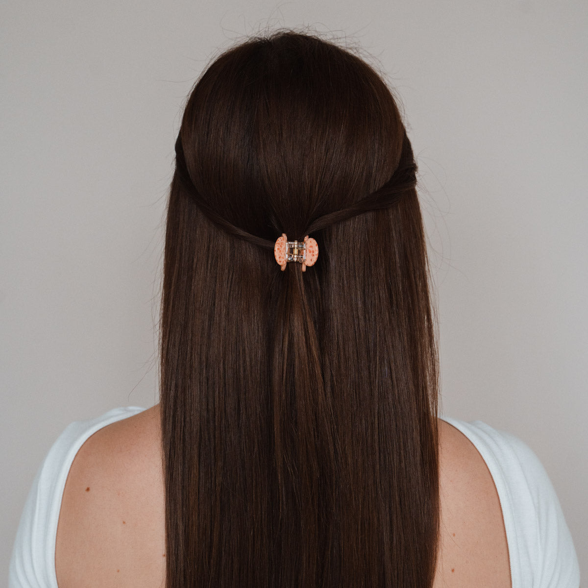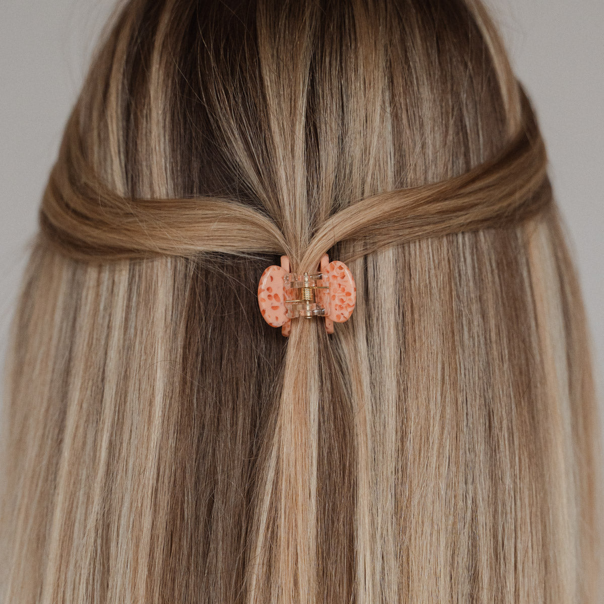Bei unseren Gina Haarklammern ist es Liebe auf den ersten Blick! Das Peach Design vereint Style mit Stil, die perfekte Kombi deinen Look. Gina eignet sich sowohl für leichtes feineres, als auch dickeres Haar. Eine Haarspange für das perfekte Haarstyling.