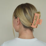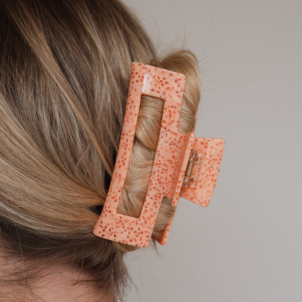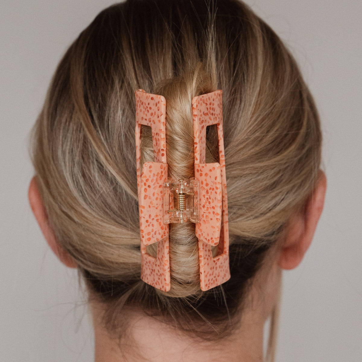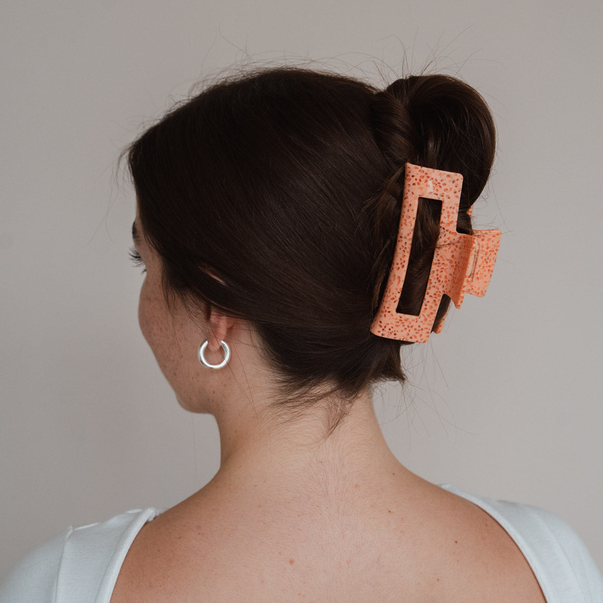 Die Hilda Haarklammer ist ein Must-Have für deine Haare. Egal ob viel Haar, langes Haar, lockiges Haar oder alles in Kombination: sie hält einfach immer, selbst wenn andere Haarspangen versagen. Mit ihrem Peach Design lässt sich die Hilda Haarklammer mühelos in jede Frisur integrieren und bietet dabei einen zuverlässigen Halt, ohne die Haare zu beschädigen oder zu strapazieren. Egal ob du sie täglich nutzt oder für besondere Abenteuer - unsere Hilda Haarklammer ist ein unverzichtbares Accessoire.