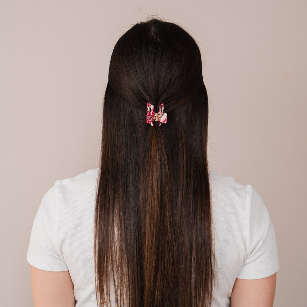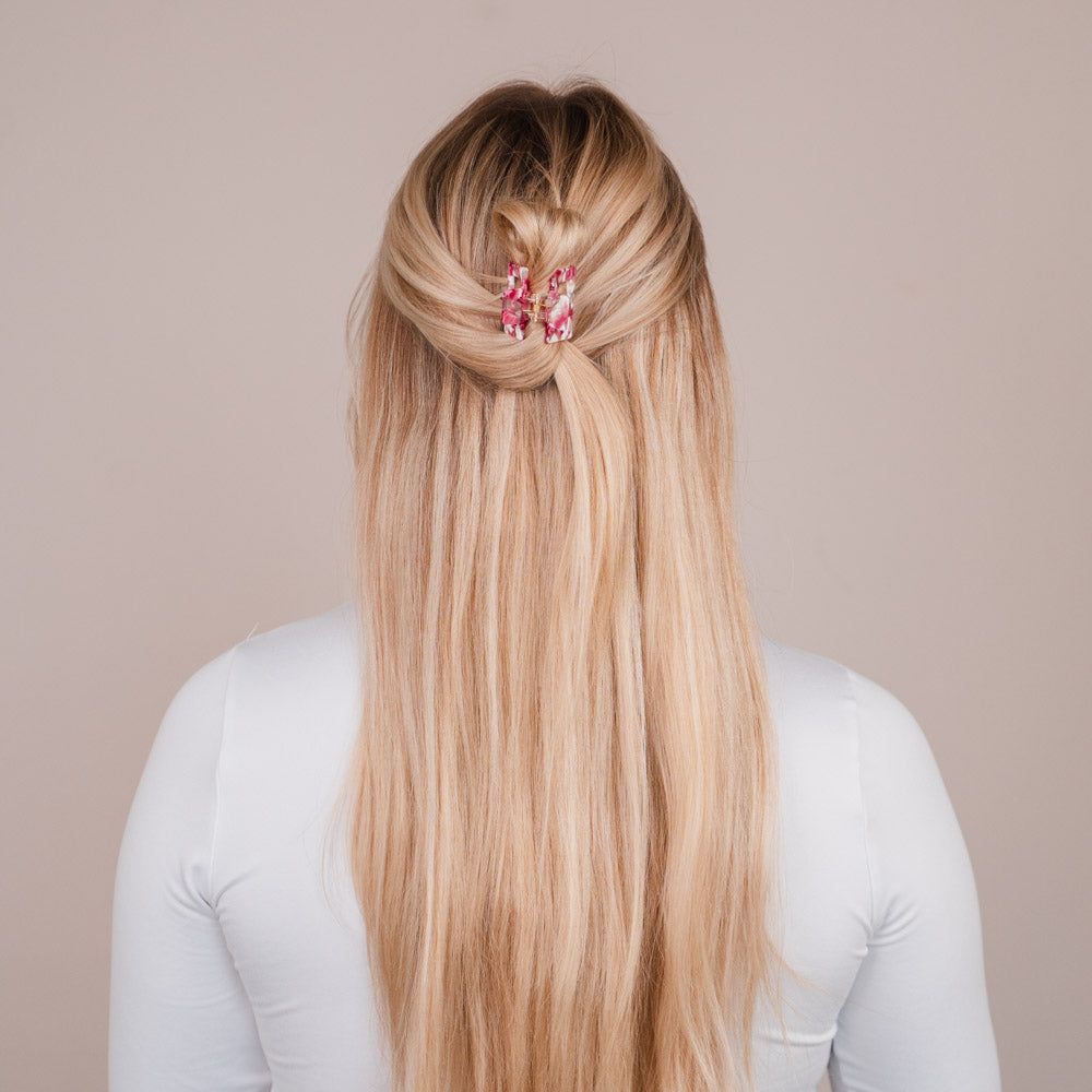 Die Ilaria Haarklammer ist klein, aber ein echtes Statement-Piece. Perfekt, wenn du nur ein paar Strähnen zusammenhalten möchtest und dabei nicht auf einen stilvollen Clip im Haar verzichten willst. Ilaria ist vielseitig einsetzbar, super süß und für jeden Haartyp geeignet – dein neues Everyday-Essential.