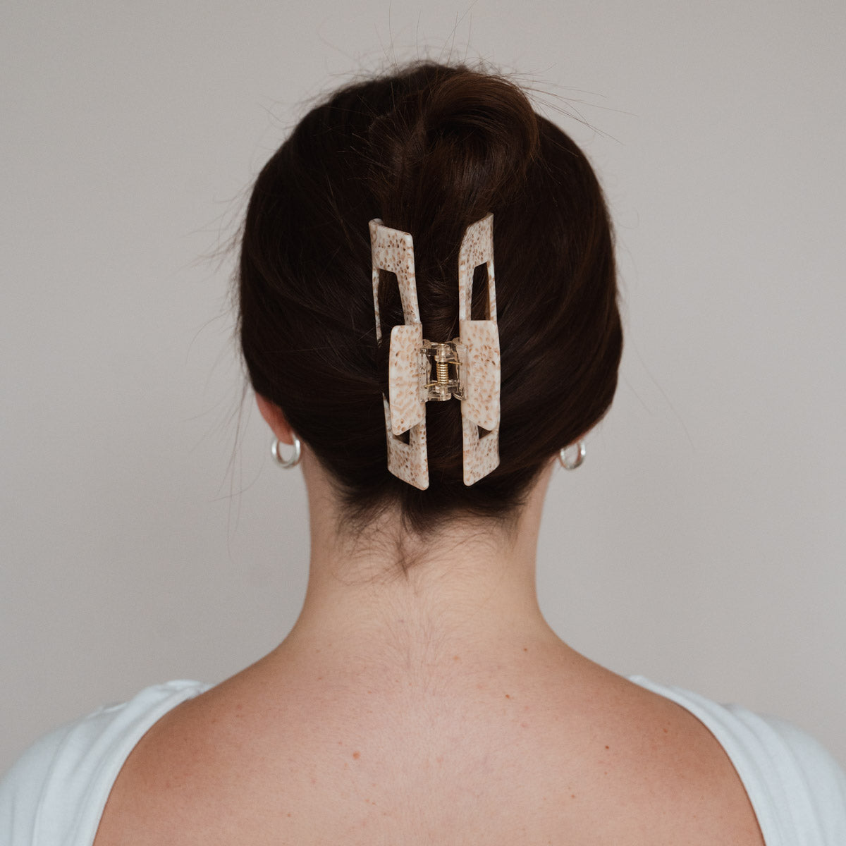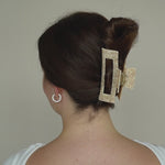Die Isabel Haarklammer ist ein Must-Have für deine Haare. Egal ob viel Haar, langes Haar, lockiges Haar oder alles in Kombination: sie hält einfach immer, selbst wenn andere Haarspangen versagen. Mit ihrem Beigen Design lässt sich die Isabel Haarklammer mühelos in jede Frisur integrieren und bietet dabei einen zuverlässigen Halt, ohne die Haare zu beschädigen oder zu strapazieren. Egal ob du sie täglich nutzt oder für besondere Abenteuer - unsere Isabel Haarklammer ist ein unverzichtbares Accessoire.