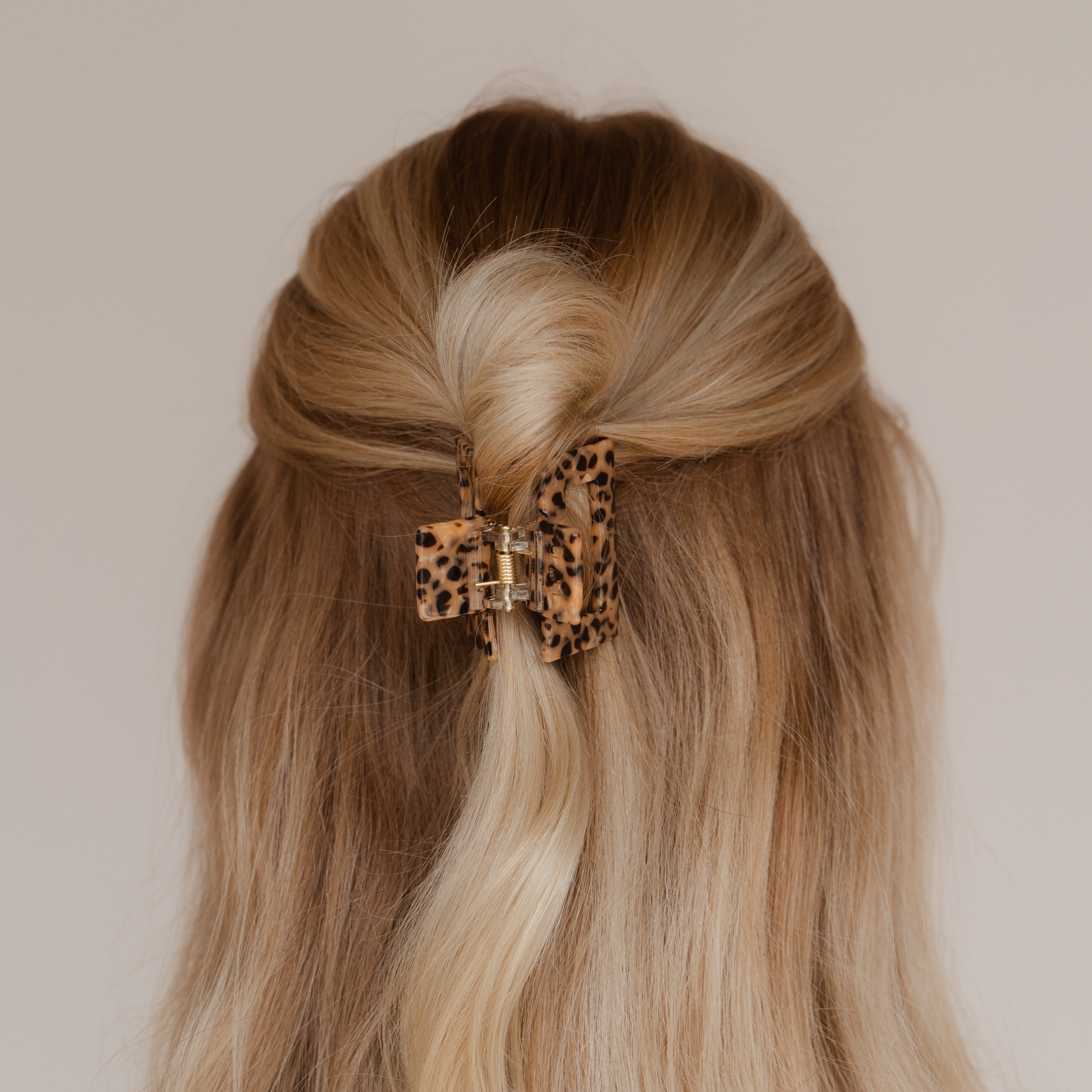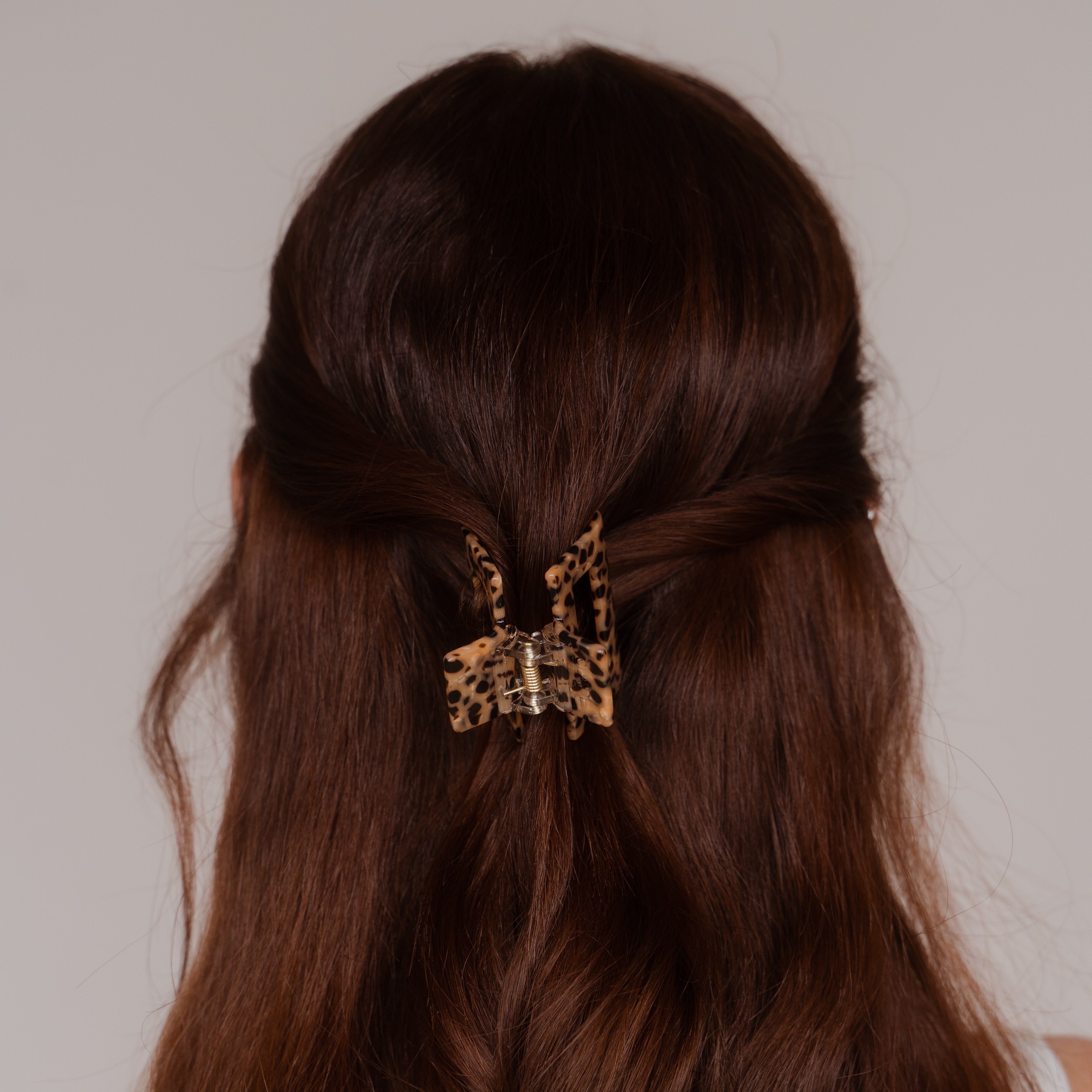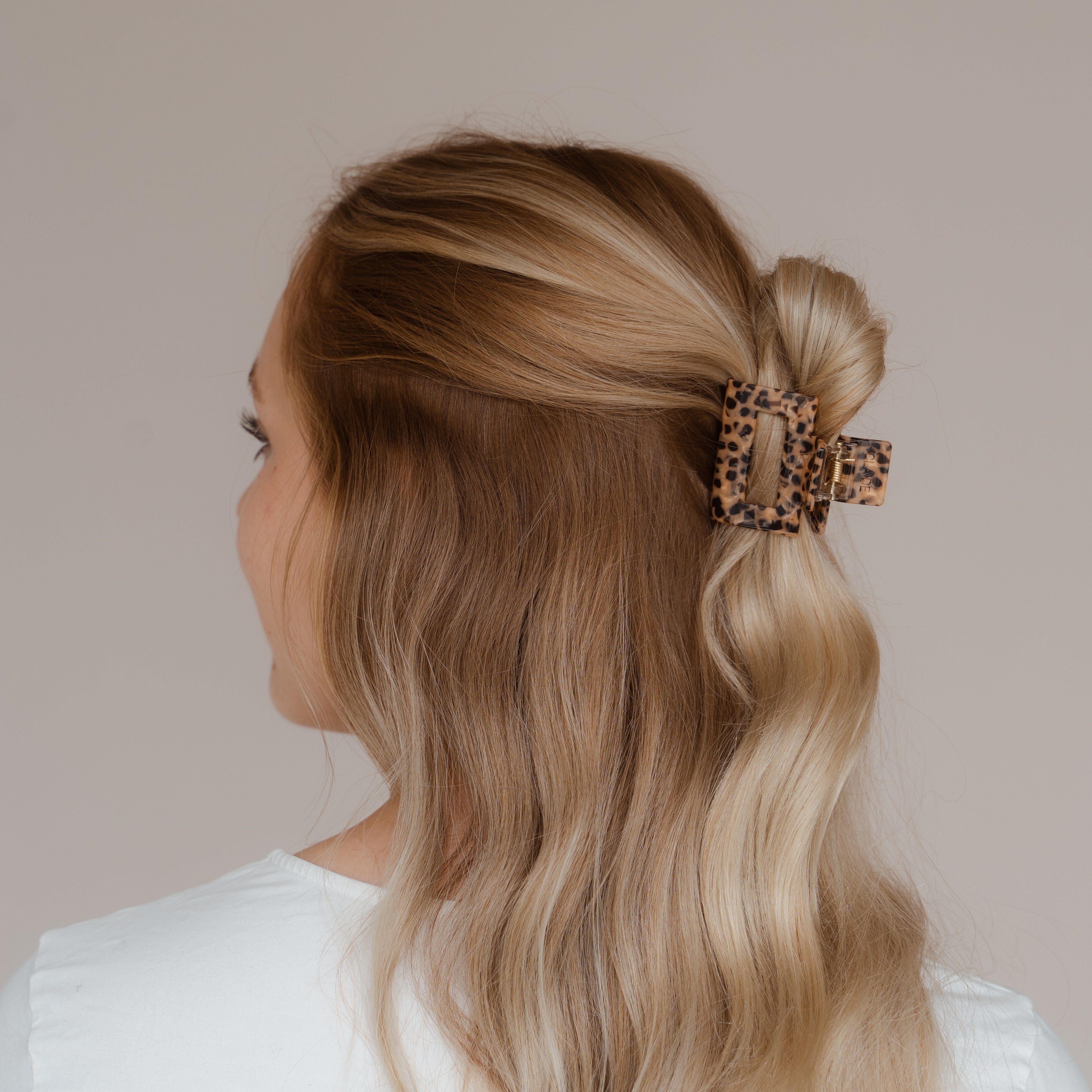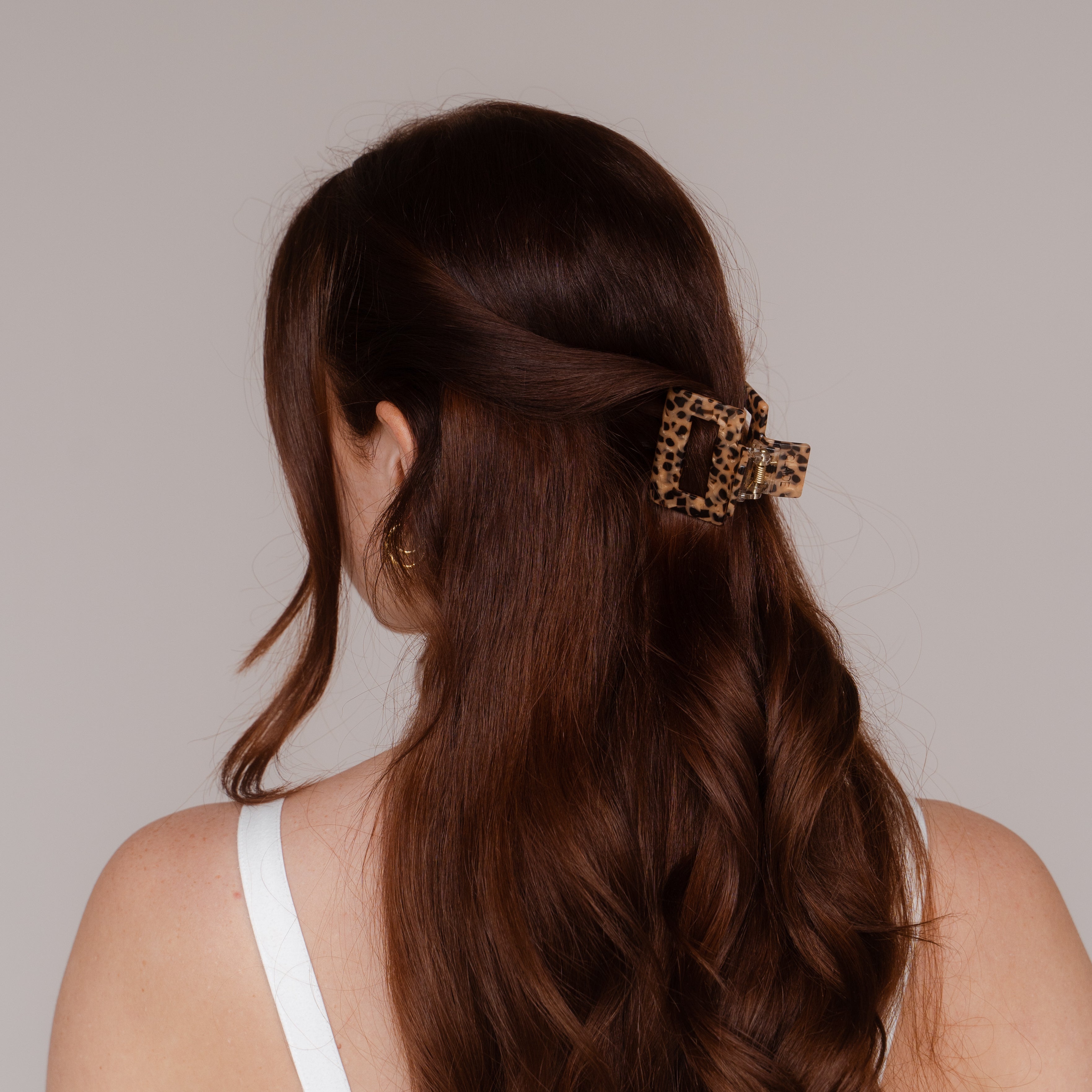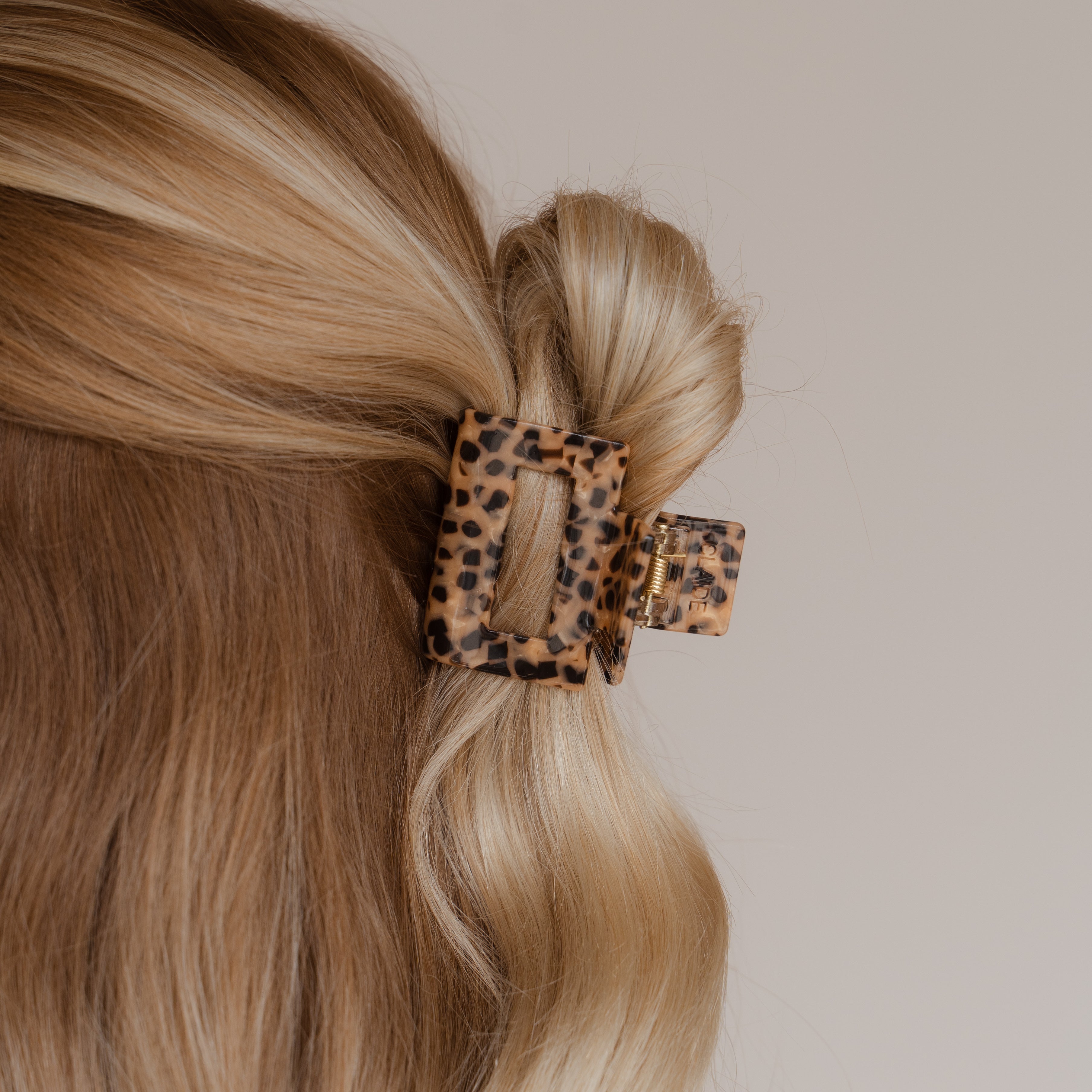 Unsere LEANI Clip ist ein wahrer Eyecatcher! Mit ihrem schönen Leo Print Sie wird deinen Look sofort wild machen! LEANI eignet sich sowohl für feineres, als auch dickeres Haar. Sie ist groß genug, um das gesamte Haar hochzustecken, kann aber auch für einen Halfbun genutzt werden. Eine Haarspange für das perfekte Haarstyling.