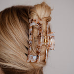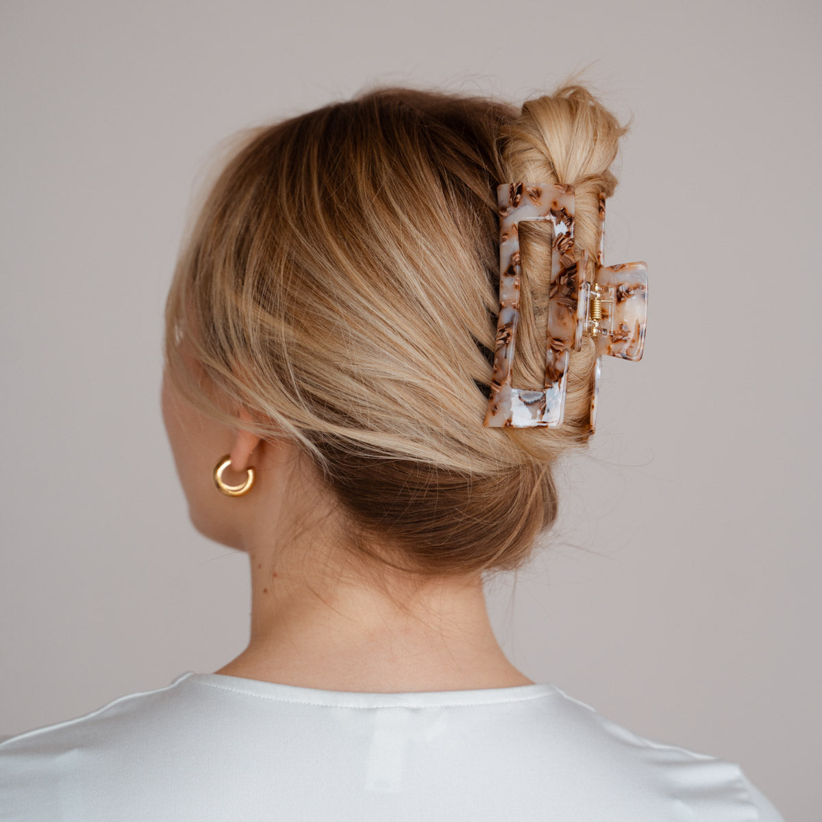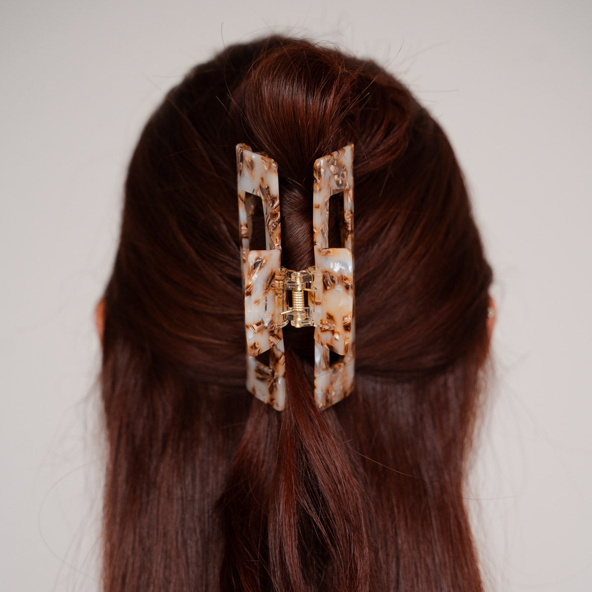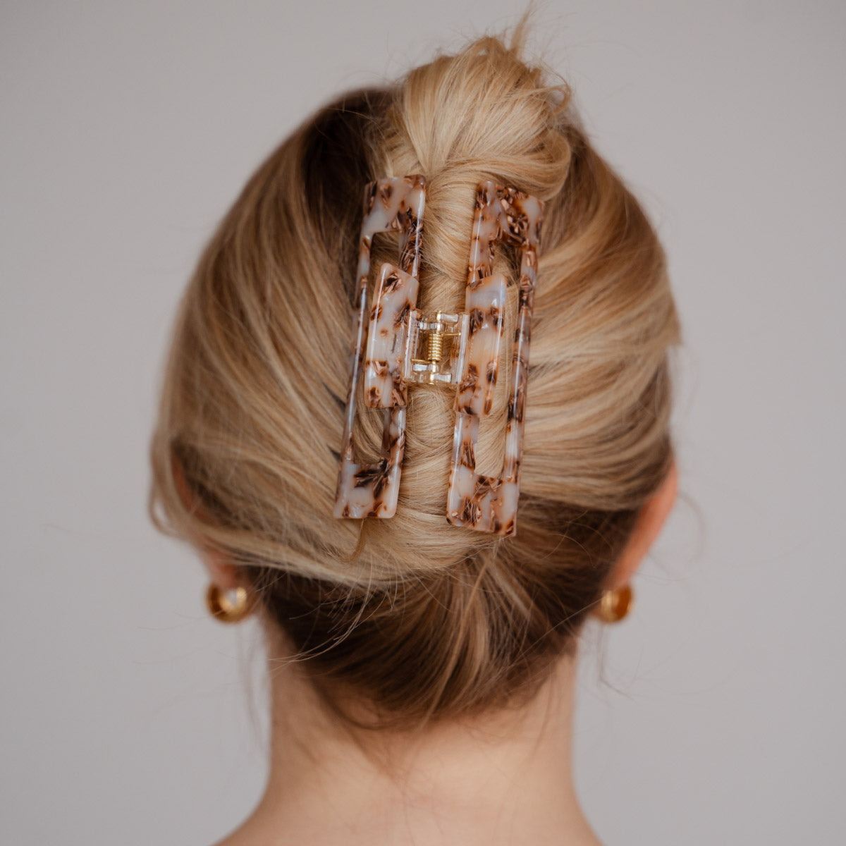 Die Marona Haarklammer ist ein Must-Have für deine Haare. Egal ob viel Haar, langes Haar, lockiges Haar oder alles in Kombination: sie hält einfach immer, selbst wenn andere Haarspangen versagen. Mit ihrem Beige-Braunen Design lässt sich die Marona Haarklammer mühelos in jede Frisur integrieren und bietet dabei einen zuverlässigen Halt, ohne die Haare zu beschädigen oder zu strapazieren.